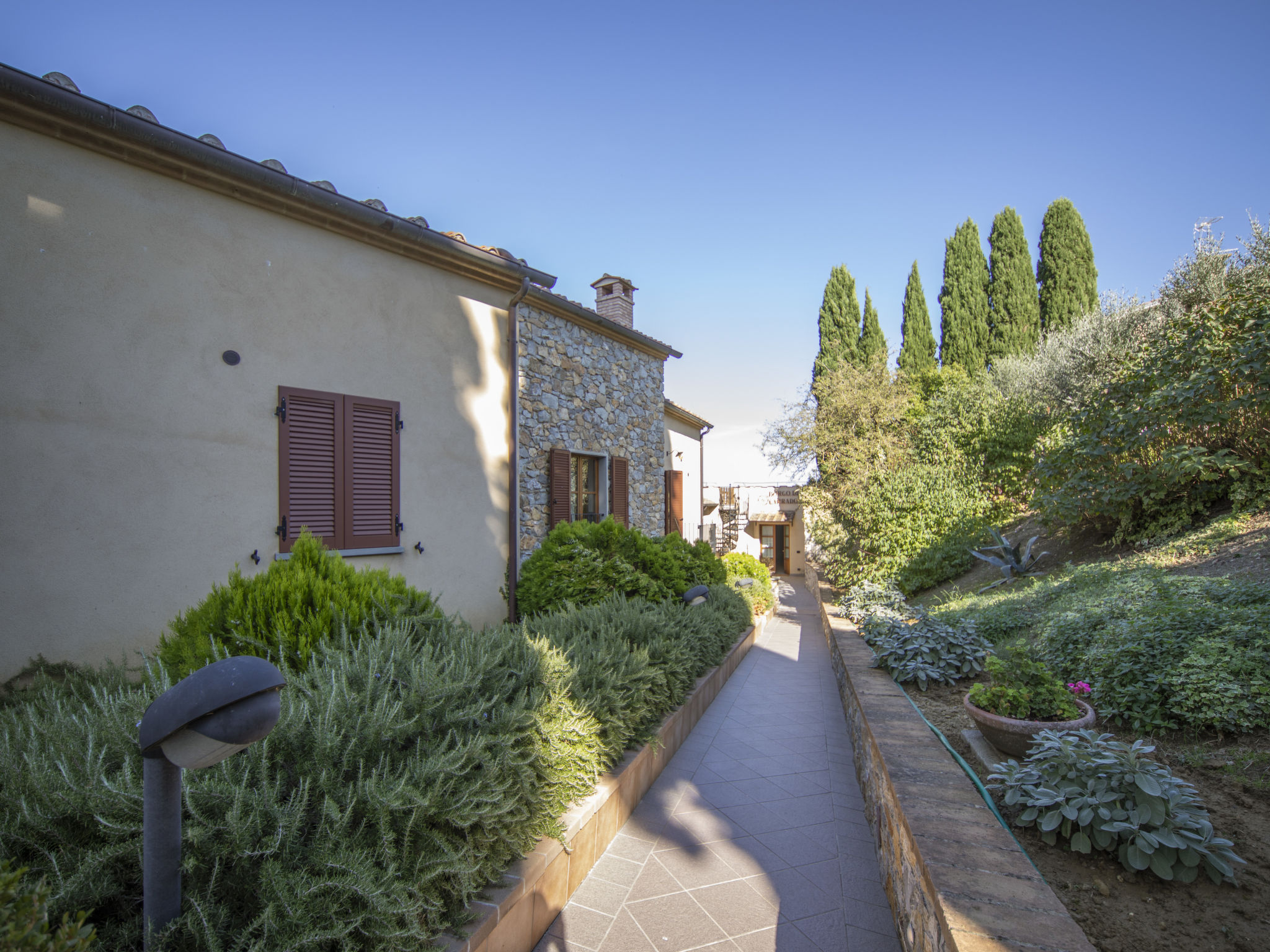 Gemütliche, komfortable Ferienanlage "La Smarrita", 450 m.ü.M., einseitig angebaut, renoviert im Jahre 2020, umgeben von Bäumen. 200 m vom Zentrum von Lucignano, 28 km vom Zentrum von Arezzo, zentrale Lage auf einem Hügel. Zur Alleinbenutzung: Garten 500 m2 (eingezäunt), Hallenbad beheizt. Gartenmöbel. Im Hause: Dampfbad (extra). Ruheraum, Wellnessbereich, Fahrstuhl, Waschmaschine. Parkplatz (für 5 Autos, überdacht). Supermarkt 400 m, Restaurant, Bar 200 m, Thermalbad "Rapolano" 17 km, Badesee "Trasimeno" 24 km. Nahe gelegene Sehenswürdigkeiten: Foiano 7 km, Cortona 24 km, Montepulciano 26 km, Pienza 29 km, Val D'orcia 33 km, Siena 50 km. Bitte beachten: Fahrzeug empfohlen. Der Besitzer akzeptiert keine Jugendgruppen.