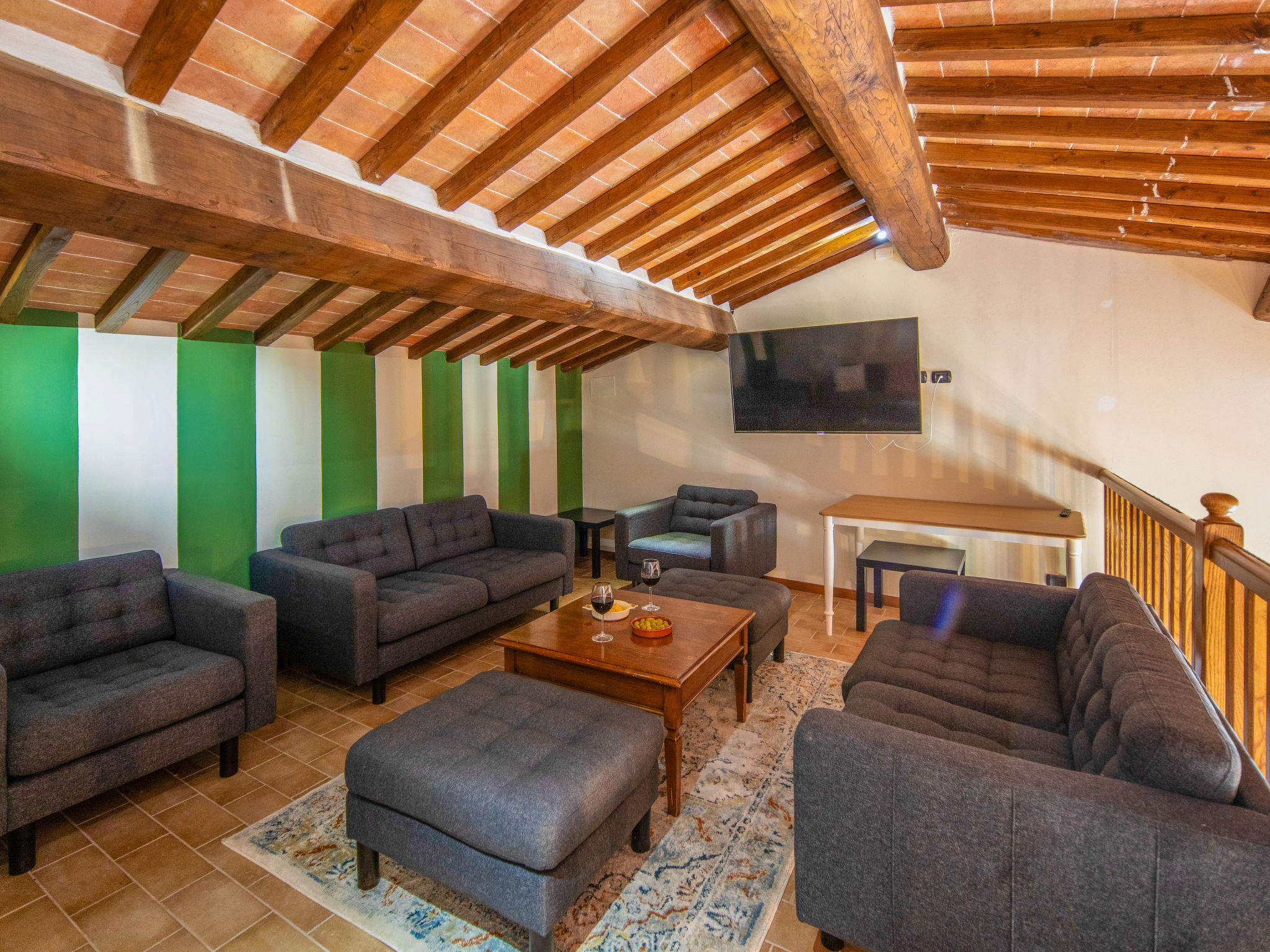 11-Zimmer-Haus 400 m2 auf 3 Stockwerken. Komfortabel und stilvoll eingerichtet: Eingang. Grosses Wohn-/Esszimmer mit Küchenblock, TV und Sat-TV. Ausgang zur Terrasse. Wohn-/Esszimmer mit Küchenblock. 1 Doppelzimmer mit Dusche/Bidet/WC und TV (Flachbildschirm), Klimaanlage. Kochnische (Backofen, Geschirrspüler, 5 Flammen, Mikrowelle, Tiefkühler, elektrische Kaffeemaschine, Dampfgarer). Dusche/Bidet/WC. Unteres Geschoss: 1 Doppelzimmer mit Bad/Bidet/WC, Sprudelbad und TV (Flachbildschirm). Wohn-/Esszimmer mit Küchenblock. 1 Doppelzimmer mit Dusche/Bidet/WC und TV (Flachbildschirm). Wohn-/Esszimmer mit Küchenblock. 1 Doppelzimmer mit Dusche/Bidet/WC, Sprudelbad und TV (Flachbildschirm). Wohnzimmer. Ausgang zum Garten. Bad. Obergeschoss: Wohnzimmer. 1 Doppelzimmer mit TV (Flachbildschirm), Klimaanlage. Bad/Dusche/Bidet/WC, Hydromassage-Dusche, Whirlbadewanne. G-Heizung (extra). Panoramasicht auf das Tal. Zur Verfügung: Waschmaschine, Haartrockner. Internet (Wireless LAN).
