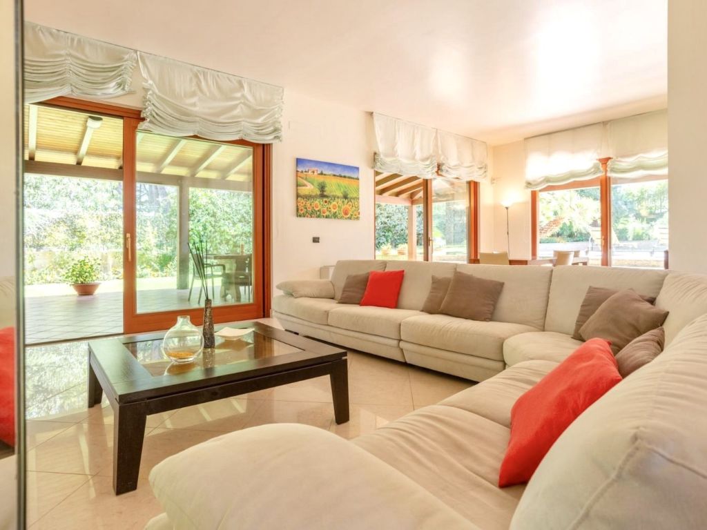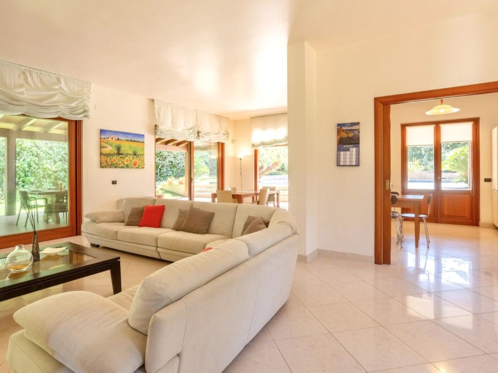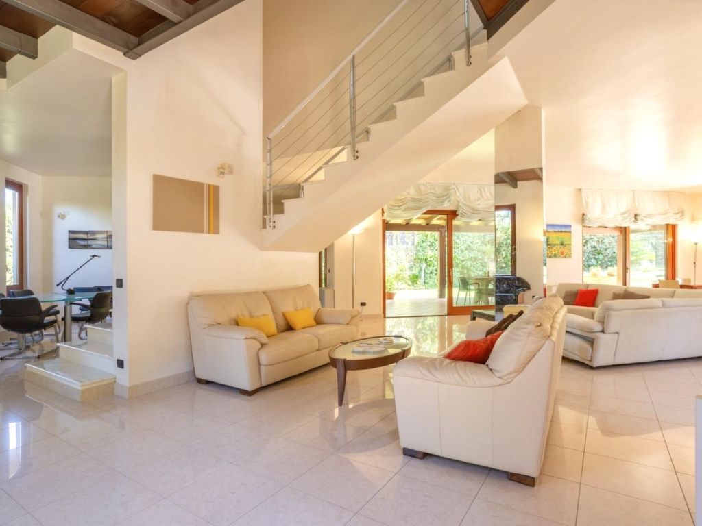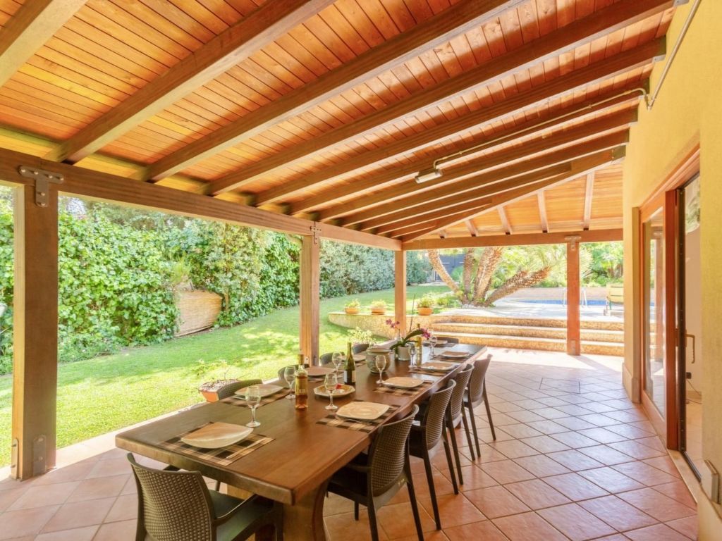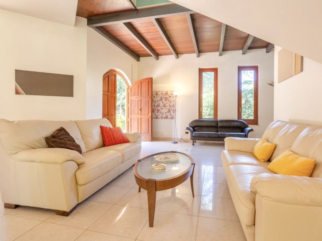 5-Zimmer-Villa 320 m2 auf 2 Stockwerken. Komfortabel und geschmackvoll eingerichtet: grosses Wohn-/Esszimmer mit Panoramafenster mit TV (Flachbildschirm). Ausgang zum Garten, zum Gartensitzplatz, zum Schwimmbad. Küche (4 Kochplatten, Backofen, Geschirrspüler, Toaster, Wasserkocher, Mikrowelle, Tiefkühler) mit kleinem Esstisch. Ausgang zum Gartensitzplatz. Dusche/WC. Obergeschoss: 1 Doppelzimmer 50 m2 mit Bad/Dusche/Bidet/WC, Doppelwaschbecken, Klimaanlage und Warmluftheizung. Ausgang zum Balkon. 2 Doppelzimmer, jedes Zimmer mit Klimaanlage und Warmluftheizung. Ausgang zum Balkon. 1 Zimmer mit 2 Betten, Klimaanlage und Warmluftheizung. Ausgang zum Balkon. Durchgangszimmer. Ausgang zum Balkon. Dusche/Bidet/WC. Klimaanlage, Warmluftheizung. 4 Balkone 4 m2, grosser Gartensitzplatz 50 m2, überdacht. Terrassenmöbel, Liegestühle. Zur Verfügung: Waschmaschine, Bügeleisen, Kinderhochstuhl, Babybett bis 2 Jahre, Haartrockner. Internet (Wireless LAN, gratis). Parkplatz.