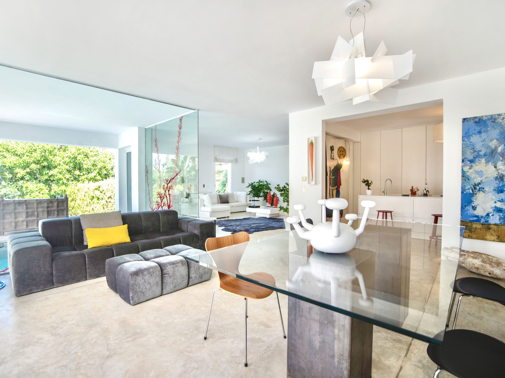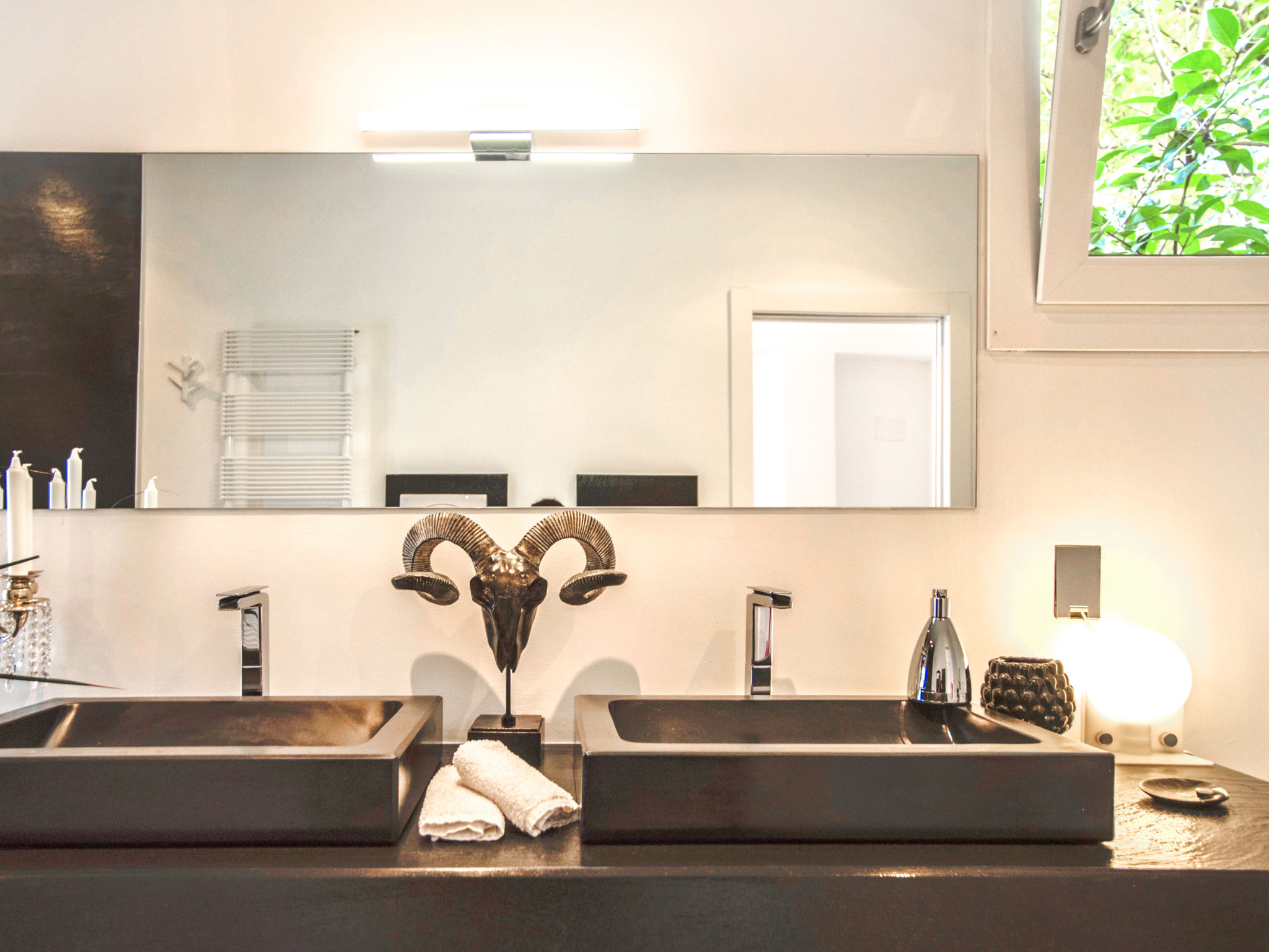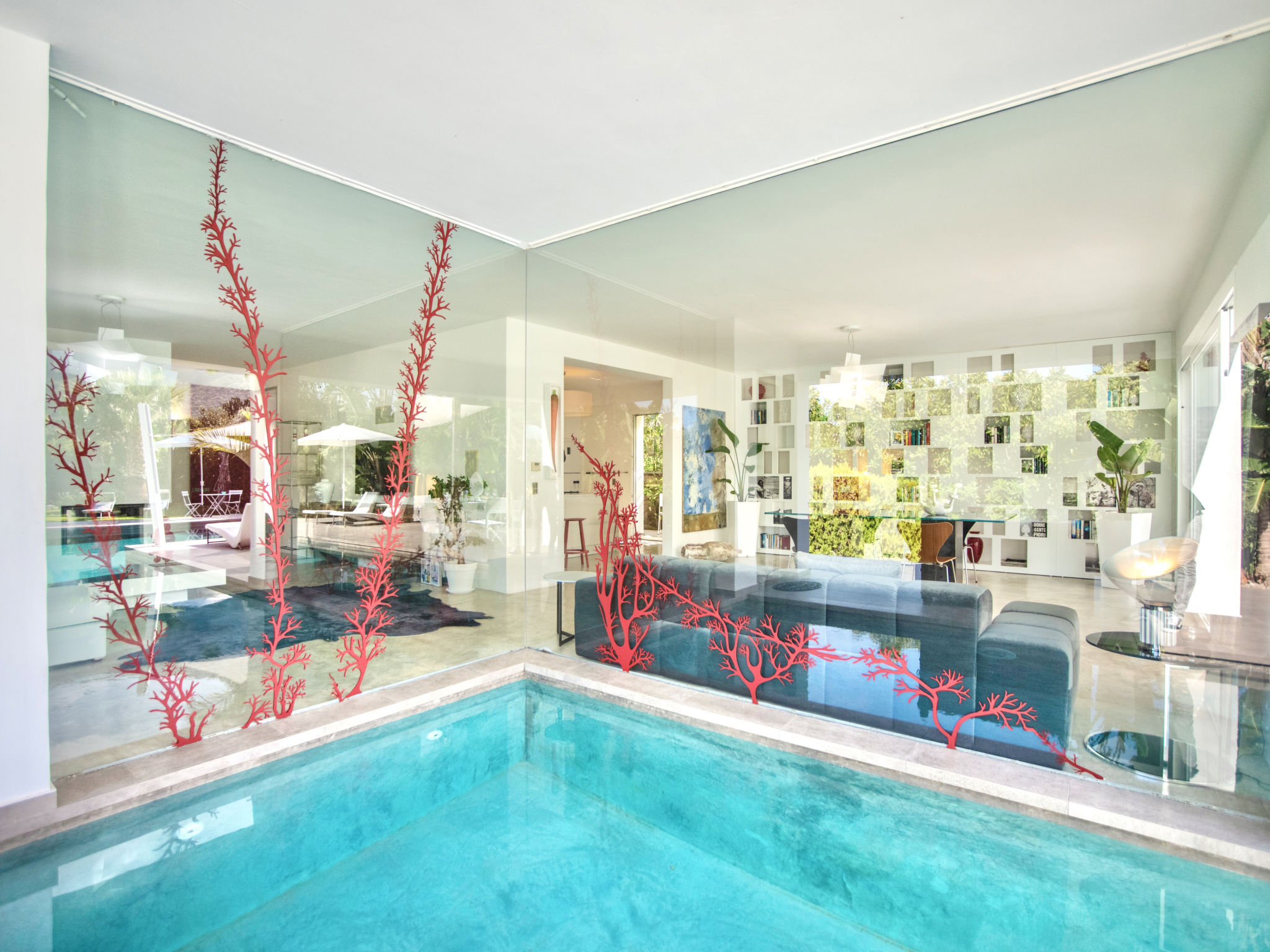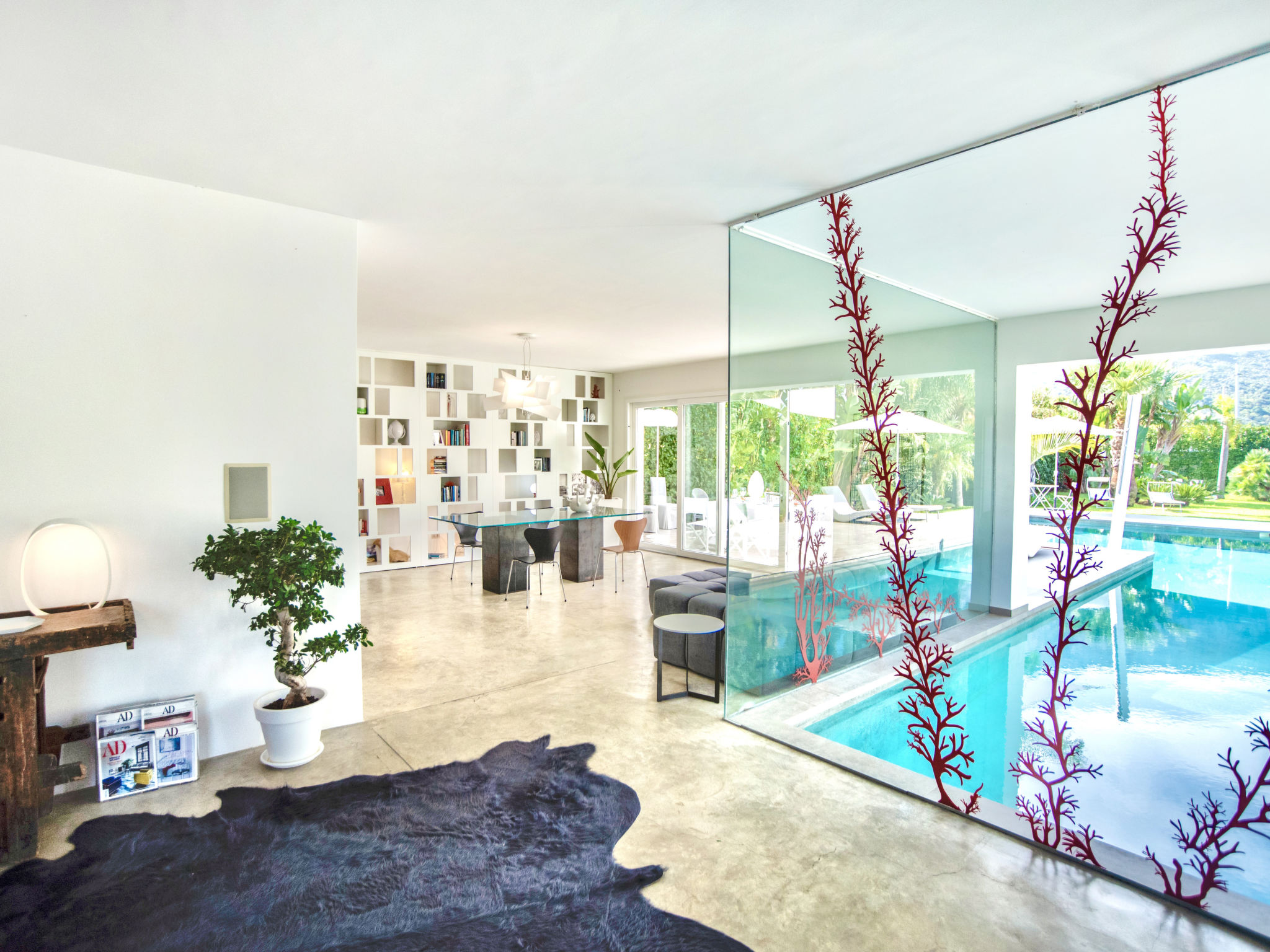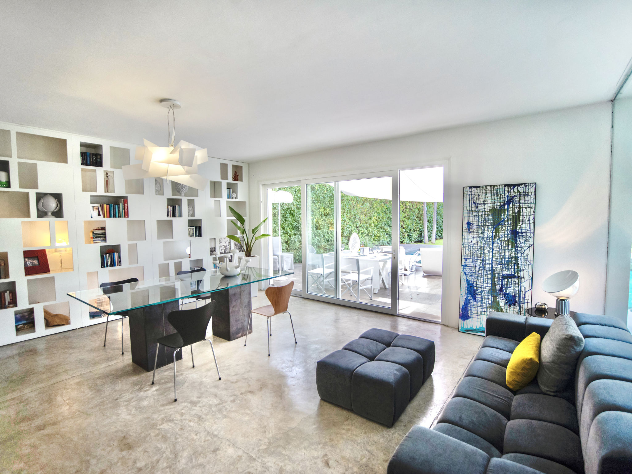 3-Zimmer-Villa 180 m2. Modern und stilvoll eingerichtet: grosses Wohnzimmer mit Panoramafenster mit Sat-TV (Flachbildschirm), Klimaanlage und Warmluftheizung. Ausgang zum Garten, zum Gartensitzplatz, zum Schwimmbad. 1 Doppelzimmer mit Dusche/Bidet/WC, Doppelwaschbecken, Klimaanlage und Warmluftheizung. Ausgang zum Garten. 1 Doppelzimmer mit Klimaanlage und Warmluftheizung. Ausgang zum Garten. Kochnische (5 Kochplatten, Backofen, Geschirrspüler, Toaster, Wasserkocher, Mikrowelle, Tiefkühler, elektrische Kaffeemaschine, Kochinsel). Dusche/Bidet/WC. Gartensitzplatz 10 m2, teilweise überdacht. Terrassenmöbel, Gartengrill, Liegestühle. Sicht auf das Schwimmbad und den Garten. Zur Verfügung: Waschmaschine, Bügeleisen, Kinderhochstuhl, Babybett bis 2 Jahre, Haartrockner. Internet (Wireless LAN, gratis). Parkplatz. Maximal 1 Haustier/Hund erlaubt. Die Villa wird auch von einer Außenküche (4 Brenner) serviert.