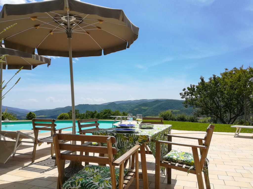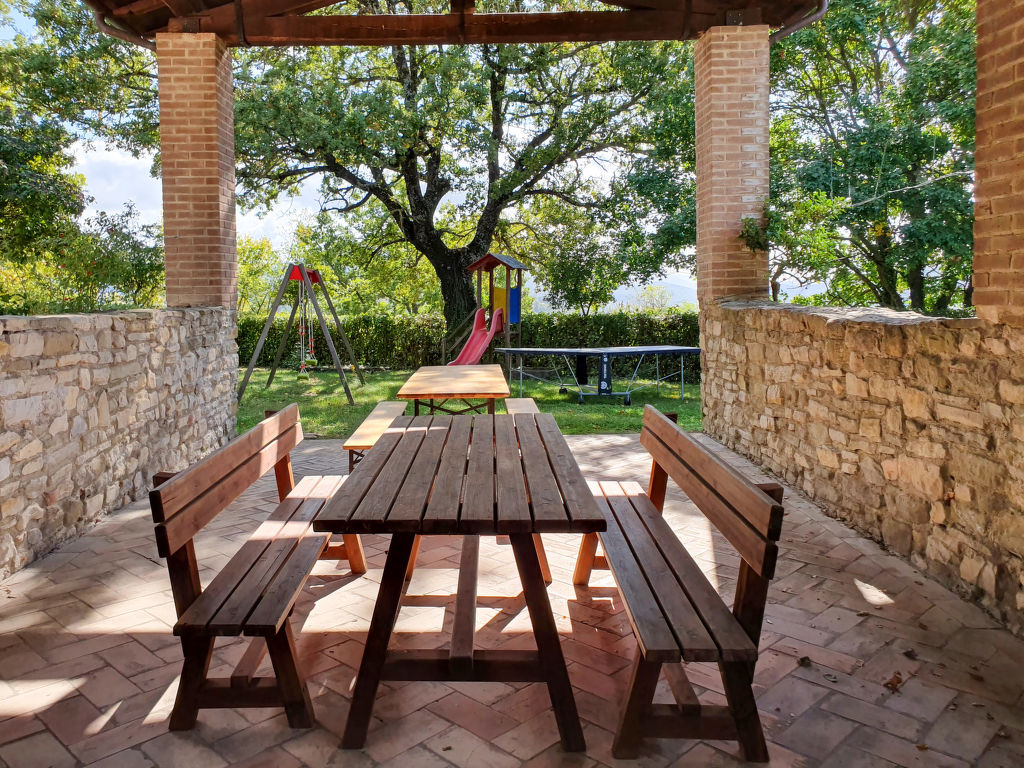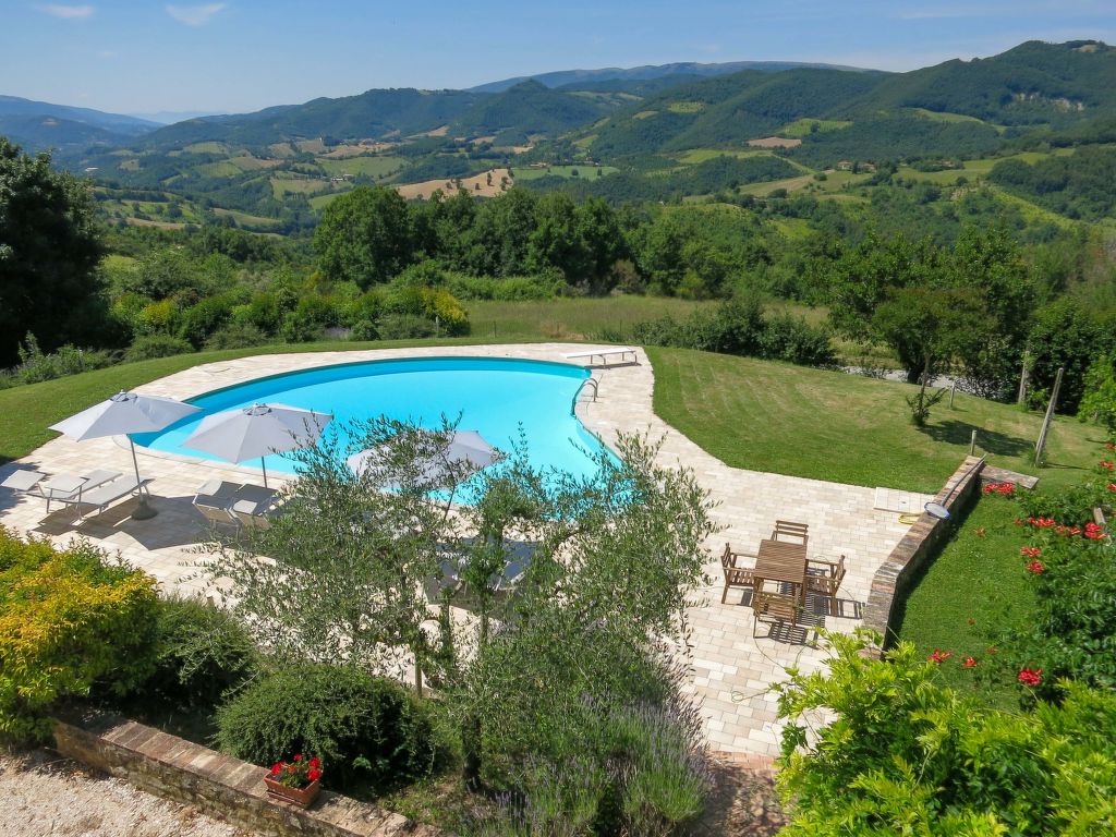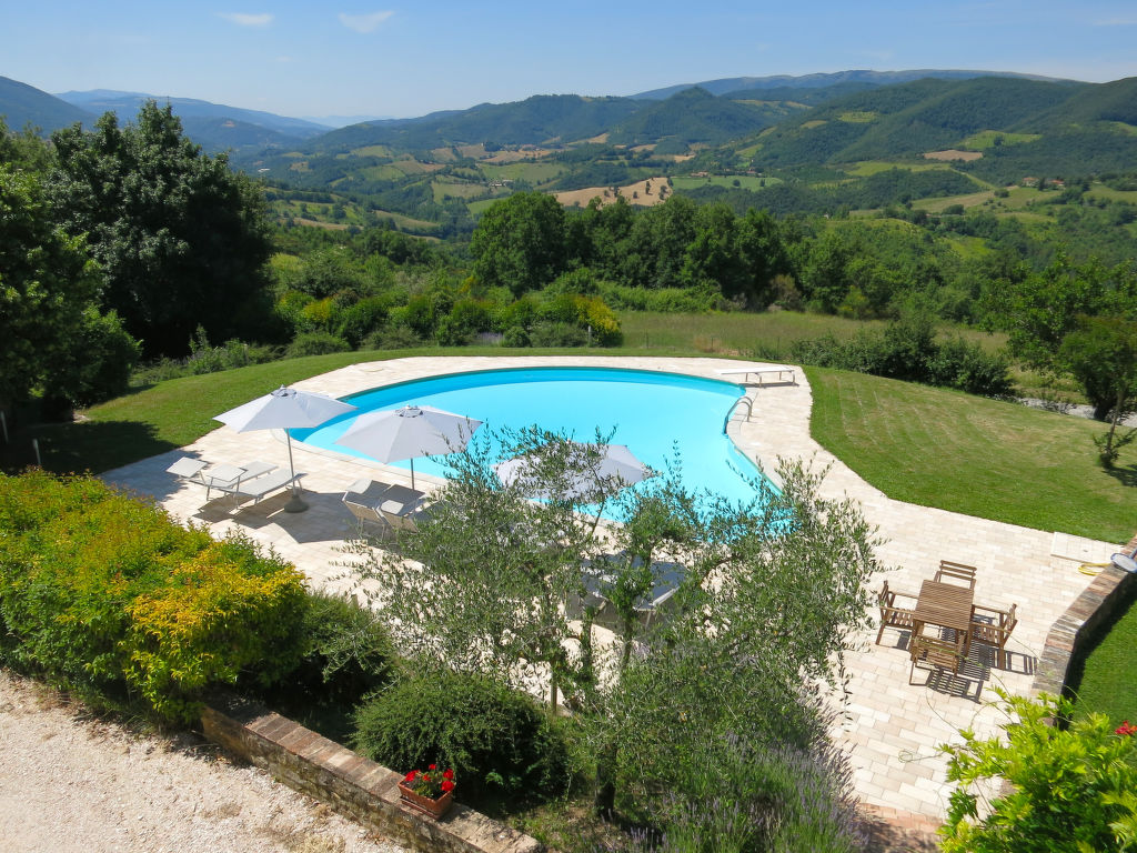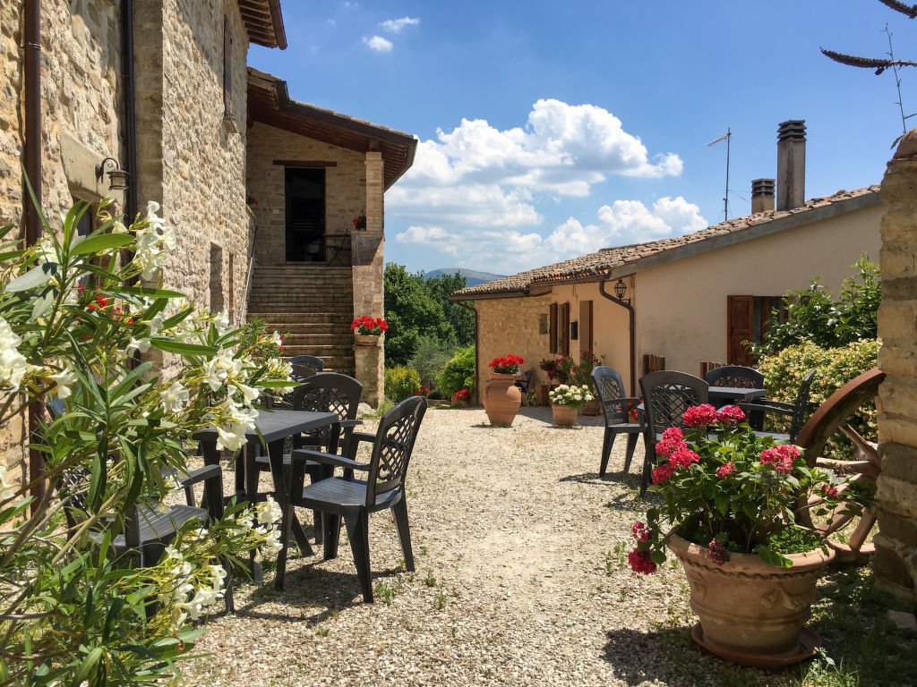 Gemütlich, rustikal Agriturismo "Le Serre", 350 m.ü.M., umgeben von Bäumen und Feldern. 9 Wohnungen im Ferienhaus. 7 km vom Zentrum von Nocera Umbra, auf einem Hügel. Zur Mitbenutzung: Grundstück 1 ha, wunderschöner Garten zum Entspannen, Schwimmbad (12 x 13 m, 110 - 240 cm tief, saisonale Verfügbarkeit: 01.Mai.-15.Okt.). Ungleichmässige Schwimmbadform, Aussendusche, Sitzplatz, Gartenmöbel, Grill, Kinderspielplatz. Im Hause: Empfang, Wireless LAN. Zufahrt (100 m Naturweg). Parkplatz auf dem Grundstück. Lebensmittelgeschäft 7 km, Supermarkt 7 km, Restaurant 7 km. Nahe gelegene Sehenswürdigkeiten: Gualdo Tadino 15 km, Assisi 27 km, Foligno 35 km. Bitte beachten: Fahrzeug empfohlen.