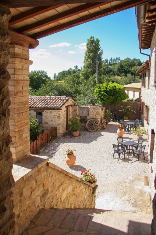 Gemütlich, rustikal Agriturismo "Le Serre", 350 m.ü.M., umgeben von Bäumen und Feldern. 9 Wohnungen im Ferienhaus. 7 km vom Zentrum von Nocera Umbra, auf einem Hügel. Zur Mitbenutzung: Grundstück 1 ha, wunderschöner Garten zum Entspannen, Schwimmbad (12 x 13 m, 110 - 240 cm tief, saisonale Verfügbarkeit: 01.Mai.-15.Okt.). Ungleichmässige Schwimmbadform, Aussendusche, Sitzplatz, Gartenmöbel, Grill, Kinderspielplatz. Im Hause: Empfang, Wireless LAN. Zufahrt (100 m Naturweg). Parkplatz auf dem Grundstück. Lebensmittelgeschäft 7 km, Supermarkt 7 km, Restaurant 7 km. Nahe gelegene Sehenswürdigkeiten: Gualdo Tadino 15 km, Assisi 27 km, Foligno 35 km. Bitte beachten: Fahrzeug empfohlen.
