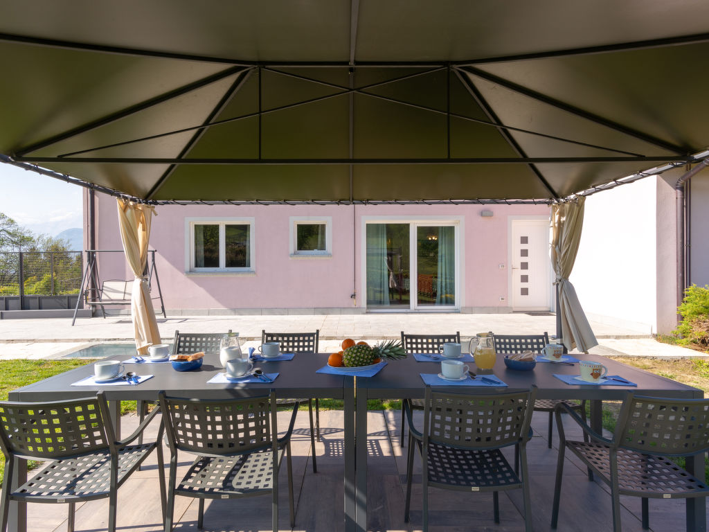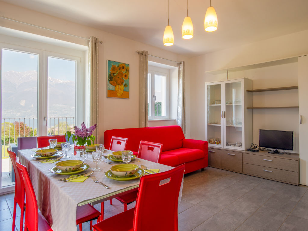 "Legnoncino", 6-Zimmer-Doppelhaushälfte 120 m2, im erhöhten Erdgeschoss. Modern und geschmackvoll eingerichtet: Wohn-/Schlafzimmer mit 1 Doppeldiwanbett, Esstisch und Sat-TV. Ausgang zur Terrasse. 1 Zimmer mit 1 Doppelbett. 1 Zimmer mit 1 x 2 Etagenbetten, 1 Ausziehbett. Wohn-/Schlafzimmer mit 1 Doppeldiwanbett, Esstisch, Küchenblock und Sat-TV. Ausgang zur Terrasse. 1 Zimmer mit 1 Doppelbett. Ausgang zur Terrasse. 1 Zimmer, ohne Fenster mit 1 Bett und 1 Ausziehbett. Offene Küche (Backofen, Geschirrspüler, 4 Flammen, Toaster, Wasserkocher, Tiefkühler, elektrische Kaffeemaschine). 2 Duschen/WC. G-Heizung. Grosse Terrasse, 2 kleine Terrassen, grosser Gartensitzplatz, Laube. Terrassenmöbel, Liegestühle. Schöne Sicht auf den See. Zur Verfügung: Waschmaschine, Kinderhochstuhl, Babybett bis 2 Jahre. Internet (Wireless LAN, gratis). Parkplatz (überdacht, 4 Autos) beim Haus. Maximal 2 Haustiere/Hunde erlaubt. Keine interne Verbindung zwischen den separaten Wohneinheiten. CIR: 097023-CNI-00052