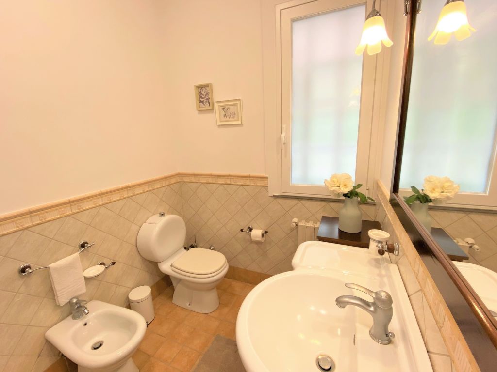 6-Zimmer-Villa 300 m2 auf 2 Stockwerken. Schön und geschmackvoll eingerichtet: grosses Wohn-/Esszimmer mit Sat-TV (Flachbildschirm). Ausgang zur Terrasse, zum Gartensitzplatz. 1 Doppelzimmer mit Dusche/Bidet/WC, Klimaanlage und Warmluftheizung. Küche (4 Kochplatten, Backofen, Geschirrspüler, Toaster, Wasserkocher, Mikrowelle, Tiefkühler) mit Esstisch. Dusche/WC. Obergeschoss: 1 Doppelzimmer mit Dusche/Bidet/WC, Klimaanlage und Warmluftheizung. Ausgang zum Balkon. Eingang mit Klimaanlage und Warmluftheizung. 2 Doppelzimmer. 1 Zimmer mit 2 Betten. Dusche/Bidet/WC. 2 kleine Balkone 2 m2, grosser Gartensitzplatz 40 m2, überdacht. Terrassenmöbel, Gartengrill, Liegestühle. Sicht auf das Schwimmbad und die Landschaft. Zur Verfügung: Waschmaschine, Bügeleisen, Kinderhochstuhl, Babybett bis 2 Jahre, Haartrockner. Internet (Wireless LAN, gratis). Parkplatz. Bitte beachten: Nichtraucher-Haus.