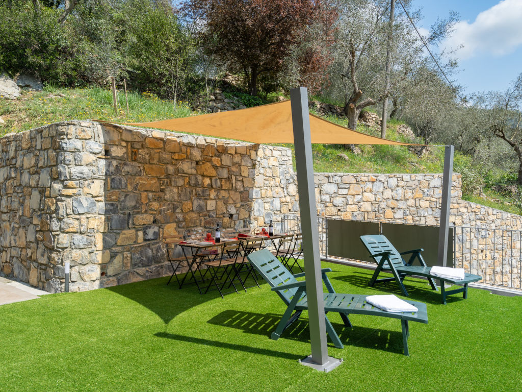 "Casa Mimosa", 4-Zimmer-Wohnung 140 m2 auf 2 Stockwerken. Schön eingerichtet: grosses Wohnzimmer mit 1 Diwanbett (160 cm, Länge 200 cm). Ausgang zum Gartensitzplatz. 1 Doppelzimmer. Ausgang zur Terrasse. Wohnküche (Backofen, Geschirrspüler, 4 Flammen, Toaster, Wasserkocher). Ausgang zur Terrasse. Dusche/Bidet/WC. Obergeschoss: (Leiter) 1 Doppelzimmer. 1 Kinderzimmer, Deckenhöhe 120 - 150 cm mit 2 Betten (80 cm, Länge 190 cm). Sep. WC. Heizung nur verfügbar von 15.10. bis 30.04. Natursteinböden. Gartensitzplatz 300 m2. Terrassenmöbel, Liegestühle. Schöne Panoramasicht auf die Berge. Zur Verfügung: Waschmaschine. Internet (Wireless LAN, gratis). Parkplatz (2 Autos). 1 Haustier/Hund erlaubt. CITRA 008045-LT-0024
