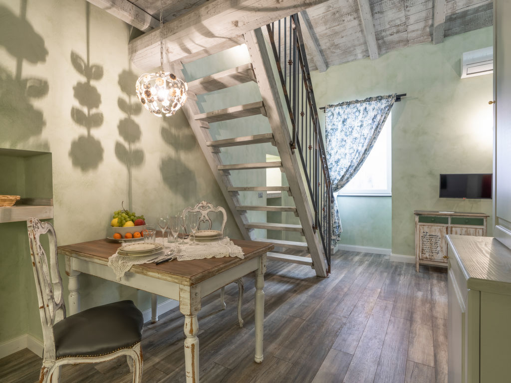 "Appartamento Pepe", 1-Zimmer-Wohnung 50 m2 im 2. Stock. Sehr rustikal eingerichtet: Wohn-/Esszimmer. Kochnische (Backofen, 4 Flammen, Toaster, Wasserkocher). Dusche/Bidet/WC. E-Heizung, Klimaanlage. Heizung nur verfügbar von 15.10. bis 30.04. Obergeschoss: (steile Treppe) grosse Galerie mit Dachfenster mit TV. 1 Doppelzimmer. Parkettböden. Zur Verfügung: Waschmaschine. Internet (Wireless LAN). CITRA 008010-LT-0031