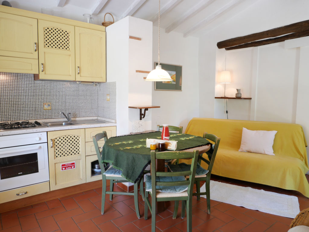 "Fiore", 2-Zimmer-Haus 46 m2. Hell, komfortabel und rustikal eingerichtet: 1 Doppelzimmer. Offene Küche (Backofen, 4 Flammen) mit 1 Doppeldiwanbett und Esstisch. Ausgang zur Terrasse. Dusche/Bidet/WC, Doppelwaschbecken. G-Heizung. Terrasse überdacht. Terrassenmöbel, Liegestühle. 1 Haustier/Hund erlaubt.