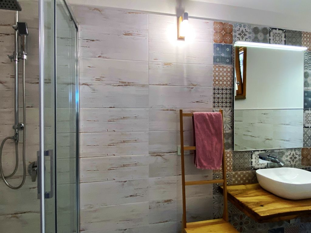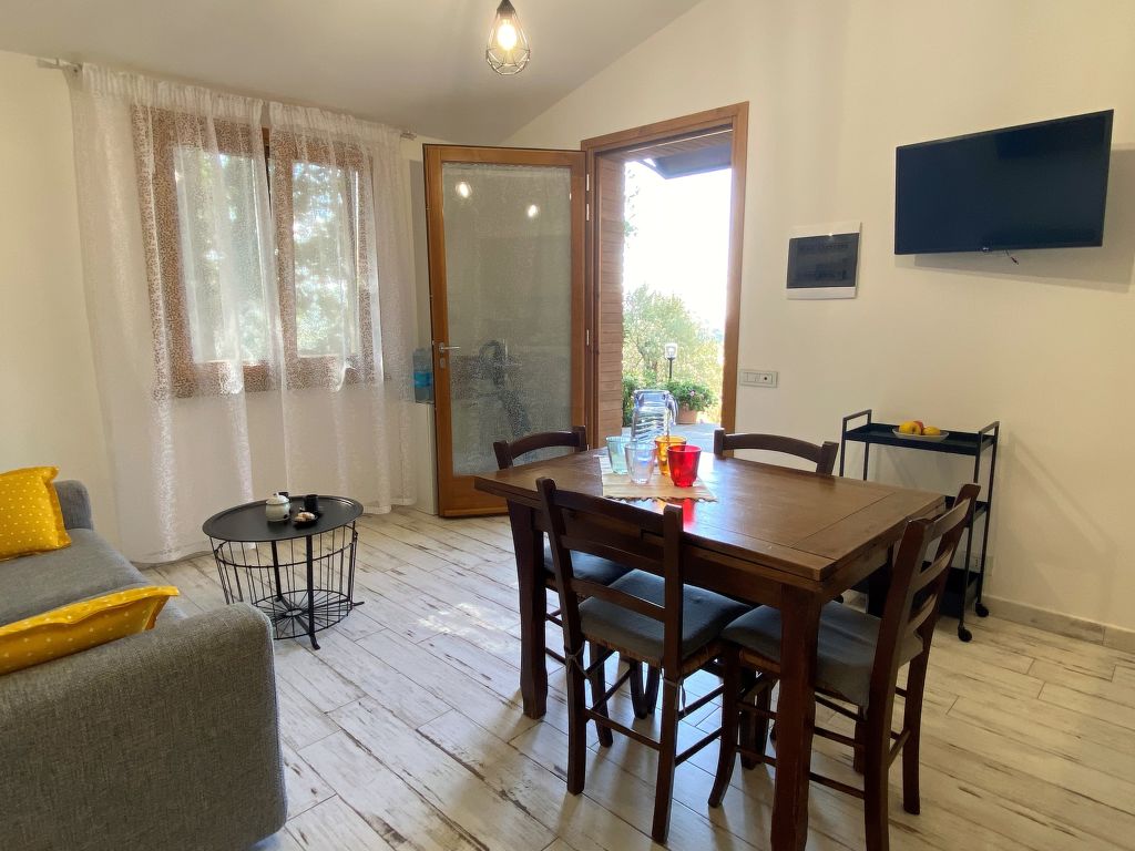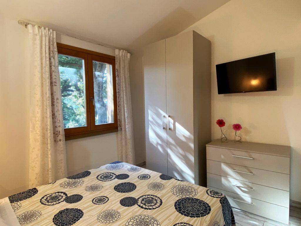 2-Zimmer-Haus 40 m2, im Erdgeschoss. Objekt geeignet für 2 Erwachsene + 2 Kinder. Schön und modern eingerichtet: Wohn-/Schlafzimmer mit 1 Doppeldiwanbett, Digital-TV und Holzofen. Ausgang zum Garten, zur Terrasse. 1 Doppelzimmer. Kochnische (Geschirrspüler, 4 Induktionskochplatten, Toaster, Wasserkocher, Mikrowelle, Tiefkühler, elektrische Kaffeemaschine). Dusche/Bidet/WC. E-Heizung, Klimaanlage. Kleiner Gartensitzplatz. Terrassenmöbel, Gartengrill, Liegestühle (2). Schöne Sicht auf die Landschaft. Zur Verfügung: Waschmaschine, Fliegengitter bis 2 Jahre, Haartrockner. Internet (Wireless LAN, gratis).