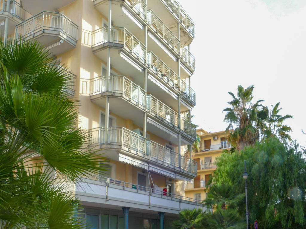 Modernes Appartementhaus "Villa Flora", auf 4 Stockwerken. 20 Wohnungen in der Residenz. Im Ortszentrum von Arma di Taggia, 5 km vom Zentrum von Sanremo, 300 m vom Meer. Im Hause: Fahrstuhl. Öffentliche Parkplätze 100 m auf der Strasse. Lebensmittelgeschäft 300 m, Supermarkt 800 m, Restaurant 200 m, Bar 50 m, Bäckerei 100 m, Fahrradverleih 200 m, Bushaltestelle 50 m, Bahnstation 2 km, Sandstrand 300 m. Jacht-Hafen 500 m. Nahe gelegene Sehenswürdigkeiten: Pista ciclabile 200 m, Convento Taggia 2 km, Ponte Antico 2 km, Ventimiglia 15 km, Imperia 10 km.