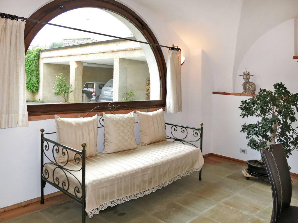 "Cascinotta (BTA150)", 6-Zimmer-Doppelhaushälfte 200 m2 auf 3 Stockwerken. Geräumig, komfortabel und geschmackvoll eingerichtet: Wohnzimmer mit Sat-TV, CD und Stereoanlage. Ausgang zum Garten. Wohnküche (Backofen, Geschirrspüler, 4 Flammen, Toaster, Wasserkocher, Mikrowelle, Tiefkühler, elektrische Kaffeemaschine) mit Esstisch. Obergeschoss: grosses Wohn-/Schlafzimmer, auf 2 Ebenen mit 1 Doppelbett, Dusche/WC und Sat-TV. Grosses Wohn-/Schlafzimmer, auf 2 Ebenen mit 1 Doppelbett, Dusche/WC und Sat-TV. Fussbodenheizung. Holzböden. 3 Terrassen. Terrassenmöbel, Liegestühle. Panoramasicht. Zur Verfügung: Fliegengitter. Internet (Wireless LAN, gratis). Bitte beachten: Nichtraucher-Haus. CIR: 00401400001