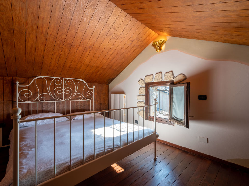 "Mansarda", 2-Zimmer-Wohnung 60 m2 im 3. Stock. Zweckmässig eingerichtet: Wohn-/Esszimmer mit Esstisch und Sat-TV. 1 Zimmer mit 1 franz. Bett und Dusche/Bidet/WC. Abgeschrägte, offene Galerie mit 1 Doppelbett. Kleine Kochnische (4 Flammen, Wasserkocher). G-Heizung. Heizung nur verfügbar von 15.10. bis 15.04. Sicht auf die Ortschaft. 1 Haustier/Hund erlaubt.
