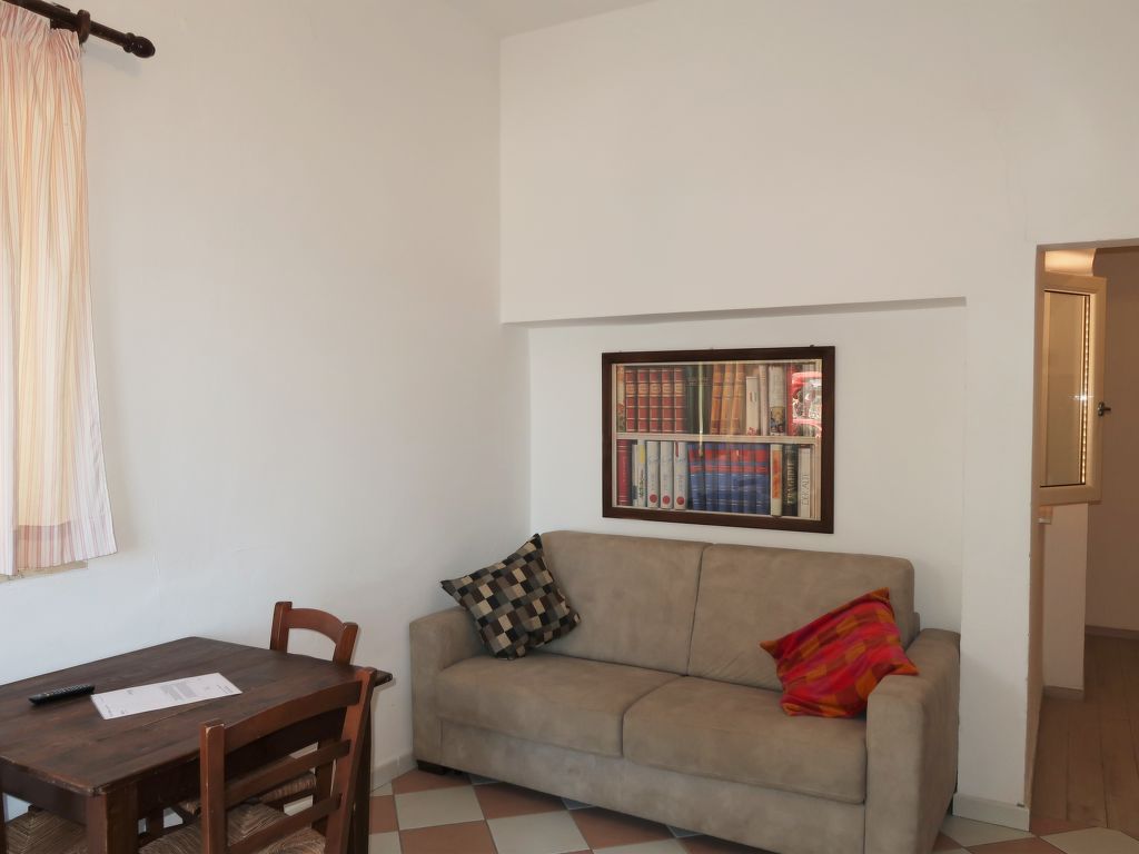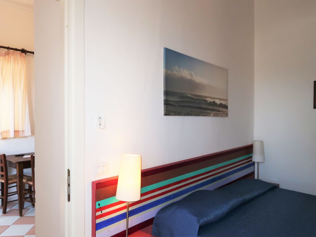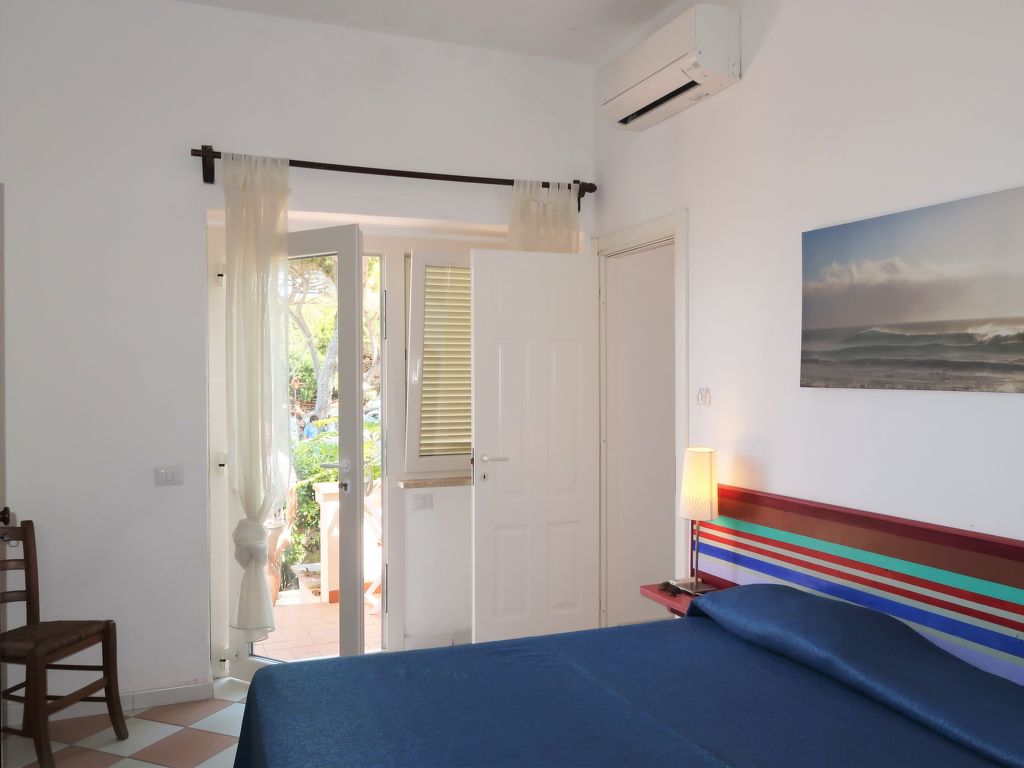 2-Zimmer-Wohnung 30 m2, im Erdgeschoss. Zweckmässig eingerichtet: Wohn-/Schlafzimmer mit 1 Doppeldiwanbett (140 cm), Esstisch und Sat-TV. Ausgang zur Terrasse. 1 Zimmer mit 1 franz. Bett (160 cm, Länge 190 cm), Dusche/Bidet/WC und Klimaanlage. Kochnische (1 Kochplatte, 3 Flammen). Keine Heizmöglichkeit. Terrasse. Terrassenmöbel. Schöne Sicht auf das Meer. Zur Verfügung: Babybett. Internet (Wireless LAN, extra). Parkplatz. Bitte beachten: Nichtraucher-Unterkunft. Maximal 1 Haustier/Hund erlaubt. Eigener Eingang.