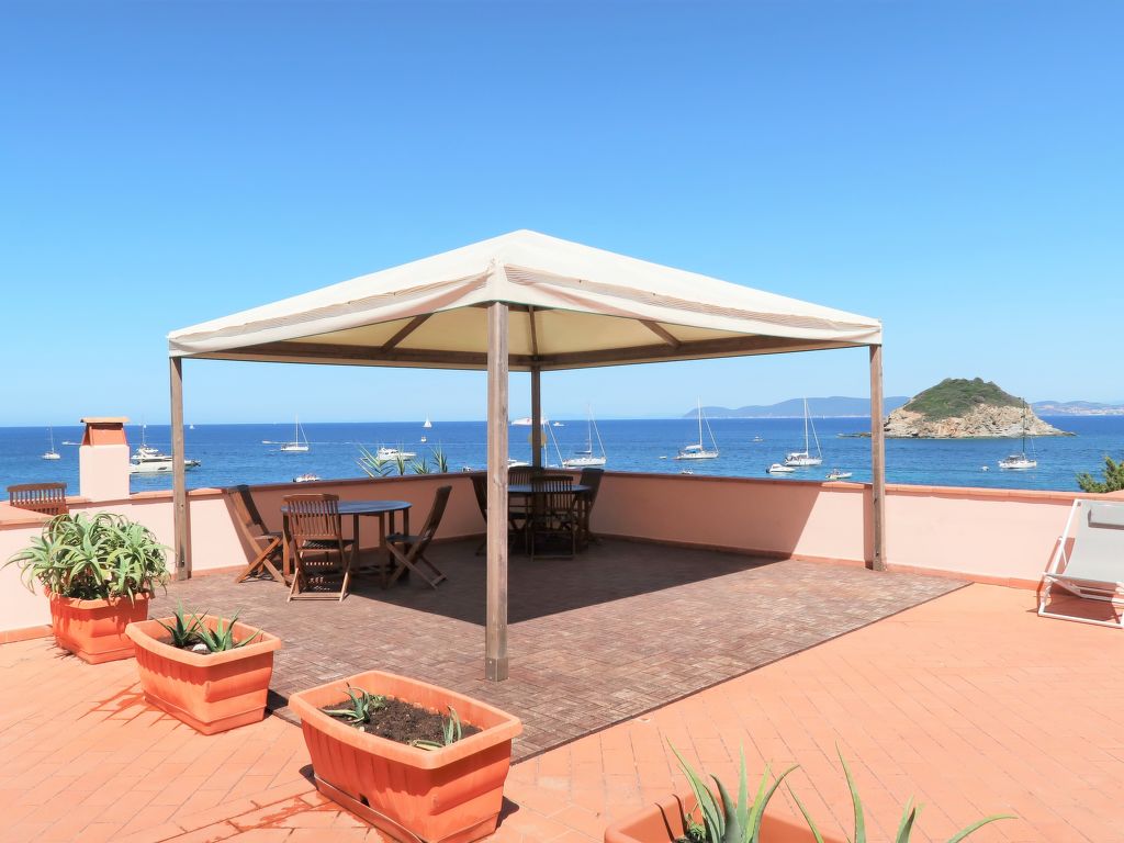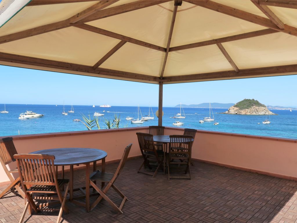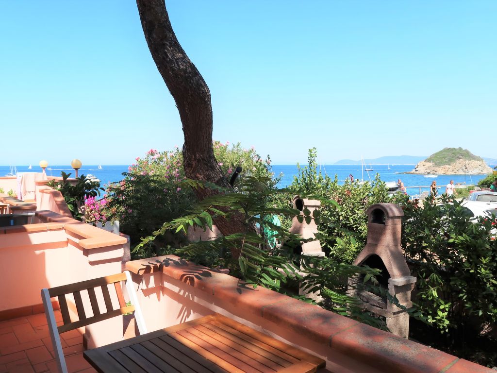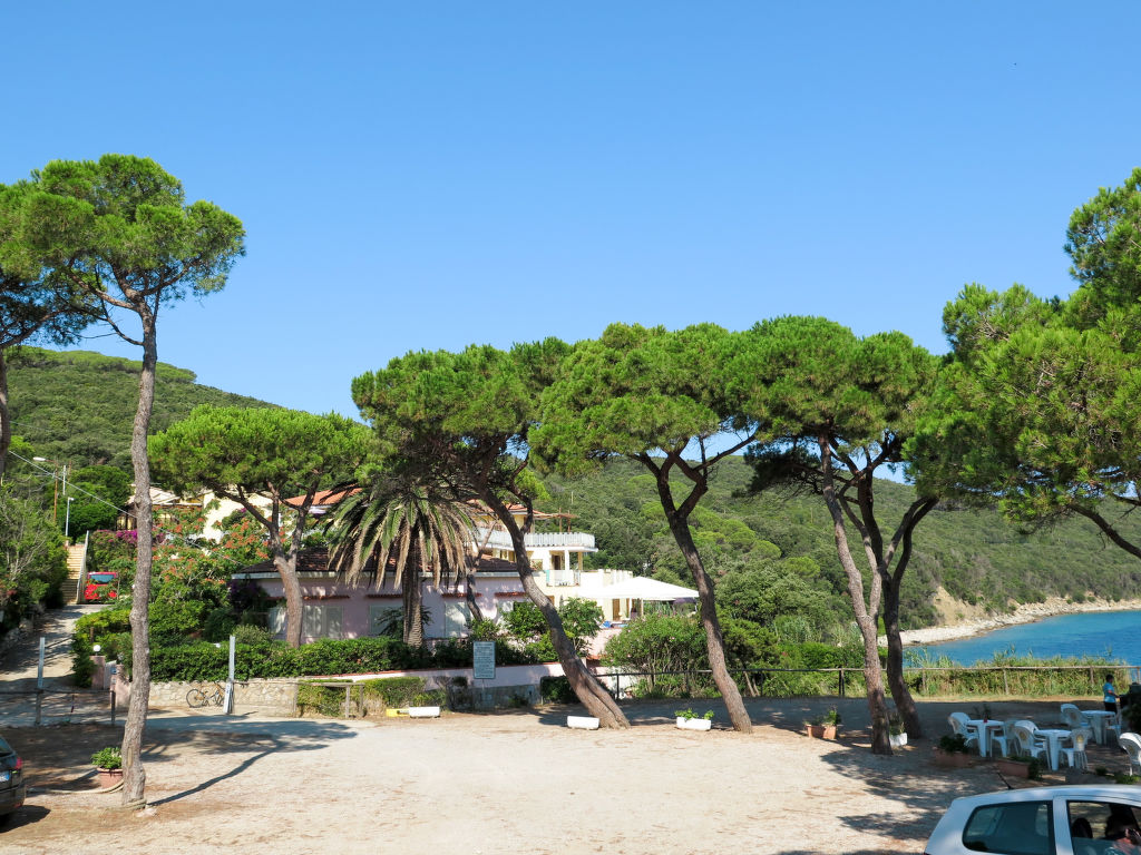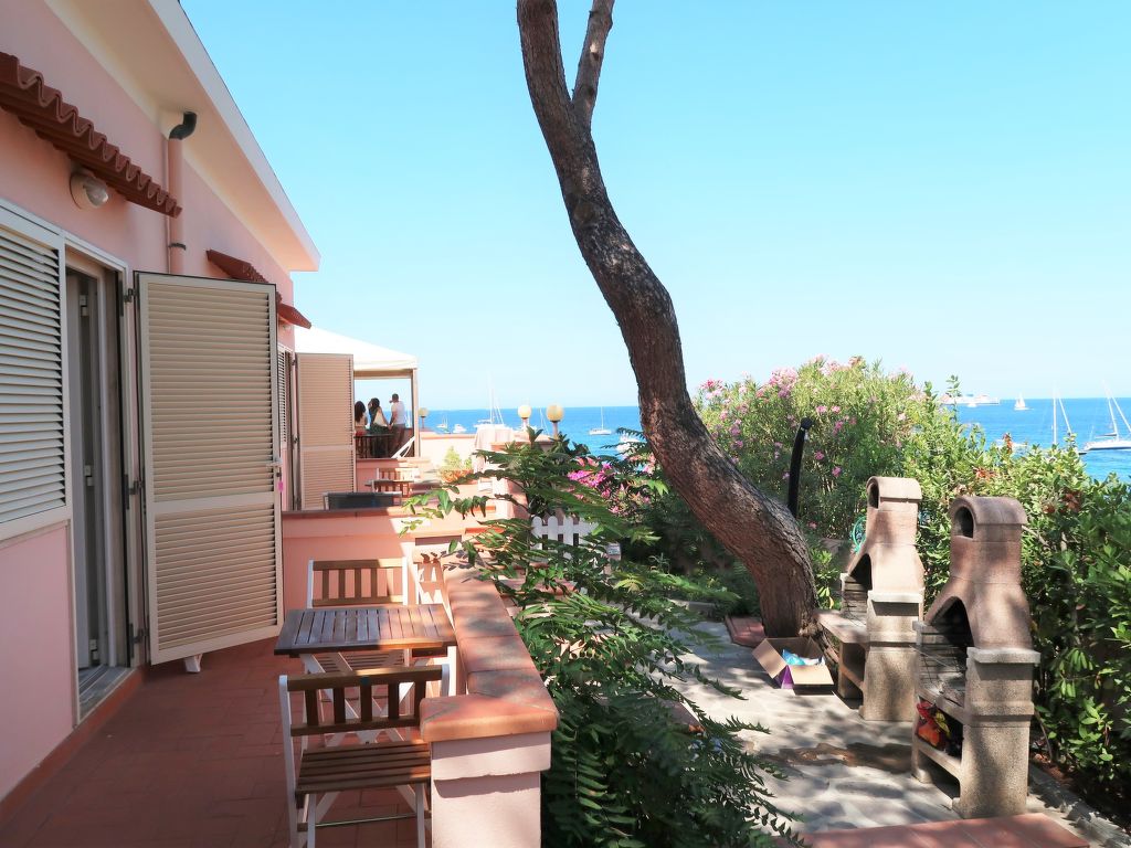 Mehrfamilienhaus "Castello". 4 Wohnungen im Ferienhaus. 800 m vom Zentrum von Cavo, am Ortsrand, 8 km vom Zentrum von Rio Marina, 30 km vom Zentrum von Portoferraio, am Hang, 30 m vom Meer, direkter Zugang zum Strand. Zur Mitbenutzung: kleiner Terrassengarten (nicht eingezäunt) mit Pflanzen und Bäumen. Terrasse, Gartenmöbel, Parkplatz beim Haus in 50 m öffentliche Parkplätze 150 m. Lebensmittelgeschäft, Restaurant 800 m, Fähre "Cavo" 1 km, Kieselstrand "Frugoso" 30 m.