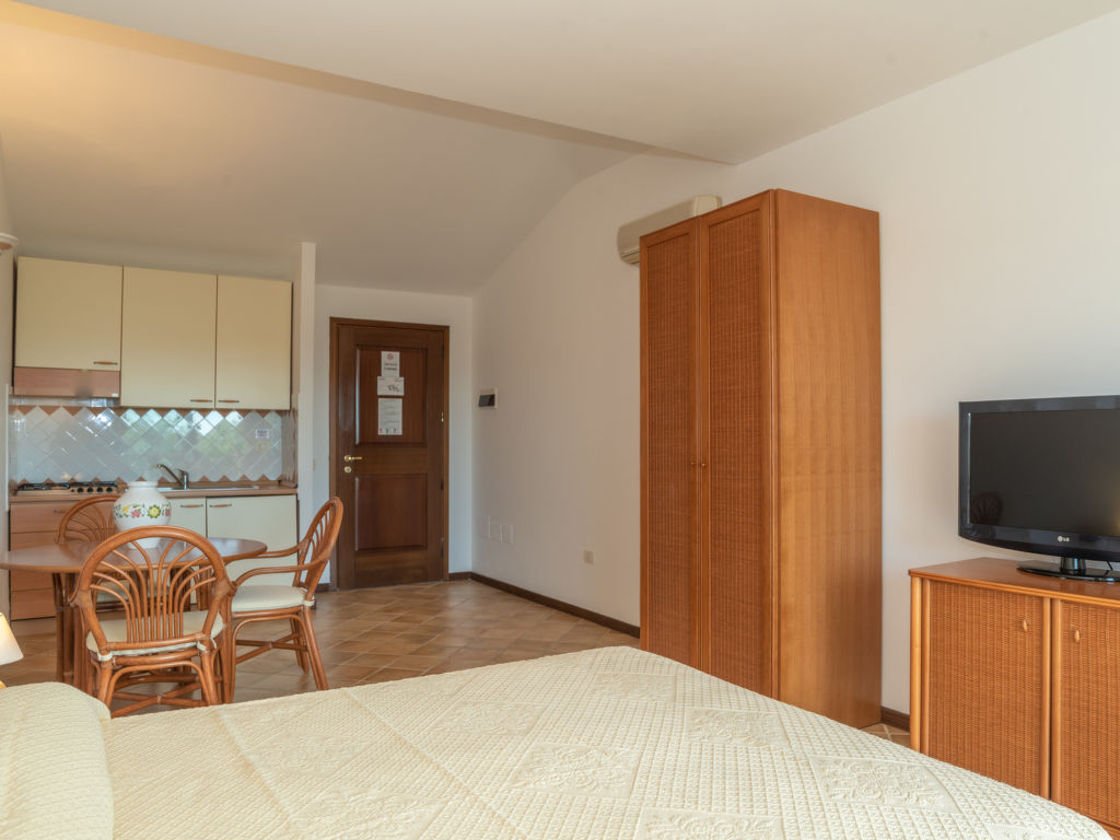 "Bougainville 5 - Vista Village", 1-Zimmer-Reihenhaus 35 m2, im Erdgeschoss. Komfortabel und gemütlich eingerichtet: Wohn-/Esszimmer mit Veranda mit 1 Doppelbett, Sat-TV und Flachbildschirm. Ausgang zur Veranda. Kochnische (4 Kochplatten) mit Esstisch. Dusche/Bidet/WC. Klimaanlage (extra). Kleine Terrasse überdacht. Terrassenmöbel. Sicht auf den Garten. Zur Verfügung: Safe, Haartrockner. Parkplatz Nr. B5 (überdacht), Breite 230 cm. IUN:E2088