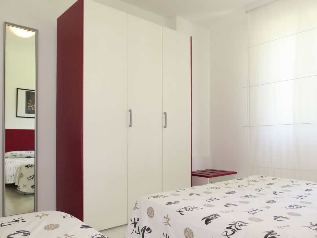 2-Zimmer-Wohnung, Hochparterre, ca. 40 m². Wohn-/Schlafraum mit Doppelbettcouch, Essplatz, Kochnische (4 Flammen, Mikrowelle, Kühl-/Gefrierkombination, Kaffeemaschine). Schlafzimmer mit Doppelbett und Einzelbett. Dusche/WC.