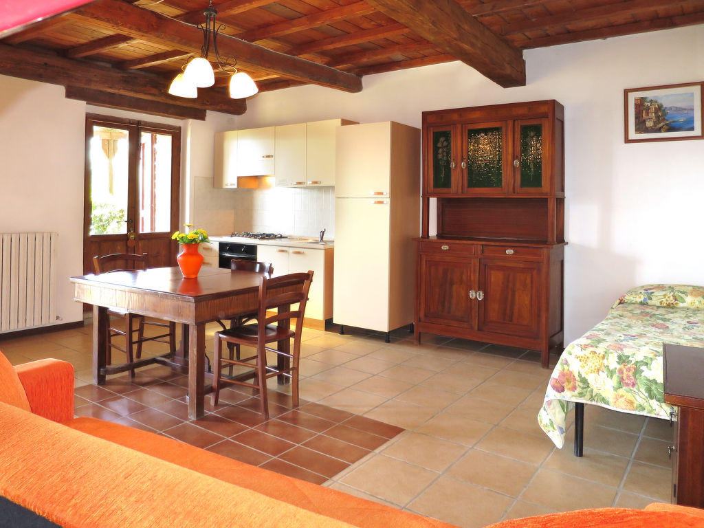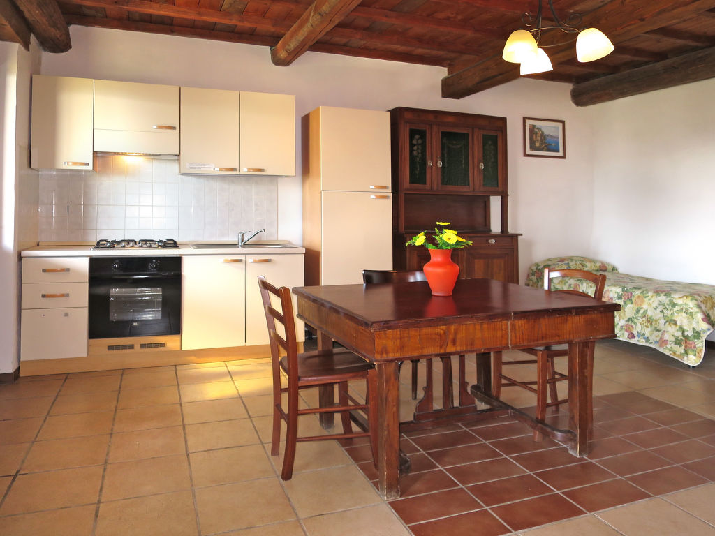 "Ginestre 4", 2-Zimmer-Reihenhaus 45 m2 auf 2 Stockwerken, im Erdgeschoss. Einfach und rustikal eingerichtet: Wohn-/Schlafzimmer mit 1 Bett, 1 Diwanbett und Esstisch. Ausgang zur Terrasse. Kochnische (Backofen, 4 Flammen, Wasserkocher, Tiefkühler). Obergeschoss: (geländerlose Treppe) 1 abgeschrägtes, offenes Zimmer mit 1 Bett und 1 franz. Bett (160 cm), Dusche/Bidet/WC. G-Heizung. Terrassenmöbel. Schöne Sicht auf die Landschaft. Zur Verfügung: Kinderhochstuhl, Babybett. Bitte beachten: Maximal 2 Haustiere/Hunde erlaubt. Eigener Eingang.