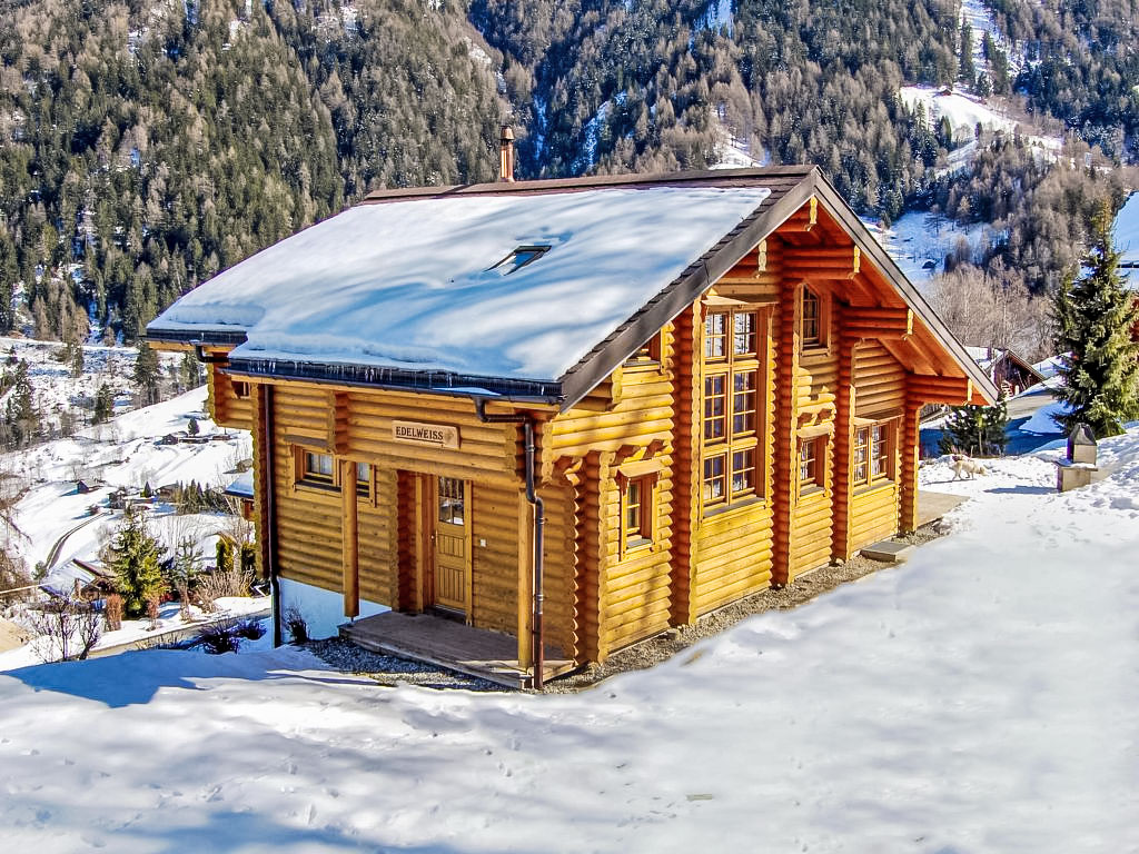"Edelweiss", 7-Zimmer-Chalet 180 m2 auf 3 Stockwerken, Südostlage. Geräumig, geschmackvoll und mit viel Holz eingerichtet: Eingang. Grosses Wohn-/Esszimmer mit Schwedenofen und Kabel-TV (Flachbildschirm). Ausgang zum Balkon. Offene Küche (Backofen, Geschirrspüler, 4 Glaskeramikherd Platten, elektrische Kaffeemaschine, Kapseln für die Kaffeemaschine (Nespresso) extra). Dusche/WC. Unteres Geschoss: 2 Zimmer, jedes Zimmer mit 2 Betten (90 cm, Länge 200 cm). 1 Zimmer mit 1 franz. Bett (160 cm, Länge 200 cm). Dusche, sep. WC, Sauna. Dachgeschoss: 2 Zimmer, jedes Zimmer mit 2 Betten (90 cm, Länge 200 cm). Ausgang zum Balkon und Richtung Osten. 1 Zimmer mit 1 franz. Bett (160 cm, Länge 200 cm). Ausgang zum Balkon. Bad/WC. 2 Balkone, Ostlage, Terrasse 30 m2, Südlage und Ostlage. Terrassenmöbel, Gartengrill, Liegestühle (3). Schöne Panoramasicht auf die Berge. Zur Verfügung: Kinderhochstuhl, Babybett. Internet (Wireless LAN, gratis). Parkplatz (2 Autos), Garage, Höhe 200 cm. Bitte beachten: Nichtraucher-Haus. In der Nähe Spaziergänge, entlang der Bewässerungskanäle.