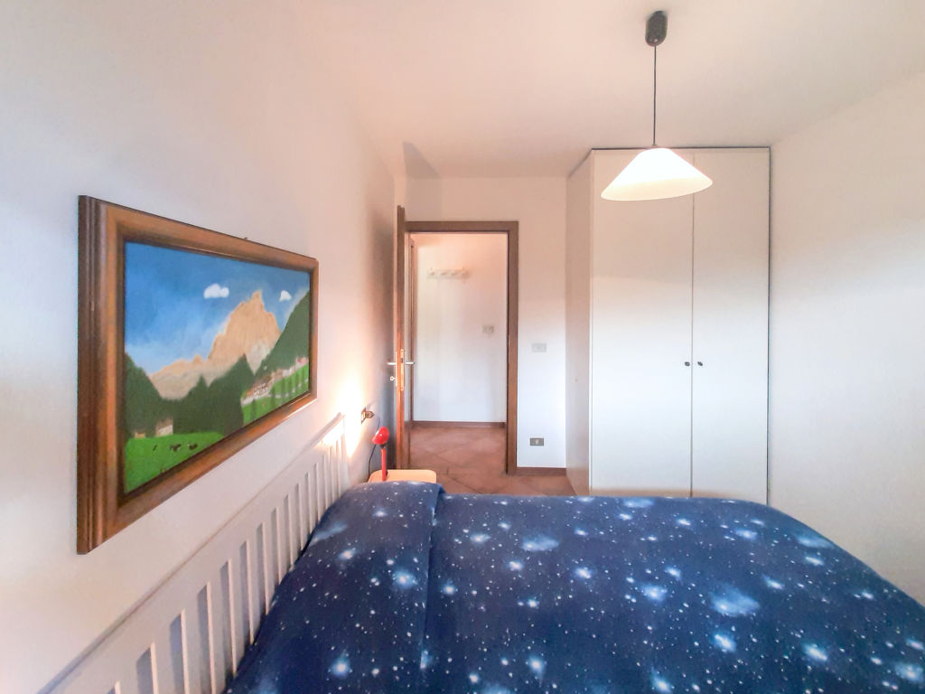 Alba 2 km von Canazei: Kleines Mehrfamilienhaus "Roacia". Ruhige, sonnige Lage am Hang, direkt am Waldrand, 1 km vom Skigebiet. Im Winter bitte Schneeketten mitbringen. Treppenweg bis zum Haus. Öffentliche Parkplätze auf der Strasse. Lebensmittelgeschäft 1 km, Supermarkt 1 km, Restaurant, Bar 500 m. Sessellift 1 km, Skibushaltestelle 100 m. Nahe gelegene Sehenswürdigkeiten: Funivie Belvedere e Ciampac 1 km.