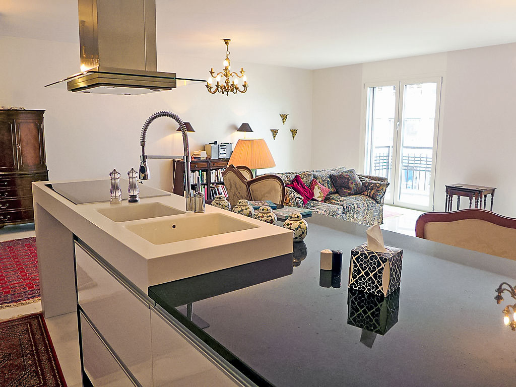 "Haute-Rive", 2-Zimmer-Wohnung 95 m2 im 3. Stock. Objekt geeignet für 2 Erwachsene. Geräumig, komfortabel und stilvoll eingerichtet: Wohn-/Esszimmer mit Esstisch und TV. Ausgang zum Balkon. 1 Zimmer mit 2 Betten. Offene Küche (Backofen, Geschirrspüler, 4 Glaskeramikherd Platten, Tiefkühler, elektrische Kaffeemaschine, Fondue Set (Chinoise)) mit Durchreiche. Dusche/WC, sep. WC. Balkon 9 m2. Balkonmöbel. Schöne Sicht auf den See und die Ortschaft. Zur Verfügung: Waschmaschine, Haartrockner. Internet (Wireless LAN, gratis). Bitte beachten: für Kleinkinder nicht geeignet Wohnung auf Strassenseite. Nichtraucher-Unterkunft.