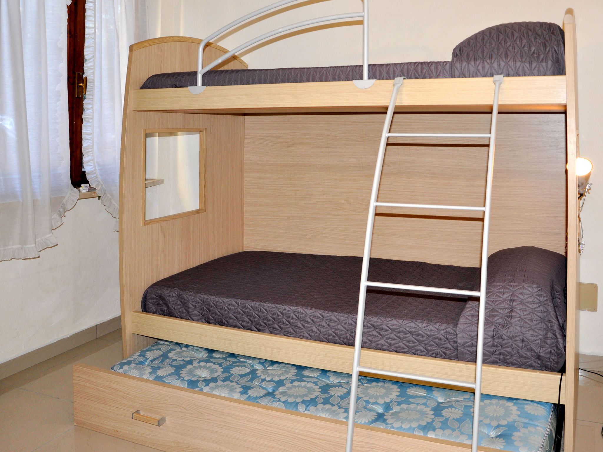 7-Zimmer-Haus, 2 Etagen, ca. 150 m². Erdgeschoss: Wohn-/Schlafraum mit Doppelbettcouch, Essplatz, Küchenzeile (4 Flammen, Backofen, Mikrowelle, Kühl-/Gefrierkombination), Terrassenausgang. Doppelzimmer. Schlafzimmer mit Etagenbett und Ausziehbett. Dusche/WC. Bad/WC. 1. Etage: Wohnraum mit Sitzecke und Kamin (nur Dekoration). Küche (4 Flammen, Backofen, Mikrowelle, Geschirrspüler, Kühl-/Gefrierkombination), Essplatz und Balkonausgang. Doppelzimmer. Zweibettzimmer. Schlafzimmer mit Etagenbett und Ausziehbett. Dusche/WC. Sitzbadewanne/WC. Flexibilität bei der Bettenaufteilung: Es stehen mehr Schlafmöglichkeiten zur Verfügung als die maximal zugelassene Personenzahl, diese darf dennoch nicht überschritten werden. CIR:M0230430066
