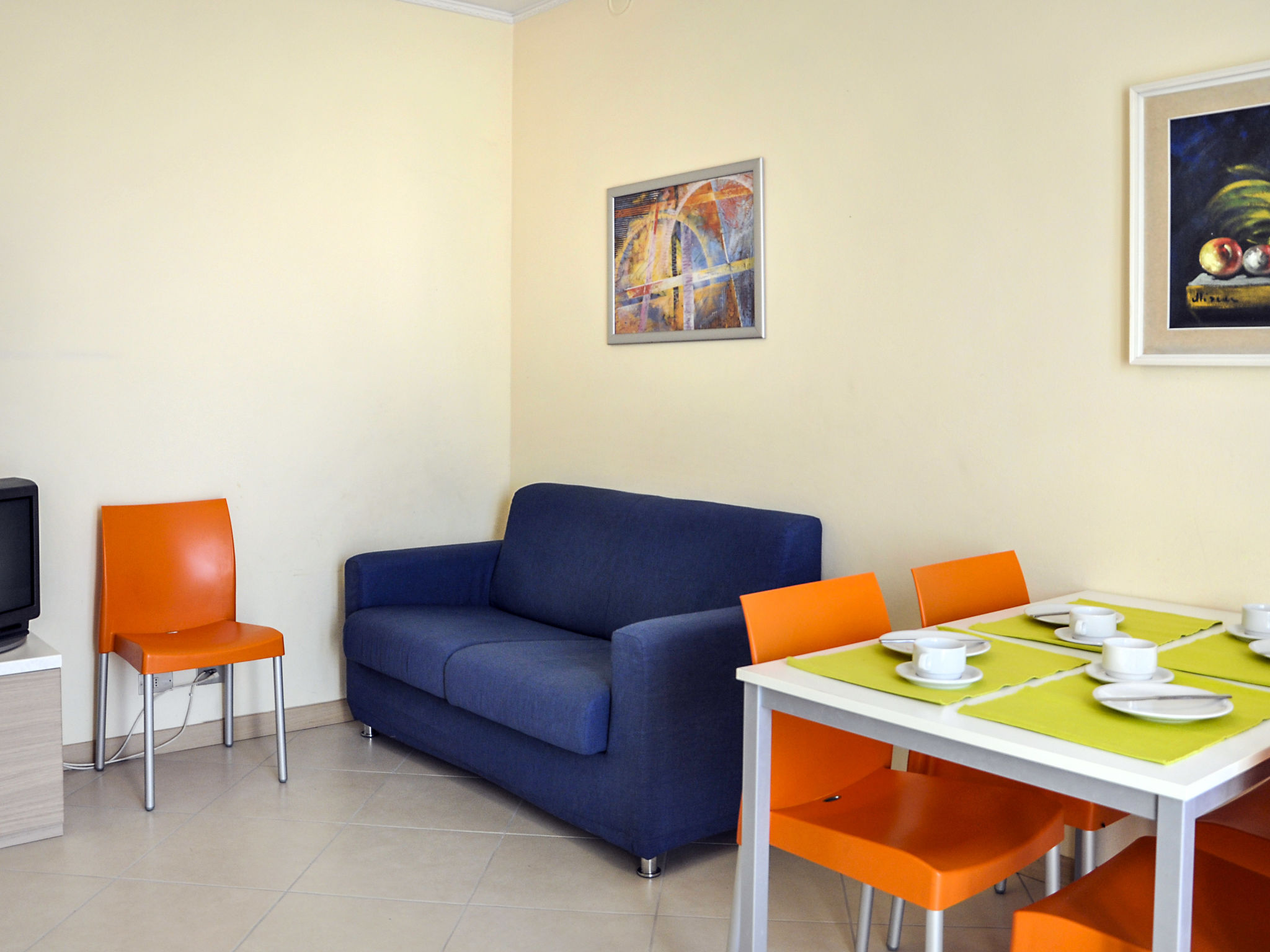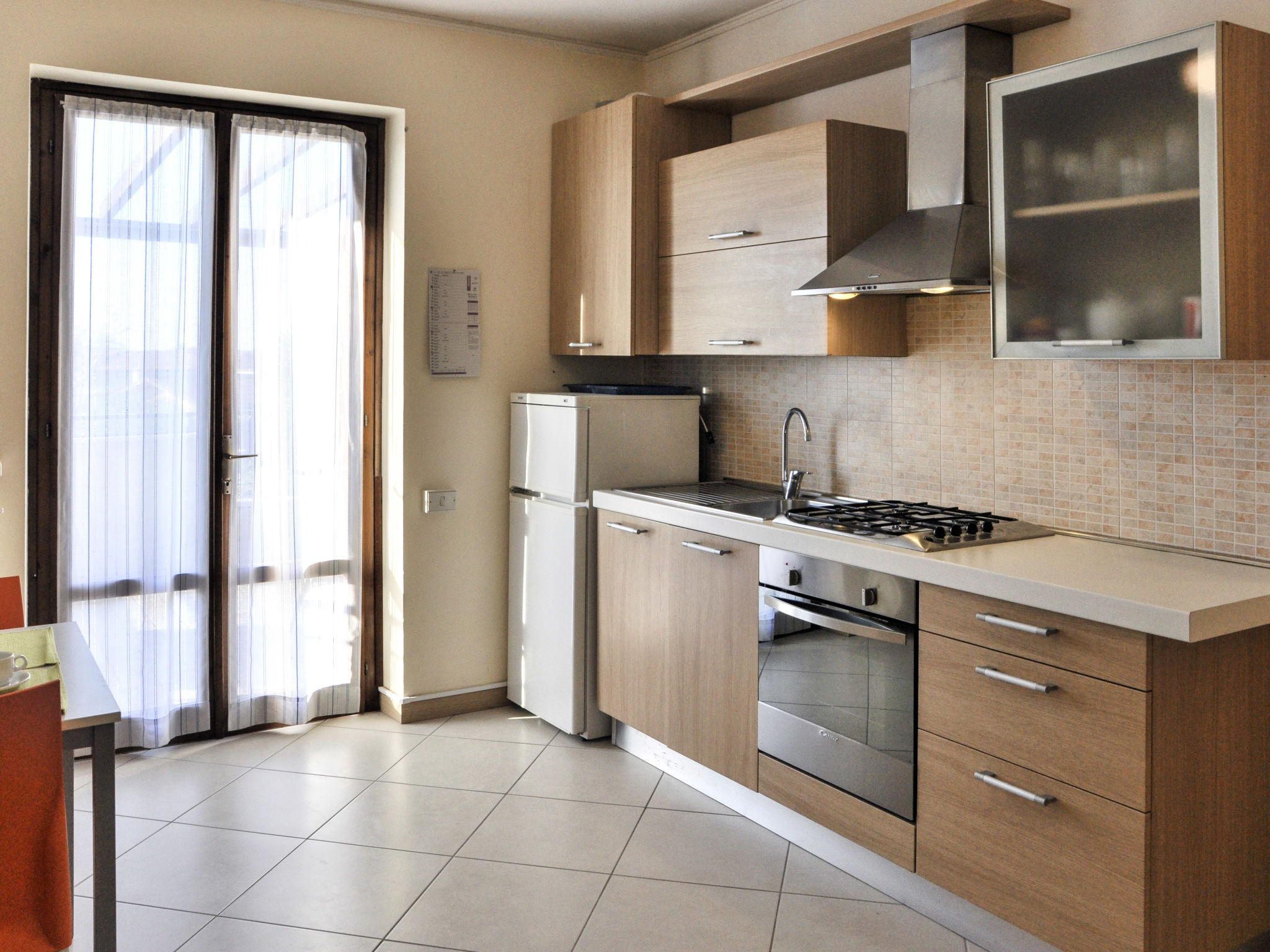 3-Zimmer-Wohnung, 1. Etage, ca. 50 m². Wohnraum. Küche (4 Flammen, Backofen, Kühlschrank) mit Essplatz, Terrassenausgang. Doppelzimmer. Zweibettzimmer. Dusche/WC. M0230430656