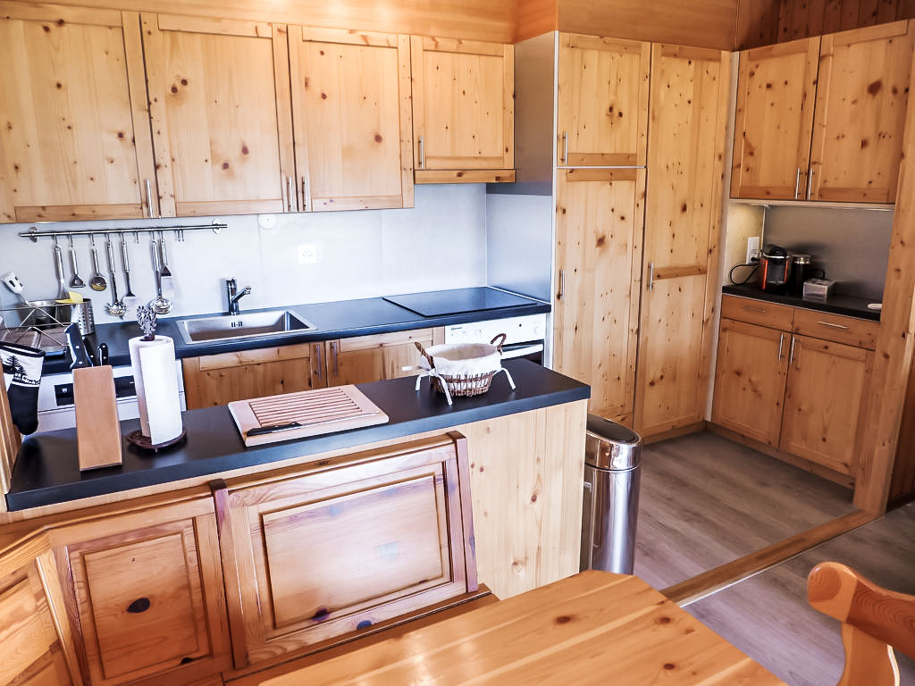 "Diamant 1", 3-Zimmer-Wohnung 70 m2, im Erdgeschoss, Südlage. Renoviert im Jahre 2016, komfortabel und schön eingerichtet: Wohn-/Esszimmer mit Esstisch und TV (Flachbildschirm), DVD. Ausgang zum Garten, Richtung Süden. 1 Kinderzimmer mit 2 x 2 Etagenbetten. 1 Zimmer mit 2 Betten (90 cm, Länge 200 cm). Offene Küche (Backofen, Geschirrspüler, 4 Glaskeramikherd Platten, elektrische Kaffeemaschine, Kapseln für die Kaffeemaschine (Nespresso), Racletteofen, Fondue Set (Käse)). Bad/WC, sep. WC, Doppelwaschbecken. Terrasse 10 m2. Schöne Panoramasicht auf die Berge. Zur Verfügung: Internet (Wireless LAN, gratis). Garage Nr. 1. 2 Haustiere/Hunde erlaubt.