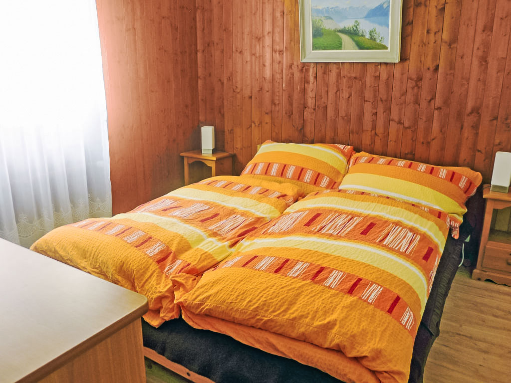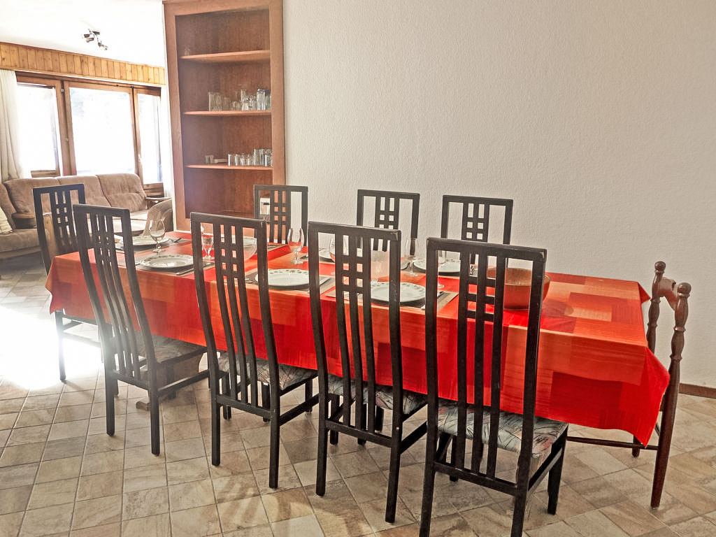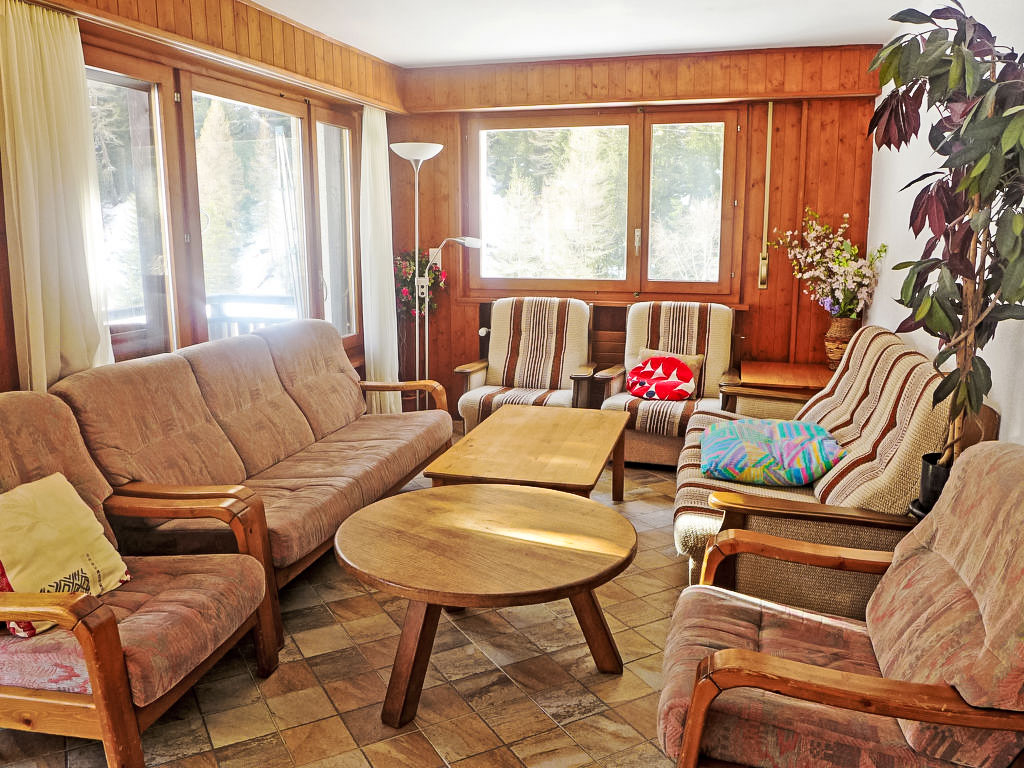 "Résidence Aiglon", 5-Zimmer-Wohnung unteres Geschoss. Komfortabel und gemütlich eingerichtet: Wohn-/Esszimmer mit Esstisch und TV (Flachbildschirm), Stereoanlage und DVD. Ausgang zum Balkon. 1 Zimmer mit 1 franz. Bett und Bad/WC. 1 Zimmer mit 1 Doppelbett. 2 Zimmer, jedes Zimmer mit 2 Betten. Küche (4 Kochplatten, Backofen, Geschirrspüler, Mikrowelle, Tiefkühler, elektrische Kaffeemaschine). Bad/WC, sep. WC. Balkon. Zur Verfügung: Waschmaschine. Internet (Wireless LAN). Parkplatz beim Haus. Bitte beachten: Nichtraucher-Unterkunft.