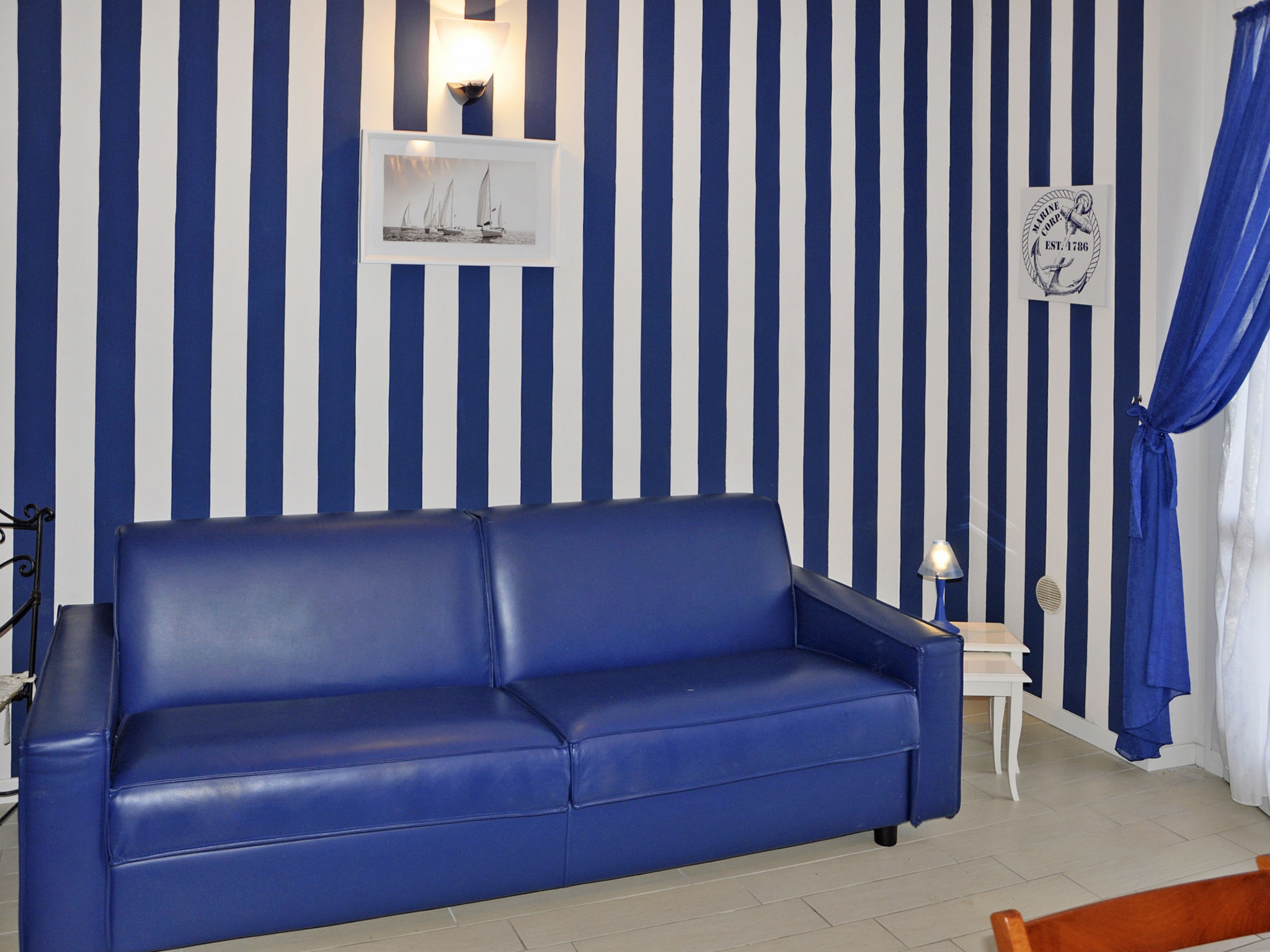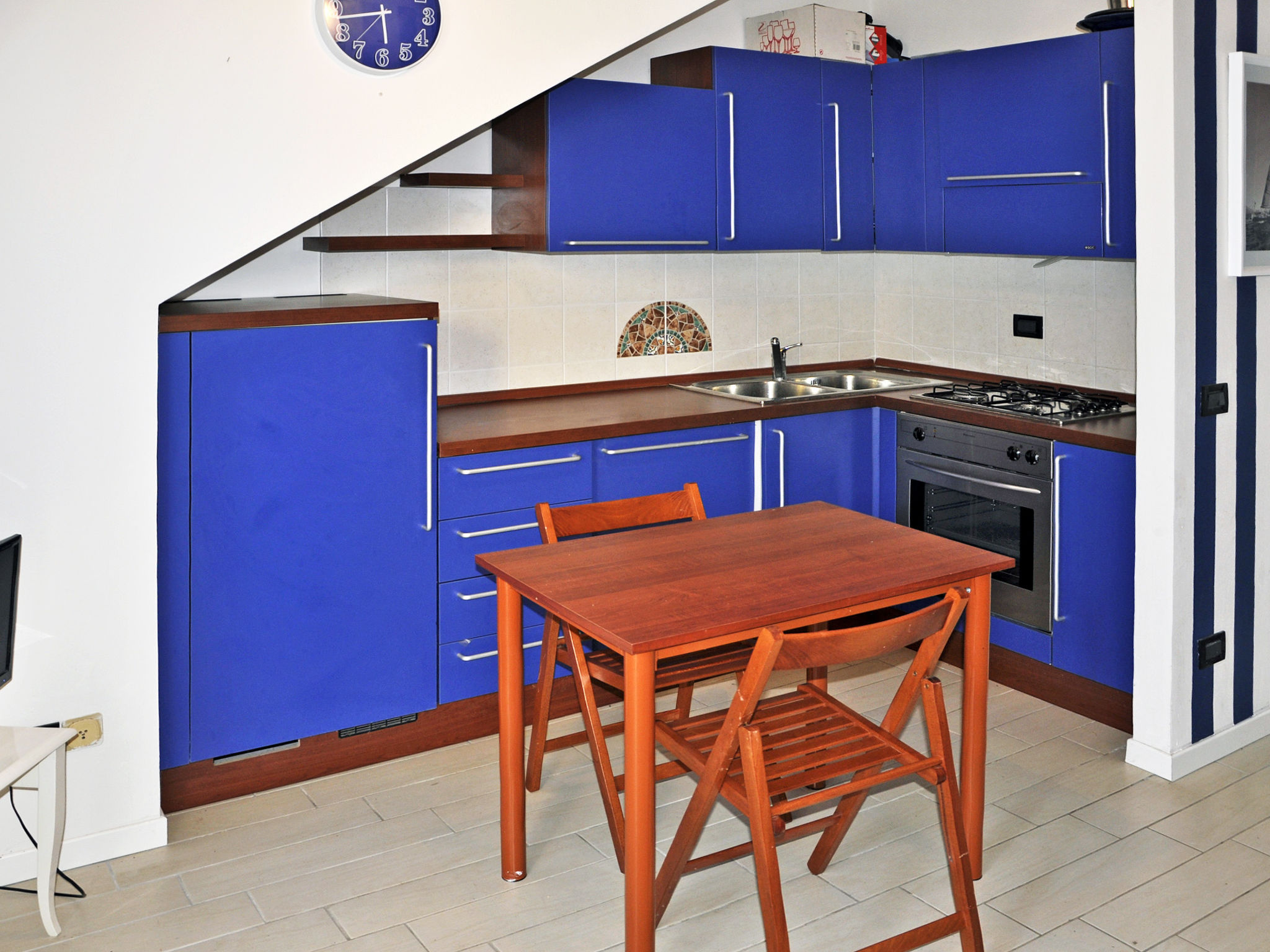 1-Zimmer-Wohnung, Erdgeschoss, ca. 40 m². Wohn-/Schlafraum mit Doppelbettcouch, Einzel- und Ausziehbett, Essplatz, Küchenzeile (4 Flammen, Backofen, Kühlschrank), Terrassenausgang. Dusche/WC. Flexibilität bei der Bettenaufteilung: Es stehen mehr Schlafmöglichkeiten zur Verfügung als die maximal zugelassene Personenzahl, diese darf dennoch nicht überschritten werden.