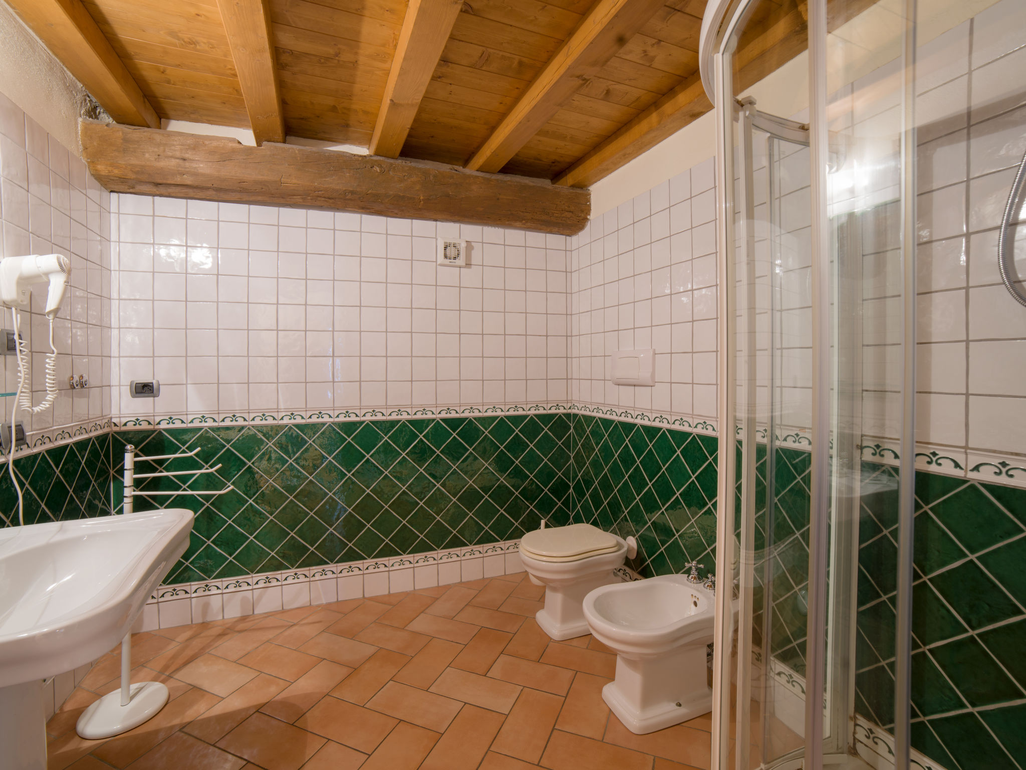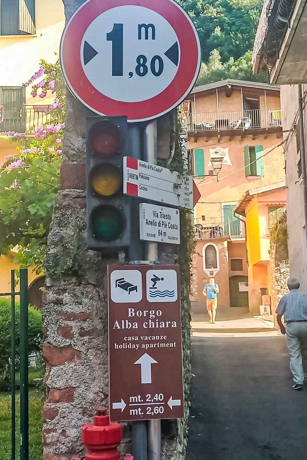 Die Ferienanlage BORGO ALBA CHIARA mit insgesamt 18 Wohnungen steht in Hanglage, auf einem kleinen, terrassierten, komplett abgeschlossenen Grundstück, mit schönem Blick auf Toscolano. Nächstes Einkaufszentrum ca. 500 m. Zum See mit öffentlichem Strand ca. 400 m. Zufahrt ca. 80 m über ansteigende, schmale Straße (2,40-2,60 m breit). Elektrisches Einfahrtstor. 1 Pkw-Stellplatz pro Wohnung auf dem Grundstück. Auf Anfrage weitere Parkplätze (je nach Verfügbarkeit). Das historische Anwesen aus dem 16. Jhdt. wurde mit viel Sorgfalt vollständig restauriert. Im antiken Innenhof und in den Wohnungen wurden teils Natursteinfassaden und schöne Wandmalereien wieder sichtbar gemacht. Die Gartenanlage ist in vier terrassierte Hangabschnitte unterteilt: Auf der oberen Terrasse Liegewiese mit Sonnenliegen. Auf den beiden mittleren Terrassen Pool (ca. 12 x 6 m, gesamte Saion geöffnet, je nach Wetterlage, Massagedüsen, abends Unterwasserbeleuchtung) und über einige Stufen erreichbar, Kinderpool (ca. 6 x 3,5 m, gesamte Saison geöffnet, je nach Wetterlage). Auf der unteren Terrasse kleine Wiese mit einigen Kinderspielgeräten. Gemauerter Grill. Im Innenhof Waschraum mit Waschmaschine und Trockner ( jeweils € 3,50/Durchgang), Bügeleisen/-brett gegen Bezahlung. An der Rezeption Internetzugang (WLAN, inklusive). Aufzug. Drei der Wohnungen sind nur zu Fuß über eine Steintreppe erreichbar. Alle Wohnungen haben einen möblierten Freisitz im Innenhof. Teilweise zusätzlich Balkon. Geschmackvolle Einrichtung. Fliesen in Cotto-Optik, sichtbare Holzbalkendecken oder Gewölbe. Hinweise: Da es sich um ein historisches Gebäude handelt, haben die Wohnungen jeweils unterschiedliche Grundrisse.