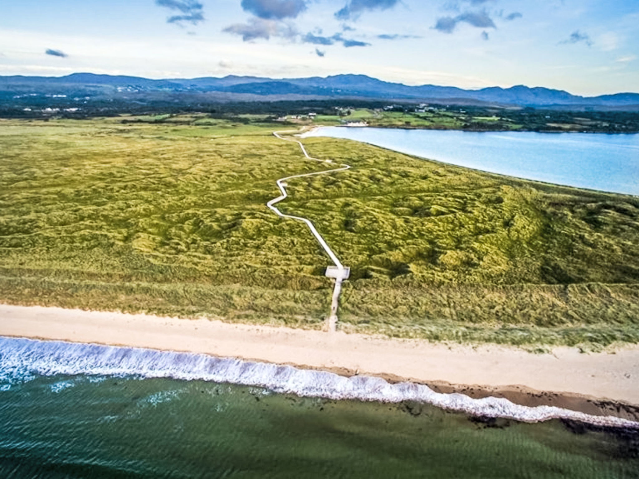 Grosses, komfortables Doppelhaus "Boardwalk". Im Ort, 1.1 km vom Meer, 1.1 km vom Strand. Zur Mitbenutzung: Kinderspielplatz. In der Anlage: Restaurant, Bar. Parkplatz. Einkaufsgeschäft 5 km, Supermarkt 5 km, Sandstrand "Inner Beach" 1.1 km. Golfplatz (36 Loch) 3 km. Nahe gelegene Sehenswürdigkeiten: Tra Mor Beach, Carrigart Pony trekking 5 km, Doe Castle 8 km, Glenveagh National Park 20 km. Bitte beachten: Fahrzeug empfohlen.