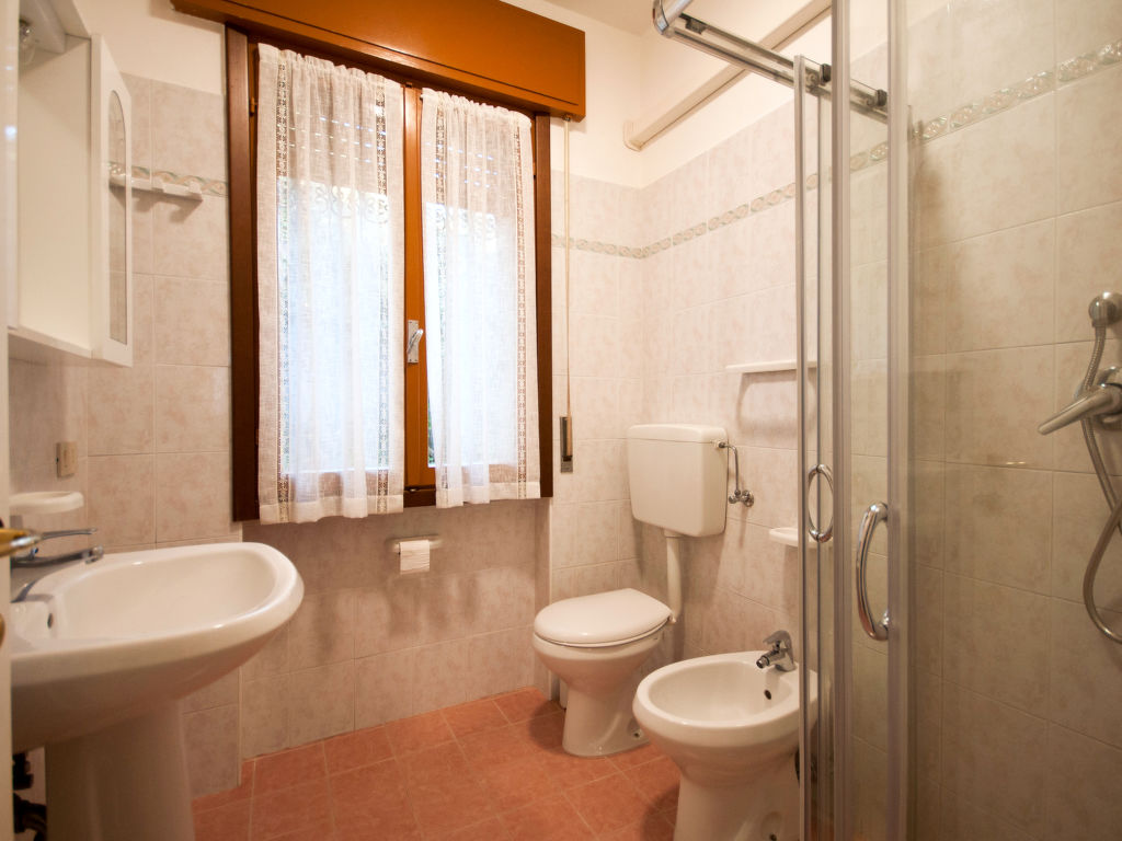 Das Appartementhaus VILLA VITTORIA mit 4 Wohnungen steht auf einem komplett abgeschlossenen, teils mit Pinien bestandenen, naturbelassenen Gartengrundstück im Ortsteil Bibione-Lido del Sole. Zum Strand ca. 200 m. Nächste Geschäfte und Restaurants ca. 100 m. Pro Wohnung 1 überdachter Parkplatz auf dem Grundstück. Jeweils separater Eingang, in die 1. Etage über Außentreppe. Jeweils eigener möblierter Freisitz auf dem gemeinsamen Grundstück. Gemeinschaftsgrill. Feriengerechte Einrichtung. TV. Klimaanlage mit Kühl-/Heizfunktion (nicht in allen Räumen). Strandservice: Bis ca. Ende Mai/ab ca. Anfang September sind 1 Liegestuhl, 1 Sonnenliege und 1 Sonnenschirm pro Wohnung inklusive (ansonsten € 11,50/Tag). Fahrradverleih: Citybike, € 14/Person/Woche (auch mit Helm und/oder Kindersitz, je gratis), gegen Bezahlung am Ort auch E-Bike (Kaution).