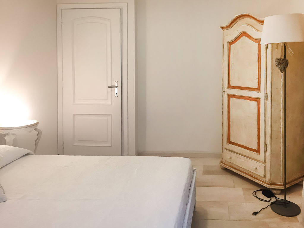 "S'Abba e Sa Pedra (GOA124)", 3-Zimmer-Wohnung 85 m2, im Erdgeschoss. Geschmackvoll eingerichtet: Wohn-/Schlafzimmer mit 1 Doppeldiwanbett, Esstisch, TV und Klimaanlage. Ausgang zur Terrasse. 1 Doppelzimmer mit Dusche/WC. 1 Zimmer mit 1 Bett und 1 x 2 Etagenbetten. Küche (Backofen, Geschirrspüler, 4 Flammen, Mikrowelle, Tiefkühler). Dusche/WC. E-Heizung. Terrasse teilweise überdacht, Garten, Rasen. Terrassenmöbel. Herrliche Sicht auf das Meer. Zur Verfügung: Waschmaschine, Bügeleisen, Babybett, Haartrockner. Parkplatz (überdacht).