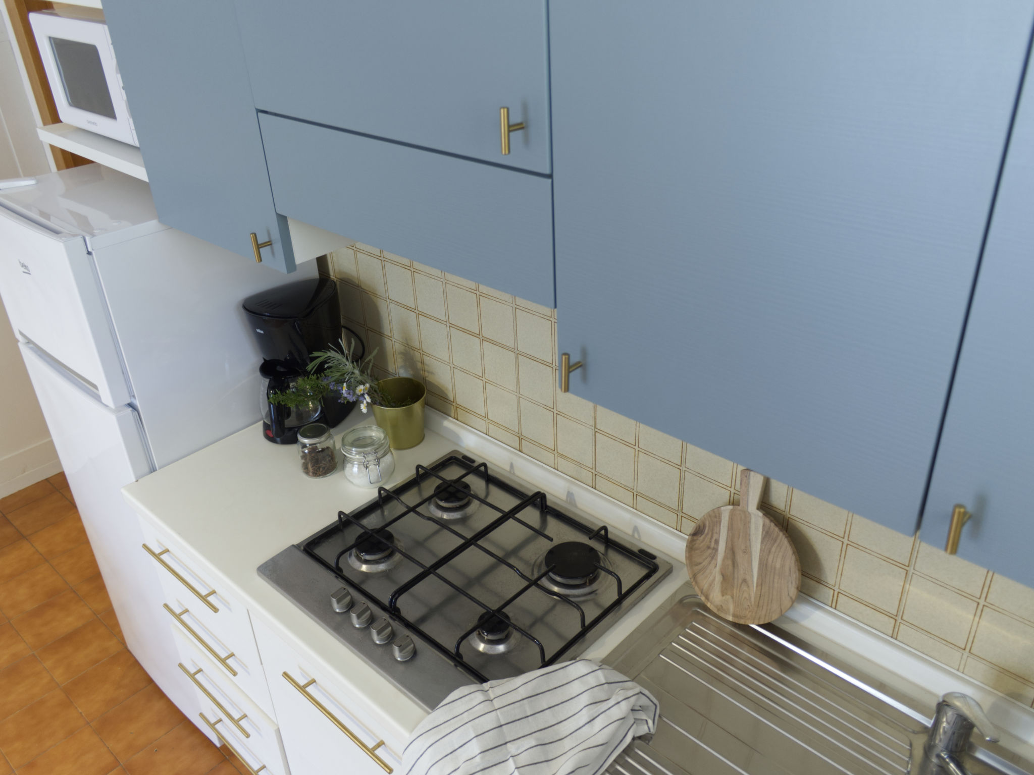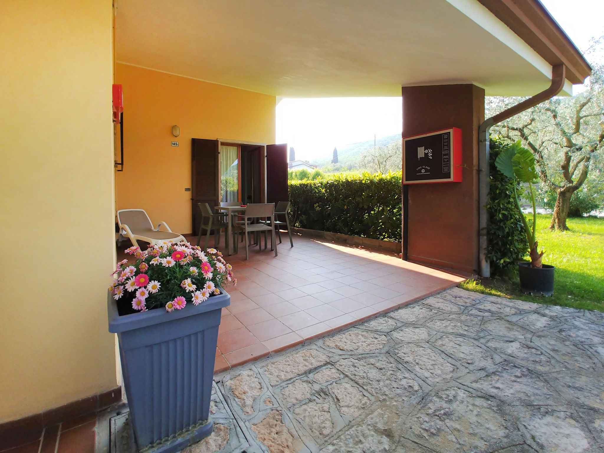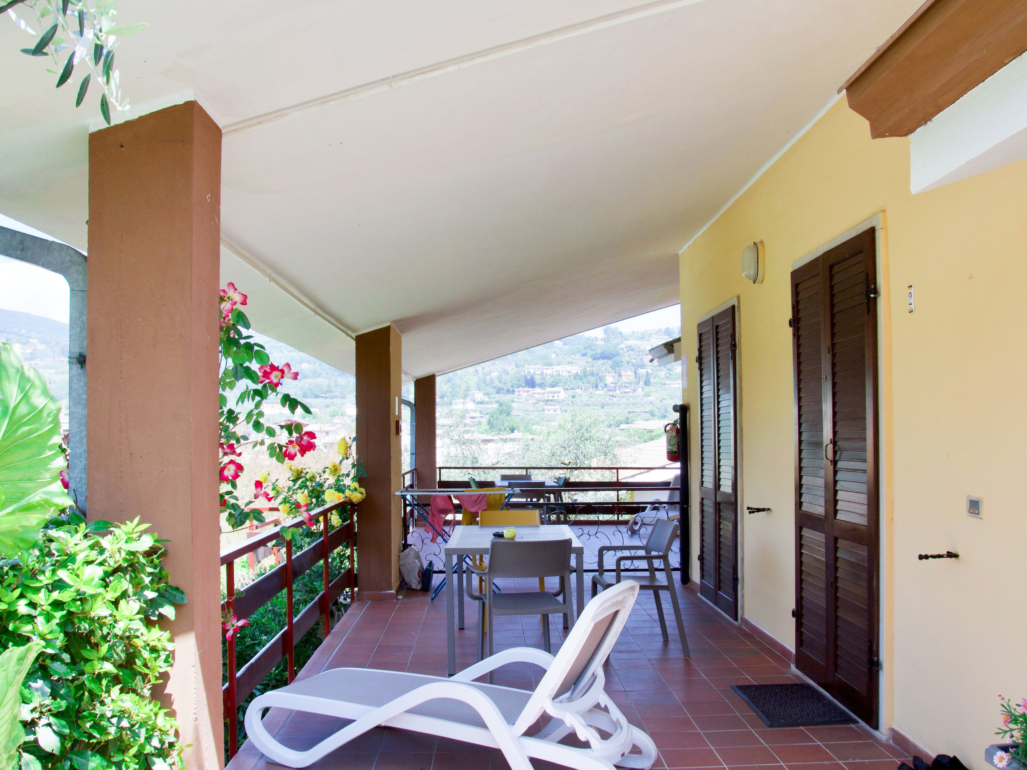 "Superior (GAA214)", 2-Zimmer-Wohnung 50 m2, im erhöhten Erdgeschoss. Teilweise renoviert im Jahre 2021, sehr komfortabel eingerichtet: Wohn-/Schlafzimmer mit 1 Diwanbett, 1 Ausziehbett, Esstisch und Sat-TV. Ausgang zur Terrasse. 1 Doppelzimmer. Offene Küche (Gasherd, 4 Flammen, Toaster, Mikrowelle, elektrische Kaffeemaschine). Dusche/Bidet/WC. G-Heizung. Grosse Terrasse überdacht. Terrassenmöbel, Liegestühle. Sicht auf das Schwimmbad, den Garten und die Landschaft. Zur Verfügung: Safe, Kinderhochstuhl. Internet (Wireless LAN, gratis). Bitte beachten: Nichtraucher-Unterkunft. Eigener Eingang.
