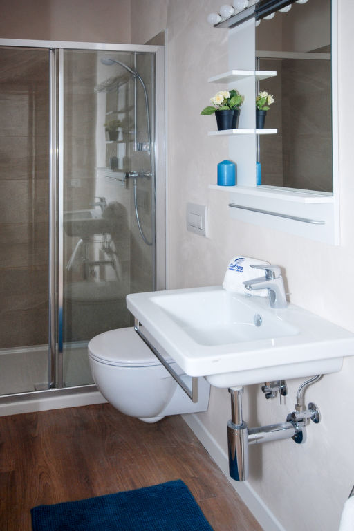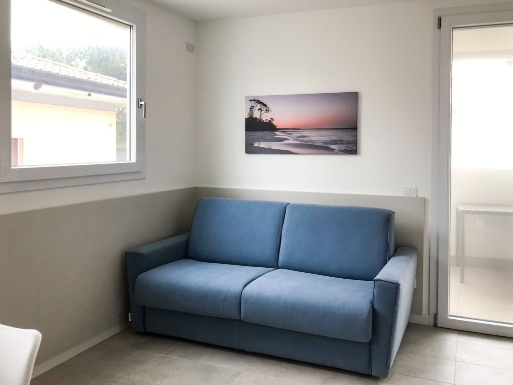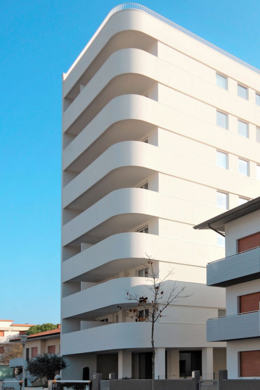 Das 2019 fertiggestellte achtgeschossige Appartementhaus RESIDENCE TORRE BIANCA mit insgesamt 17 Wohnungen steht im Ortsteil Lignano-Sabbiadoro, ca. 400 m vom Strand entfernt. Nächster Supermarkt ca. 350 m, viele Geschäfte und Restaurants in der nahegelegenen Fußgängerzone, ca. 250 m. Pro Wohnung 1 Parkplatz entweder im Erdgeschoss des Hauses oder im Parkhaus in der Nähe (ca. 180 m zu Fuß, ca. 750 m mit dem Auto, jeweils max. Deckenhöhe ca. 2,20 m). Aufzug. Münzwaschmaschine zur gemeinsamen Nutzung. Jeweils großer überdachter Balkon mit Mobiliar. Die Wohnungen sind mit neuen Möbeln modern und ansprechend eingerichtet. Fliesenböden. Gute Ausstattung mit Sat-TV (deutsche Programme), Internetzugang für 2 Endgeräte (WLAN, inklusive). Fliegengitter. Klimaanlage mit Kühl-/Heizfunktion (nicht in den Bädern). Hinweis: Jugendgruppen werden nicht akzeptiert. Strandservice: Von ca. Anfang Mai bis ca. Mitte September sind jeweils 1 Liegestuhl, 1 Sonnenliege und 1 Sonnenschirm pro Wohnung im Mietpreis enthalten. Fahrradverleih: € 16/Person/Woche (Kaution € 50/Rad).