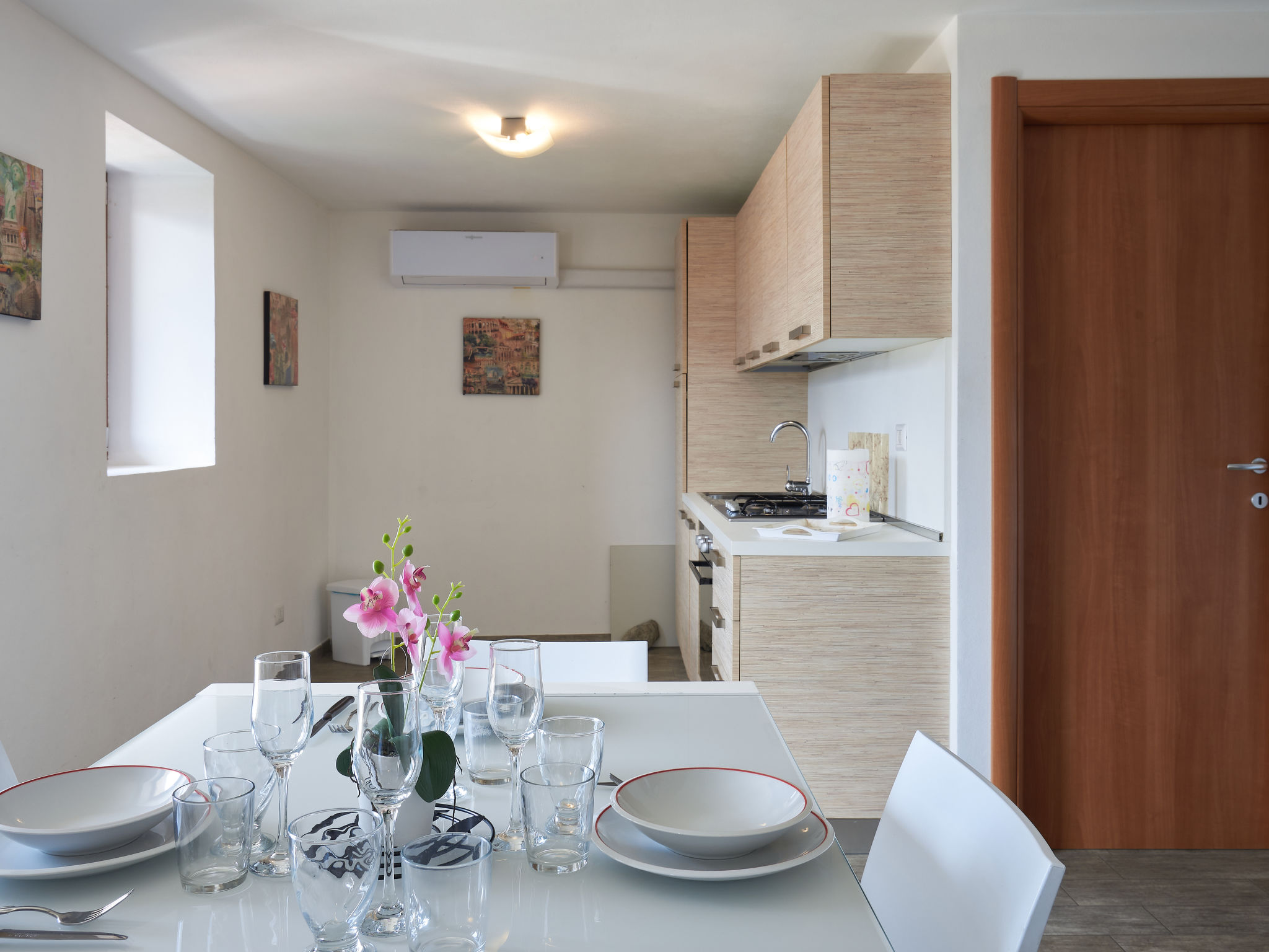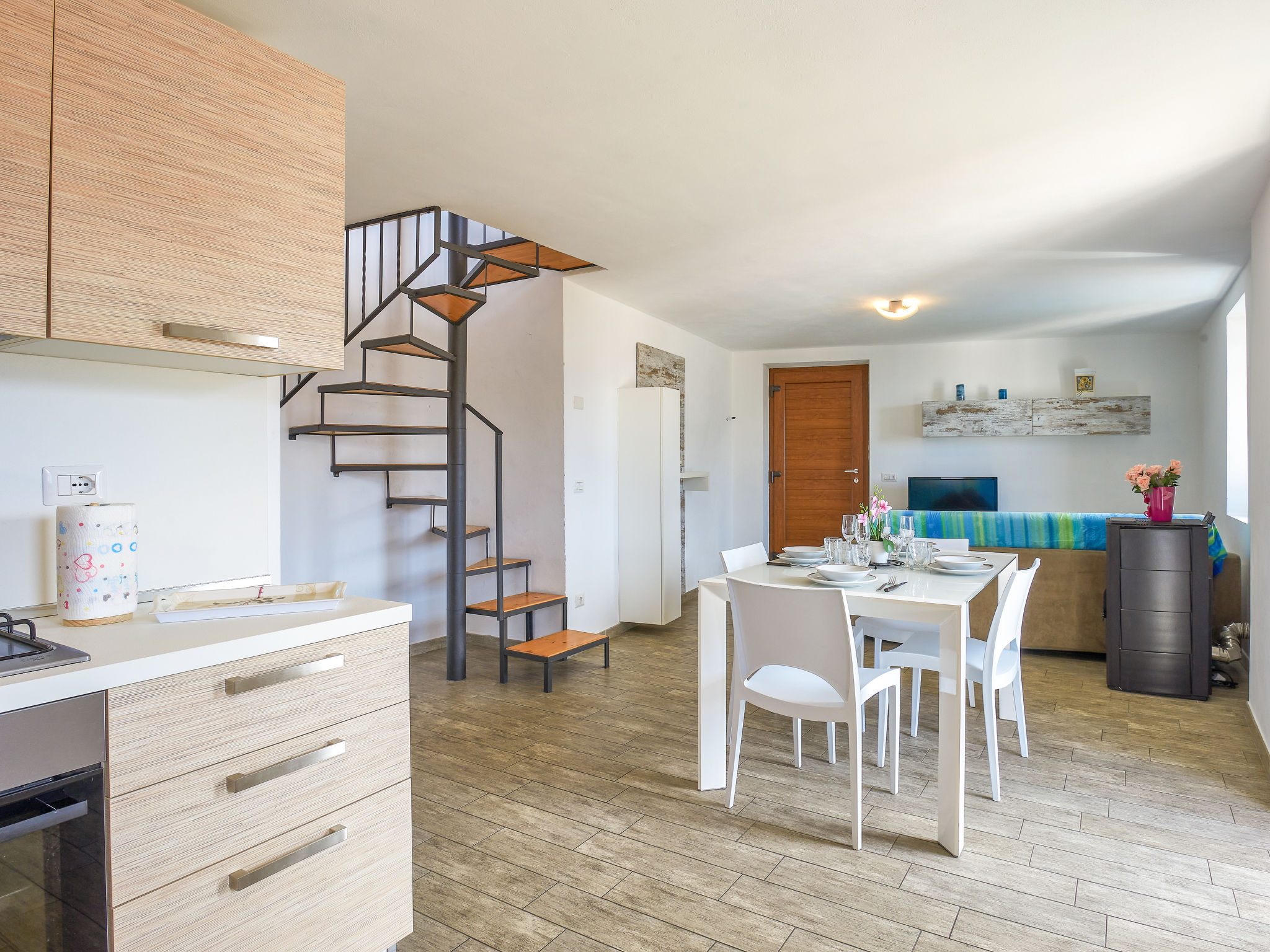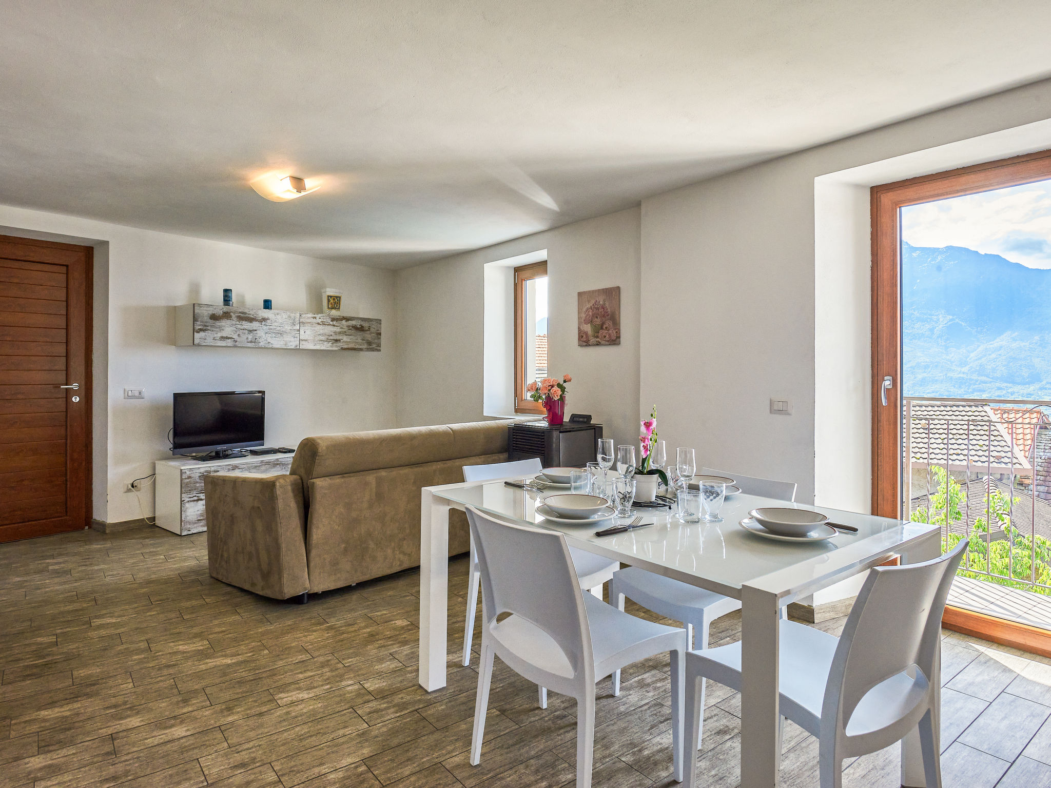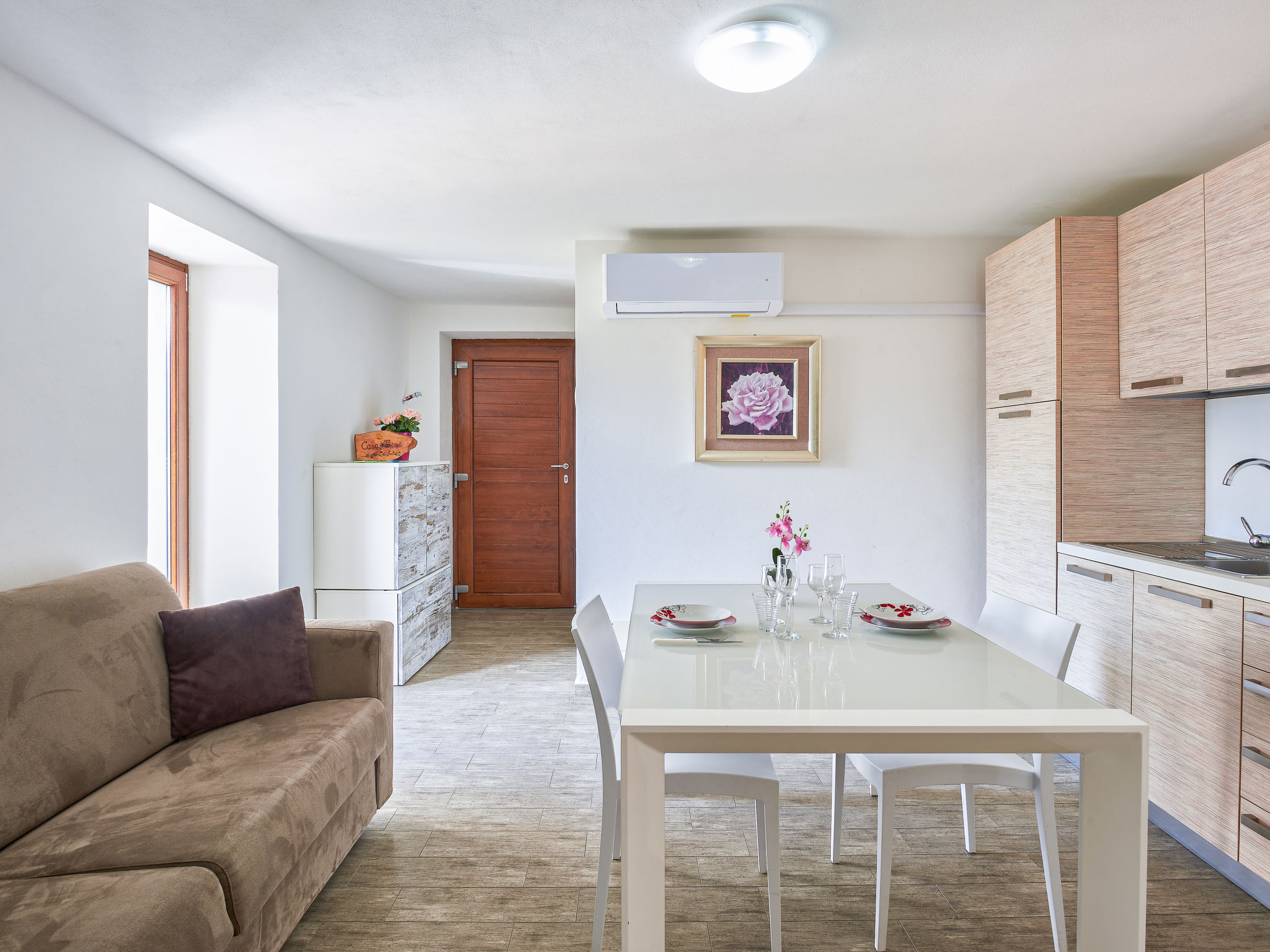 "Rustico Maria (DMA392)", 5-Zimmer-Haus 97 m2 auf 3 Stockwerken, im erhöhten Erdgeschoss, Südlage. Renoviert im Jahre 2012, zweckmässig und modern eingerichtet: Wohn-/Schlafzimmer mit 1 Diwanbett, Esstisch und Sat-TV. Ausgang zur Terrasse. 1 Zimmer mit 1 franz. Bett (160 cm). Offene Küche (Backofen, Geschirrspüler, 4 Flammen, Toaster, Tiefkühler, elektrische Kaffeemaschine). Dusche/WC. E-Heizung, Klimaanlage. Obergeschoss: (Aussentreppe) Wohn-/Schlafzimmer mit 1 Diwanbett, Esstisch, Sat-TV und Heizofen. Ausgang zum Balkon. Offene Küche (Backofen, Geschirrspüler, 4 Flammen, Toaster, Wasserkocher, Tiefkühler, elektrische Kaffeemaschine). Dusche/WC. 2. Obergeschoss: (Wendeltreppe) Durchgangszimmer mit E-Heizung und Klimaanlage. Ausgang zum Balkon. 1 Zimmer mit 1 franz. Bett (160 cm). 1 Zimmer mit 2 Betten. Sep. WC. Heizung nicht in allen Räumen. 2 Balkone. Balkonmöbel. Schöne Sicht auf den See. Zur Verfügung: Kinderhochstuhl, Babybett. Internet (Wireless LAN, gratis). Bitte beachten: 2 Haustiere/Hunde erlaubt. Eigener Eingang. Keine interne Verbindung zwischen den separaten Wohneinheiten. Bei Reservierung dieses Objektes mieten Sie das gesamte Haus. Die angegebenen Einrichtungen zur Mitbenutzung stehen Ihnen damit zur alleinigen Nutzung zur Verfügung. CIR: 013239-CNI-00069