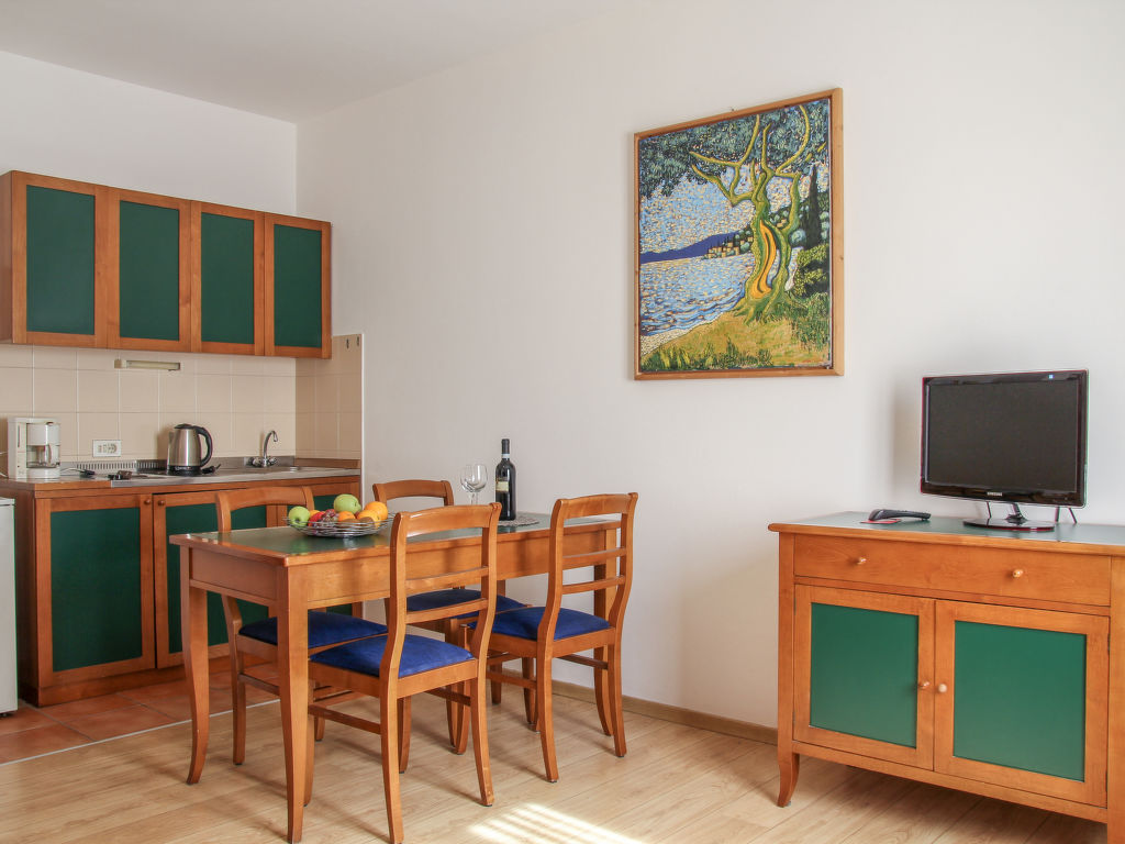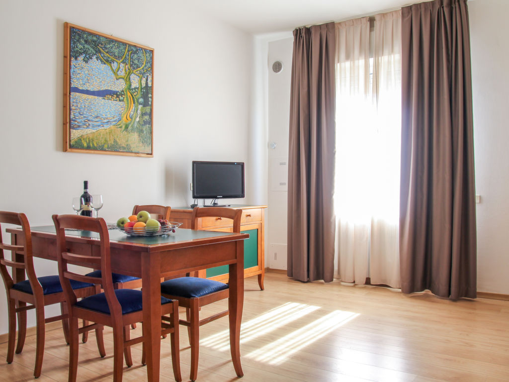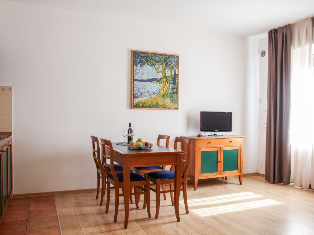 Residenz "Doria", auf 4 Stockwerken, Baujahr 1964, renoviert im Jahre 1991. 24 Wohnungen in der Residenz. 450 m vom Zentrum von Garda, belebte Lage, 450 m vom See. Zur Mitbenutzung: Garten (nicht eingezäunt), Schwimmbad (9 x 4 m, 110 cm tief, saisonale Verfügbarkeit: 15.Jun.-15.Sep.). WC im Poolbereich, Terrasse, Gartenmöbel. Im Hause: Empfang, Bar, Frühstücksraum, Aufenthaltsraum, Wireless LAN, Fitnessraum, Fahrstuhl, Dachterrasse. Frühstück möglich (extra). Parkplatz (beschränkte Anzahl) auf dem Grundstück, Gemeinschaftsgarage (extra). Einkaufsgeschäft 300 m, Einkaufszentrum 9 km, Fußgängerzone 350 m, Bahnstation "Peschiera del Garda" 18 km, Fähre "Ferry Terminal Garda" 650 m, Kieselstrand 900 m, Thermalbad "Gardacqua" 1.5 km. Nahe gelegene Sehenswürdigkeiten: Verona 35 km, Mantova 60 km.