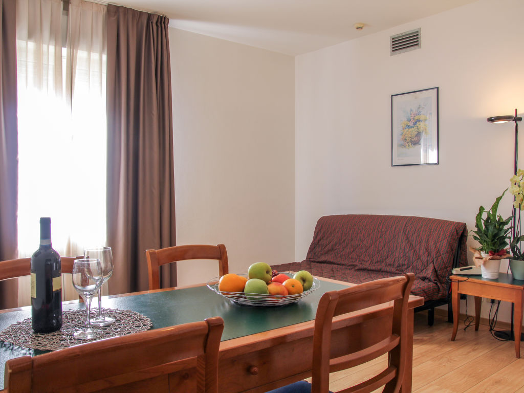 "GAA143", 2-Zimmer-Wohnung 45 m2, im Obergeschoss. Komfortabel eingerichtet: Wohnzimmer mit 1 Doppeldiwanbett, Esstisch und Sat-TV. 1 Doppelzimmer. Offene Küche (2 Kochplatten, elektrische Kaffeemaschine). Dusche/Bidet/WC. G-Heizung, Klimaanlage (extra). Kleiner Balkon. Balkonmöbel. Zur Verfügung: Safe (extra). Internet (Wireless LAN, gratis). Parkplatz (1 Auto).