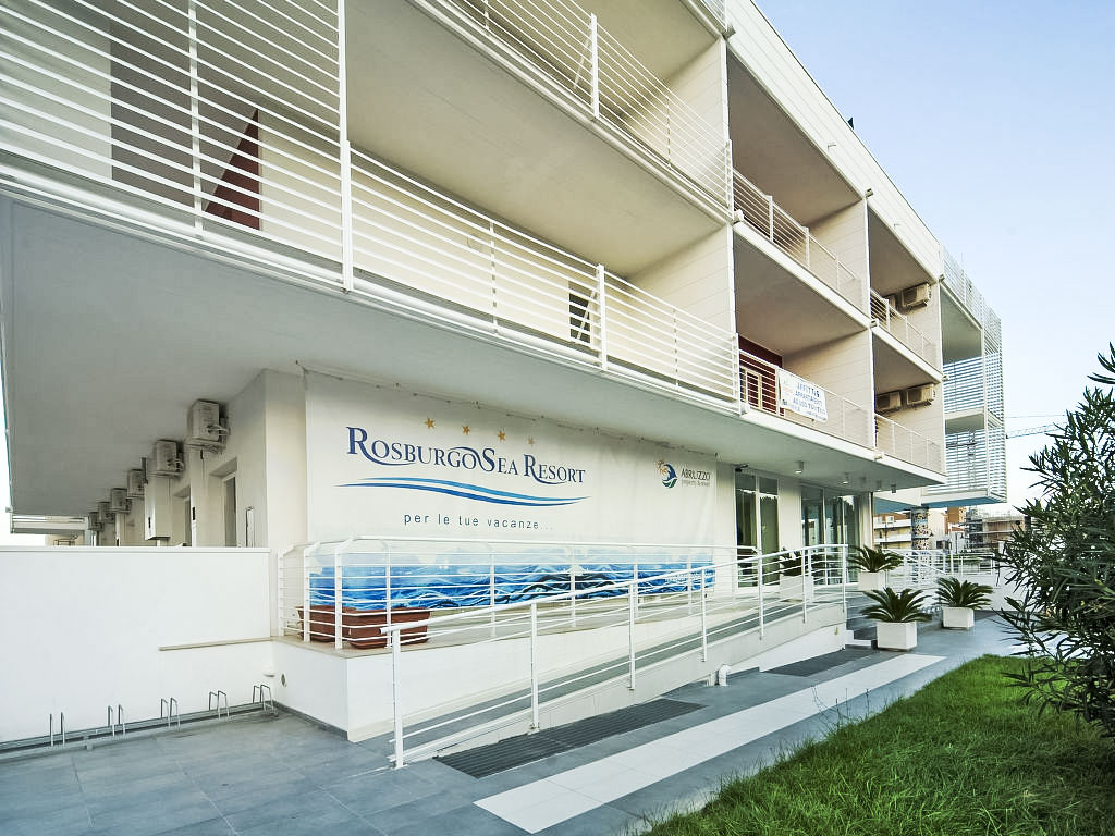 Feriensiedlung "Rosburgo", auf 4 Stockwerken. 42 Wohnungen in der Residenz. 1 km vom Zentrum von Roseto degli Abruzzi, 100 m vom Meer, 100 m vom Strand, direkter Zugang zum Strand. Zur Mitbenutzung: Schwimmbad (6 x 7 m, 145 cm tief, saisonale Verfügbarkeit: 15.Jun.-16.Sep. Öffnungszeiten Schwimmbad: 10:30-12:30 und 16:30-19:00). Privatstrand. In der Anlage: Bar, Aufenthaltsraum, Wireless LAN, Fahrstuhl, Waschmaschine (zur Mitbenutzung, extra). Zufahrt bis zum Haus. Parkplatz (überdacht, beschränkte Anzahl, extra). Einkaufsgeschäft 500 m, Einkaufszentrum 1 km, Restaurant, Bar 100 m, Bahnstation "Roseto" 2 km, Sandstrand 100 m. Bitte beachten: Eisenbahnlinie in der Nähe. Das Foto ist nur ein Hausbeispiel.