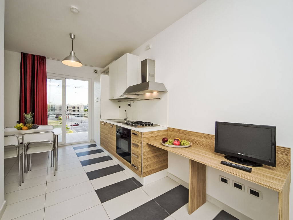 "vista mare", 2-Zimmer-Wohnung 35 m2. Wohn-/Esszimmer mit 1 Doppeldiwanbett (140 cm, Länge 190 cm), TV. 1 Doppelzimmer. Kochnische (4 Kochplatten, Backofen, Tiefkühler). Dusche/Bidet/WC. Klimaanlage (extra). Terrasse. Terrassenmöbel. Sicht auf das Meer. Maximal 1 kleines Haustier/Hund erlaubt. CIR:067037RTA0009