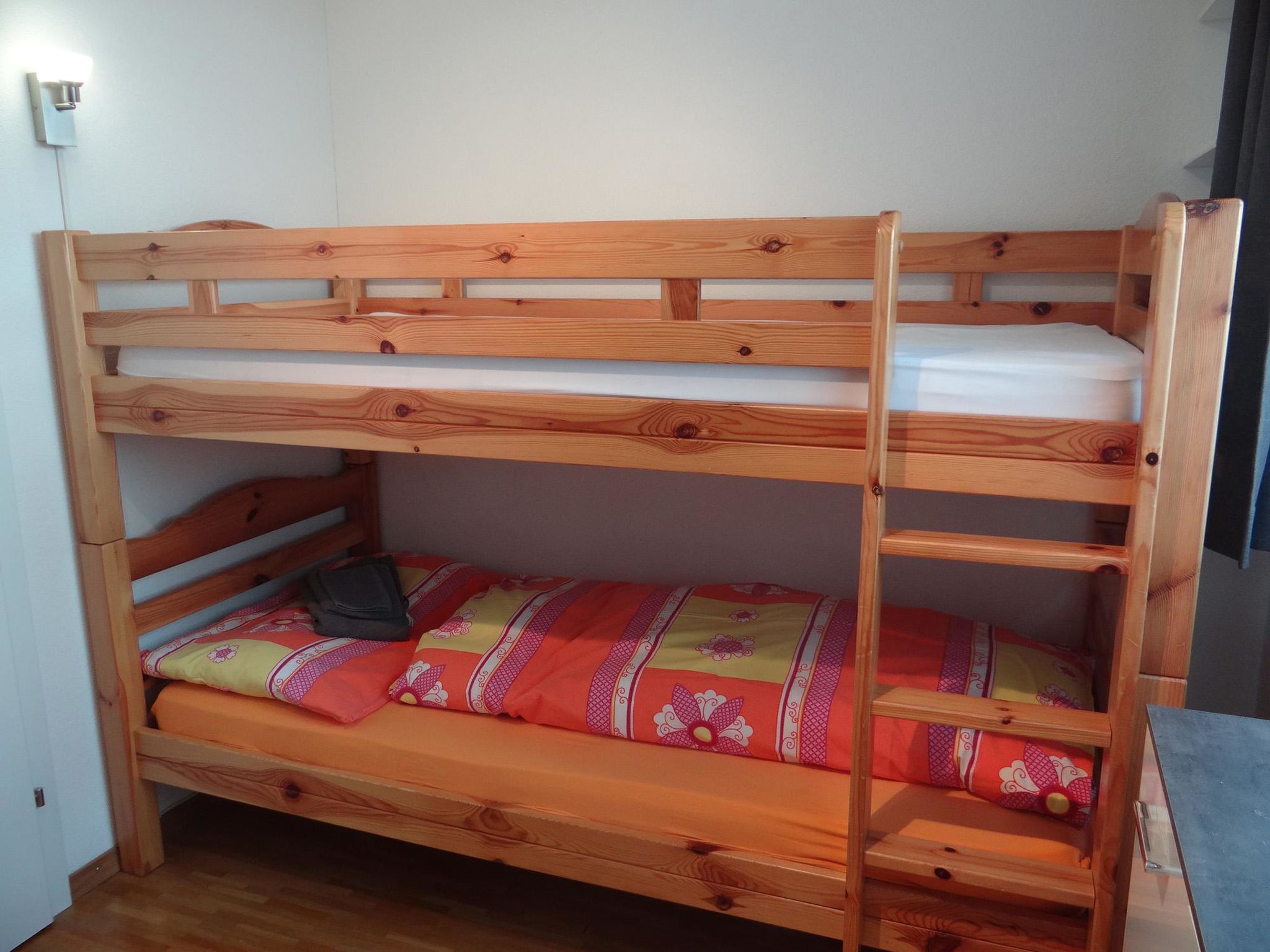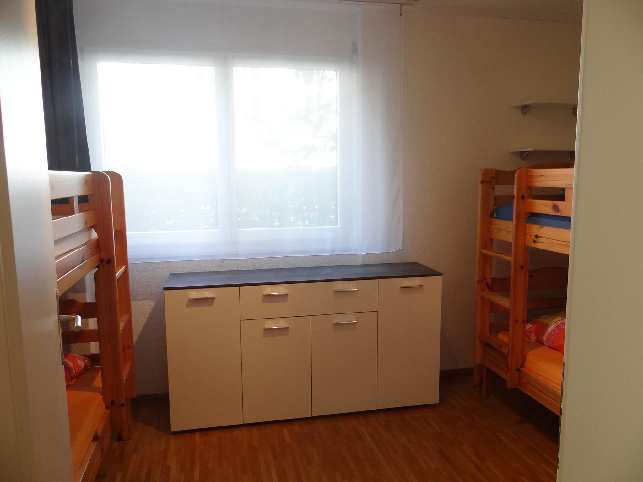 3-Zimmerwohnung im Parterre: Wohnzimmer, Küche, 1 Zimmer mit 1 Doppelbett, 1 Zimmer mit 2x2 Kajütenbetten, Bad/Dusche/WC.