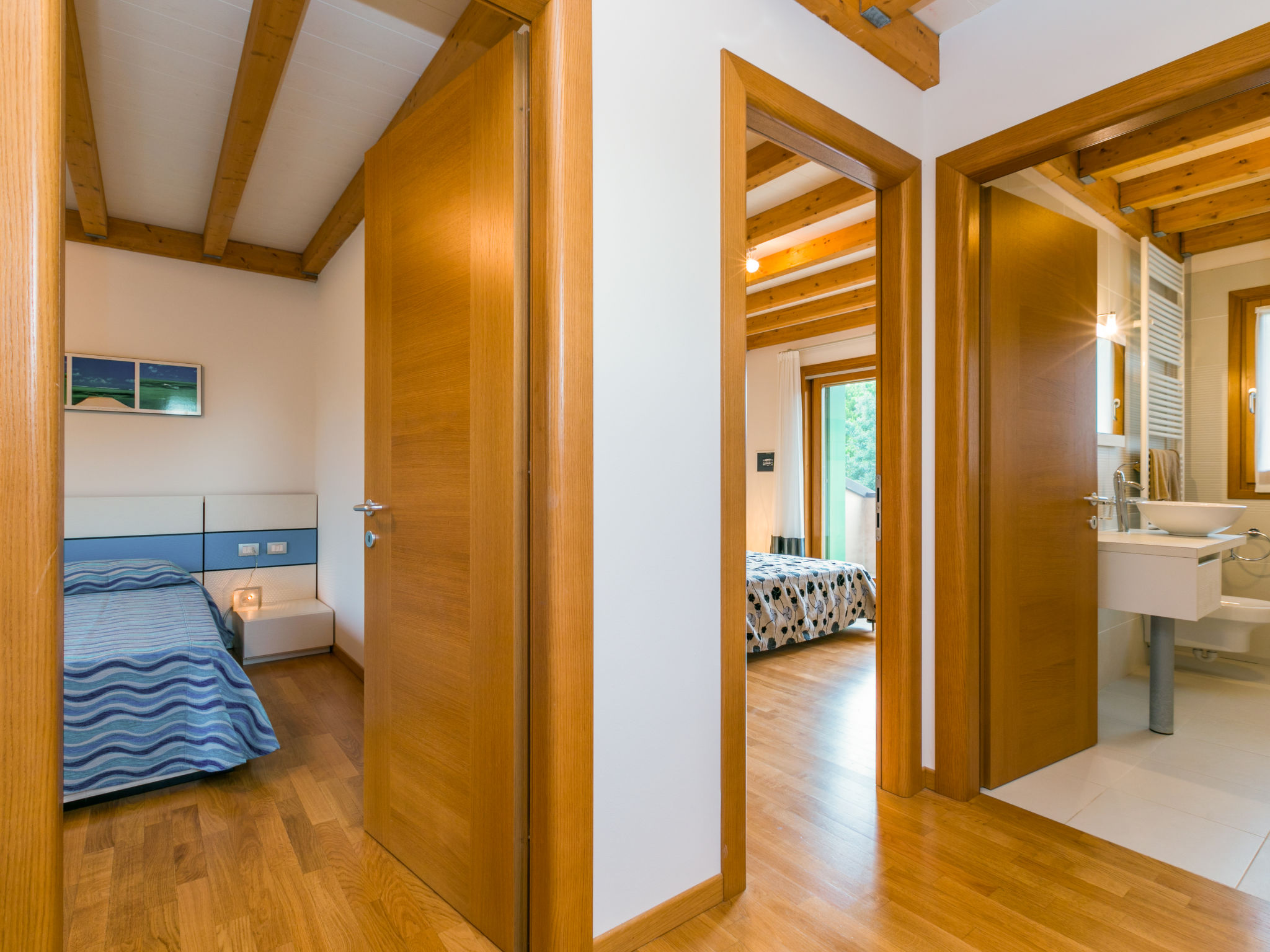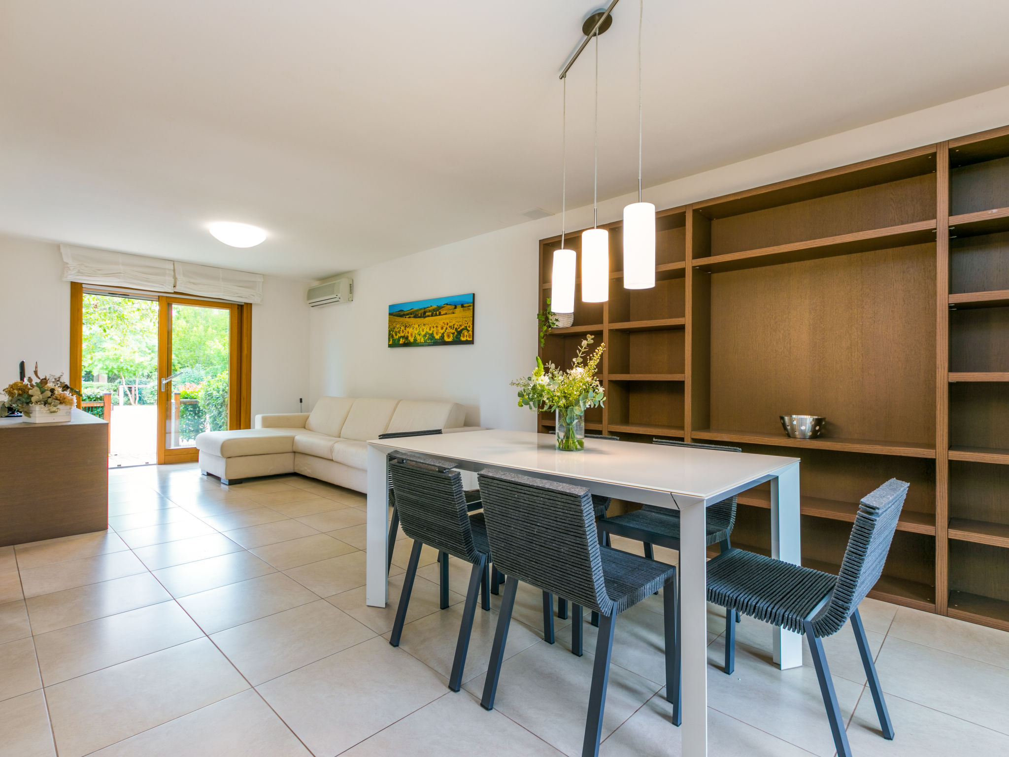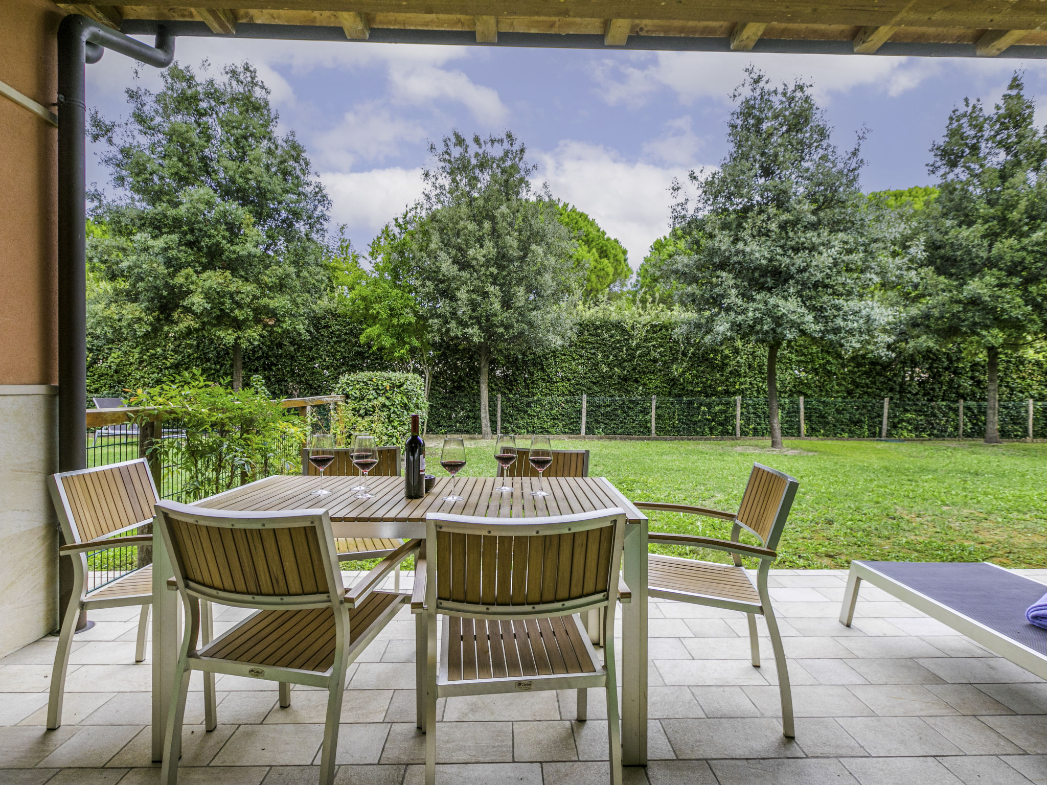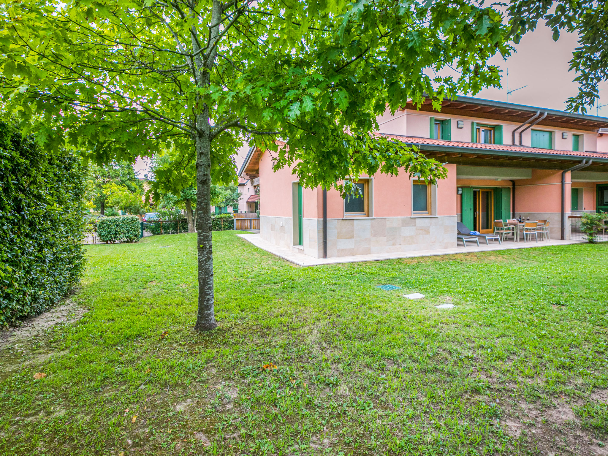 Die sehr gepflegte Ferienanlage GREEN VILLAGE RESORT liegt auf einem ca. 4 ha großen, hübsch angelegten Grundstück im Ortsteil Lignano-Riviera, neben dem Golfplatz (INTER CHALET-Gäste erhalten 20% Ermäßigung auf die Green-Fee) und in der Nähe des Jachthafens Marina Punta Verde. Zum Strand 1,8 km (Beach-Shuttle vom 15.05.-15.09. auf Anfrage). Zur Ortsmitte Riviera 1,5 km. Die Anlage setzt sich zusammen aus einem Hotel (17 Zimmer), mehreren Bungalows mit Suiten und Wohnungen (teils auch LIG 201), die sich um den Pool gruppieren sowie unseren Ferienhäusern und Wohnungen (LIG 201-205), die sich seitlich des Hotels befinden. In der Anlage: Rezeption, Bar, Restaurant (geöffnet 14.05.-25.09., Frühstück und Halbpension auf Wunsch, Buchung und Bezahlung jeweils am Ort), Wäscherei mit Münzwaschmaschinen und -trockner, im öffentlichen Bereich der Anlage Internetzugang (WLAN, inklusive). Sport- und Freizeitangebot: Sehr schön angelegte Poollandschaft (ca. 690 m², mit geothermischem Wasser, ca. 14.05-25.09.) mit Sonnenliegen und Sonnenschirmen. Animation und Miniclub (ab 3 Jahre, jeweils ca. 04.06.-16.09.). Verleih von Nordic-Walking-Stöcken (kostenlos, solange Vorrat reicht) und Fahrrädern (€ 16/Woche, auch für Kinder oder mit Kindersitz). Trimm-Pfad und Kinderspielplatz im angrenzenden, ca. 1,2 ha großen Pinienwald. Kleines Wellness-Center mit Sauna, türkischem Dampfbad und Fitnessraum mit Geräten, beheiztes Sprudelbad (jeweils inklusive). Für LIG 201 jeweils 1 Parkplatz auf dem Grundstück oder innerhalb der Anlage, für LIG 202/203 jeweils 1 überdachter Parkplatz, LIG 204 mit Garage, LIG 205 mit Doppelgarage (Stellplätze hintereinander). Zusätzliche Stellplätze innerhalb der Anlage oder auf Parkplatz vor der Anlage. Die Wohnungen LIG 201 haben entweder 2 überdachte Terrassen mit Mobiliar und hübsch angelegtem Gartenanteil mit 2 Sonnenliegen oder 2 überdachte Balkone mit Mobiliar und 2 Sonnenliegen. Die Reihenhäuser LIG 202 haben ein hübsch angelegtes, komplett abgeschlossenes Gartengrundstück und eine Terrasse mit Mobiliar und 2 Sonnenliegen und Balkon. Die Zweifamilienhäuser LIG 203/204 haben einen hübschen, komplett abgeschlossenen Gartenanteil, Portico mit Mobiliar und 2 Sonnenliegen sowie 2 Balkone. Die Zweifamilienhäuser LIG 205 haben einen hübschen, komplett umzäunten Gartenanteil sowie eine Terrasse und zwei Balkone, davon einer mit Mobiliar (1 Tisch/6 Stühle). Jeweils gute Einrichtung. Sat-TV (deutsche Programme), Internetzugang (WLAN, inklusive). Safe. Klimaanlage mit Kühl-/Heizfunktion (nicht in allen Räumen). Strandservice: Von ca. 15.05.-15.09. sind jeweils 2 Sonnenliegen und 1 Sonnenschirm pro Wohnung/Haus im Mietpreis enthalten. Weinprobe: Von ca. April bis Oktober pro Haus 1 Weinprobe in Bibione im Mietpreis enthalten. Hinweis: Innerhalb der Zeit von 26.09.2021-14.05.2022 stehen nur die Ferienhäuser und Ferienwohnungen zur Verfügung. Alle anderen Einrichtungen bleiben geschlossen.
