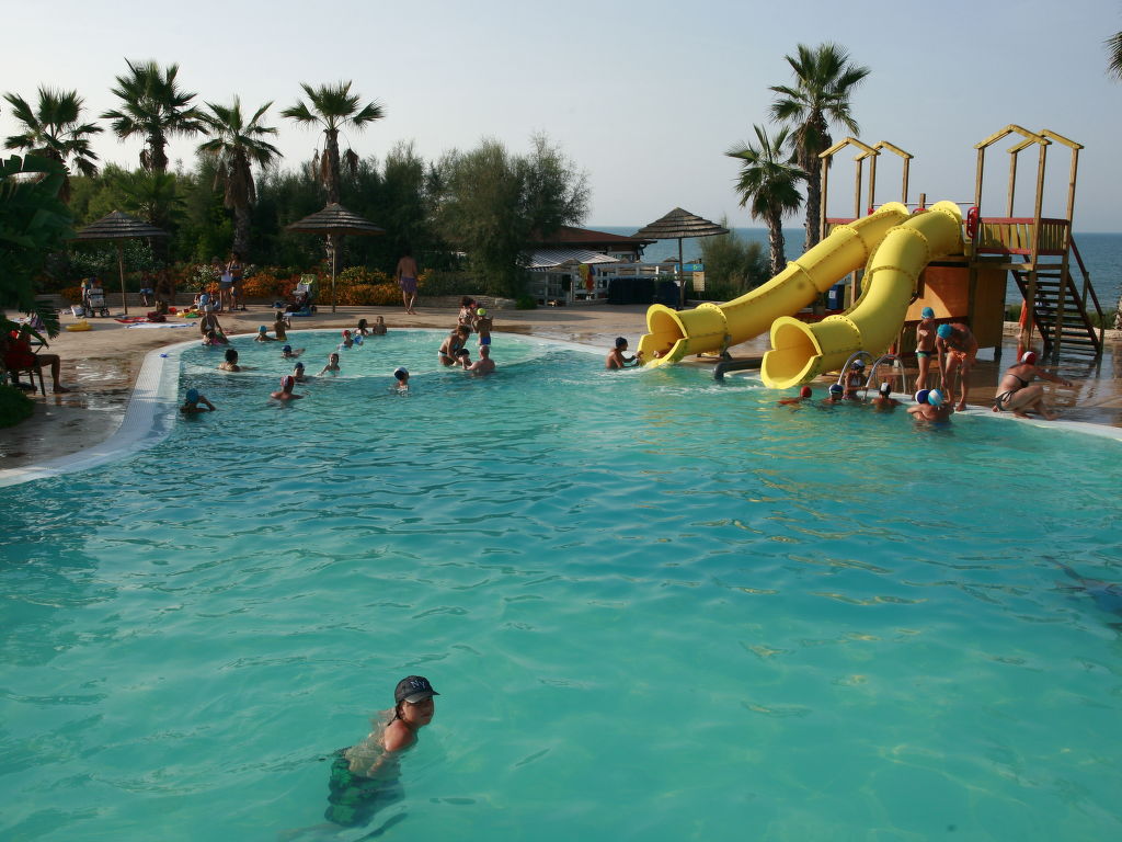 Grosses, kinderfreundliches Feriendorf "Internazionale Manacore". 10 km vom Zentrum von Peschici, 15 km vom Zentrum von Vieste, am Hang, 500 m vom Meer. Zur Mitbenutzung: Grundstück 25 ha mit Bäumen, Schwimmbad nierenförmig (900 m2, saisonale Verfügbarkeit: 21.Mai.-30.Sep.). Kinderbecken, Tennis (extra), Tischtennis, Basketball, Boccia (extra), Beachvolleyball. In der Anlage: Empfang, Restaurant, Bar, Bistro, Wireless LAN, Einkaufsmöglichkeit, Waschmaschine (extra) (zur Mitbenutzung). Parkplatz auf dem Grundstück. Sandstrand 500 m. Bitte beachten: Animation. Kinderbetreuung in der Saison. Jugendgruppen nur auf Anfrage. Be- und Entladen am Ferienhaus möglich. Badekappenpflicht.