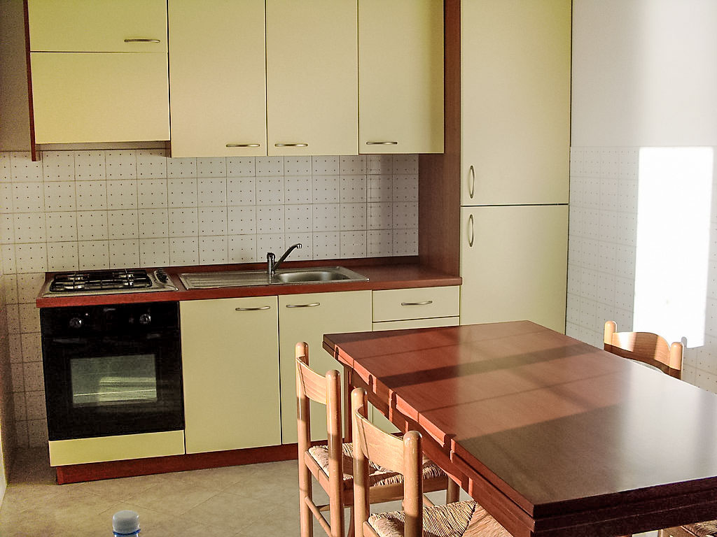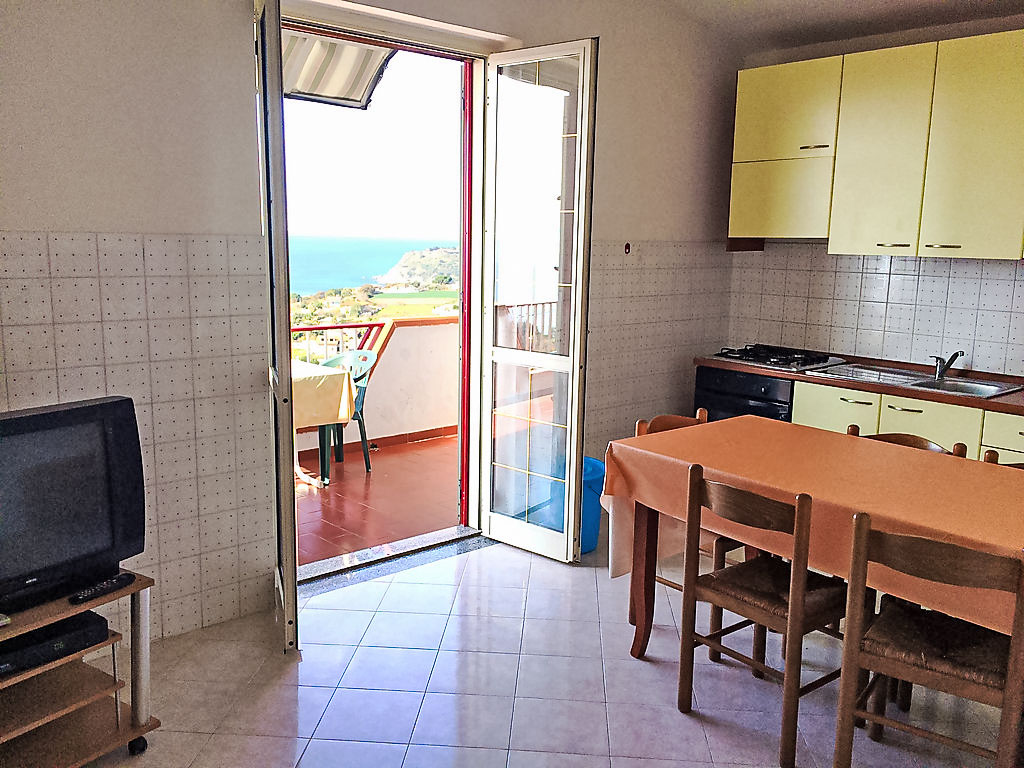3-Zimmer-Wohnung 65 m2, im Erdgeschoss. Einfach und komfortabel eingerichtet: Wohn-/Esszimmer mit Panoramafenster mit Sat-TV. Ausgang zum Balkon. 1 Doppelzimmer. Ausgang zum Balkon. 1 Zimmer mit 2 Betten. Kochnische (4 Kochplatten, Backofen, Tiefkühler). Dusche/Bidet/WC. Grosser Balkon 18 m2. Balkonmöbel. Schöne Panoramasicht auf das Meer und die Ortschaft. Zur Verfügung: Internet (Wireless LAN, gratis). Parkplatz Nr. 1 (eingezäunt). Maximal 1 kleines Haustier/Hund erlaubt.