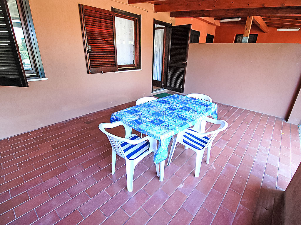Feriensiedlung "Marrone". Ruhige, sonnige Lage, 400 m vom Meer. Parkplatz. Lebensmittelgeschäft, Restaurant, Bar, Sandstrand 400 m. Bitte beachten: Das Foto ist nur ein Hausbeispiel. In diesem Haus sind weitere Ferienwohnungen mietbar. Alle Häuser/Wohnungen sind individuell eingerichtet. Die Wohnungen verfügen über einen möblierten Garten oder Balkon. Die Entfernung zum Meer ist die Strecke zu Fuss und nicht mit dem Auto berechnet. Es besteht die Möglichkeit, einen TV zu mieten (EUR 50/Woche). Die Häuser befinden sich auf einem Terrain, das sich der Küste entlang zieht (rund 1 km2) und das benachbarte Dorf, Villasimius, liegt 15 km entfernt.