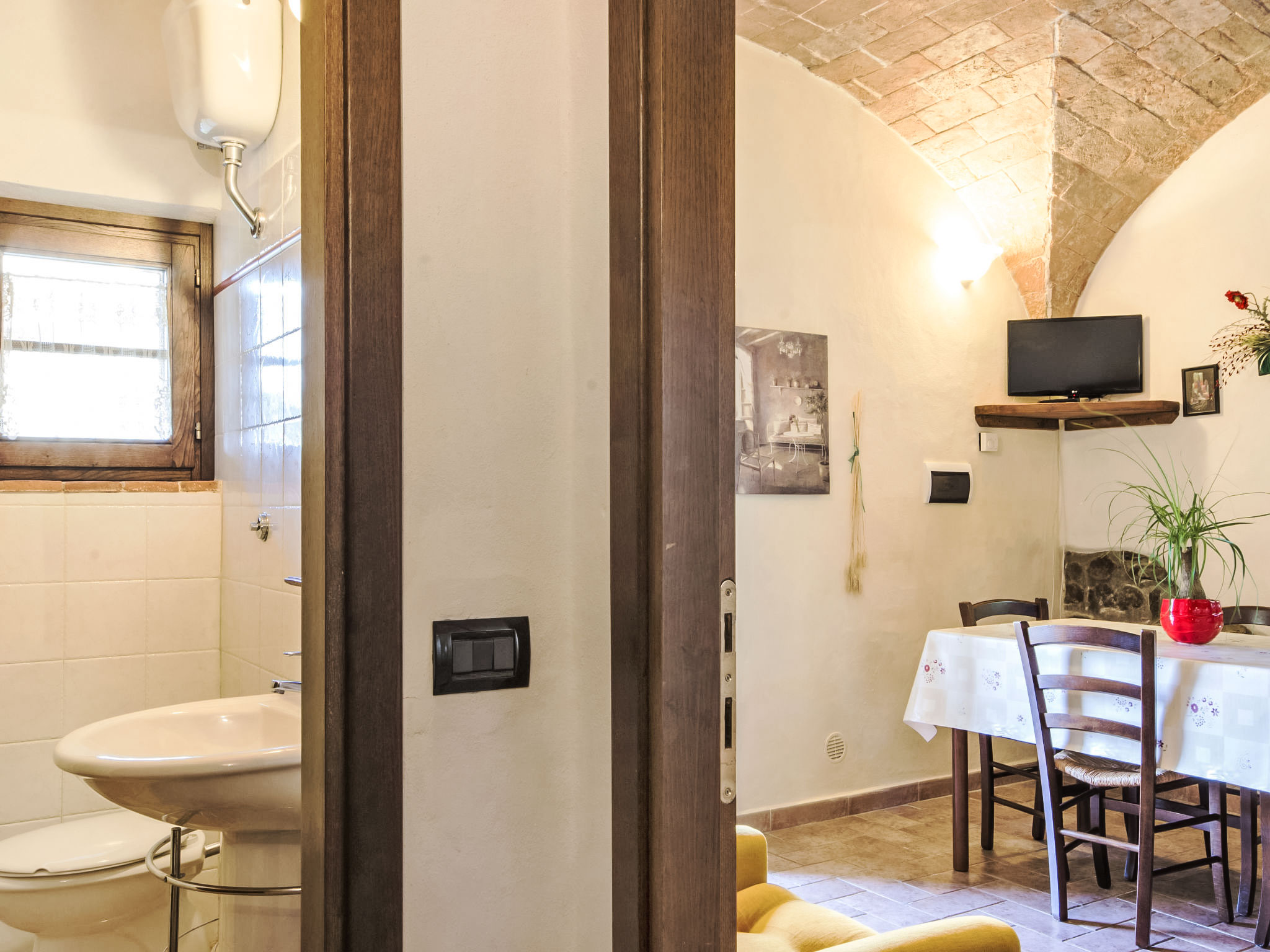 3-Zimmer-Wohnung 45 m2, im Erdgeschoss. Vollständig, rustikal und geschmackvoll eingerichtet: kleines Wohn-/Esszimmer mit Sat-TV. Ausgang zur Loggia. 1 Doppelzimmer. 1 Zimmer mit 1 x 2 Etagenbetten. Kochnische (elektrische Kaffeemaschine, Kapseln für die Kaffeemaschine (Nespresso)) mit Esstisch. Dusche/Bidet/WC. Gartensitzplatz. Terrassenmöbel. Zur Verfügung: Haartrockner. Internet (Wireless LAN, gratis). Parkplatz beim Haus.