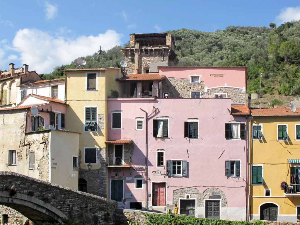 Das Dorfhaus CASA ANGELA steht inmitten einer Häuserzeile im alten Ortskern von Dolcedo. Nächste Einkaufsmöglichkeit ca. 50 m. Supermarkt in Imperia, 7 km. Zu den Sand- und Kiesstränden von Imperia 8 bzw. 7 km. Zufahrt zum Haus bis auf ca. 10 m möglich (öffentlicher Parkplatz). Weiterer öffentlicher Parkplatz ca. 200 m. Schöne, teilüberdachte Dachterrasse auf zwei Ebenen mit Mobiliar, Sonnenschirm und freiem Blick auf den Ort. Die Besitzerin verkauft Olivenöl aus eigener Produktion. Verleih von 2 Fahrrädern (je nach Verfügbarkeit, € 10 pro Tag/Rad). Liebevoll nostalgische Einrichtung, teils mit ligurischen Antiquitäten. Bei der sorgfältigen Renovierung des Dorfhauses blieben Steinfußböden mit antiken genuesischen Mustern, helle Cotto-Böden und hohe Gewölbedecken erhalten. CD. Waschmaschine. Bügeleisen/-brett. Gas-Zentralheizung. Hinweis: Rauchen ist im Haus nicht gestattet.