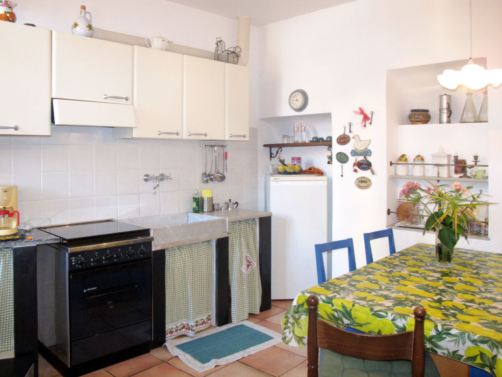 4-Zimmer-Haus, 3 Etagen, ca. 110 m². 1. Etage: Wohnraum mit 2 Sesseln. Schlafzimmer mit franz. Bett (1,60 m breit). Dusche/WC. Über 4 Stufen in Schlafzimmer mit franz. Bett (1,30 m breit). 2. Etage: Küche (4 Flammen, Backofen, Kühlschrank, Kaffeemaschine, Wasserkocher, Toaster) mit Essplatz und Terrassenausgang. 3. Etage: Schlafzimmer mit franz. Bett. Hinweis: Bei Buchung zum Preis für 2 Personen bleibt 1 Schlafzimmer verschlossen. Flexibilität bei der Bettenaufteilung: Es stehen mehr Schlafmöglichkeiten zur Verfügung als die maximal zugelassene Personenzahl, diese darf dennoch nicht überschritten werden. CITR: 008030-AGR-0001