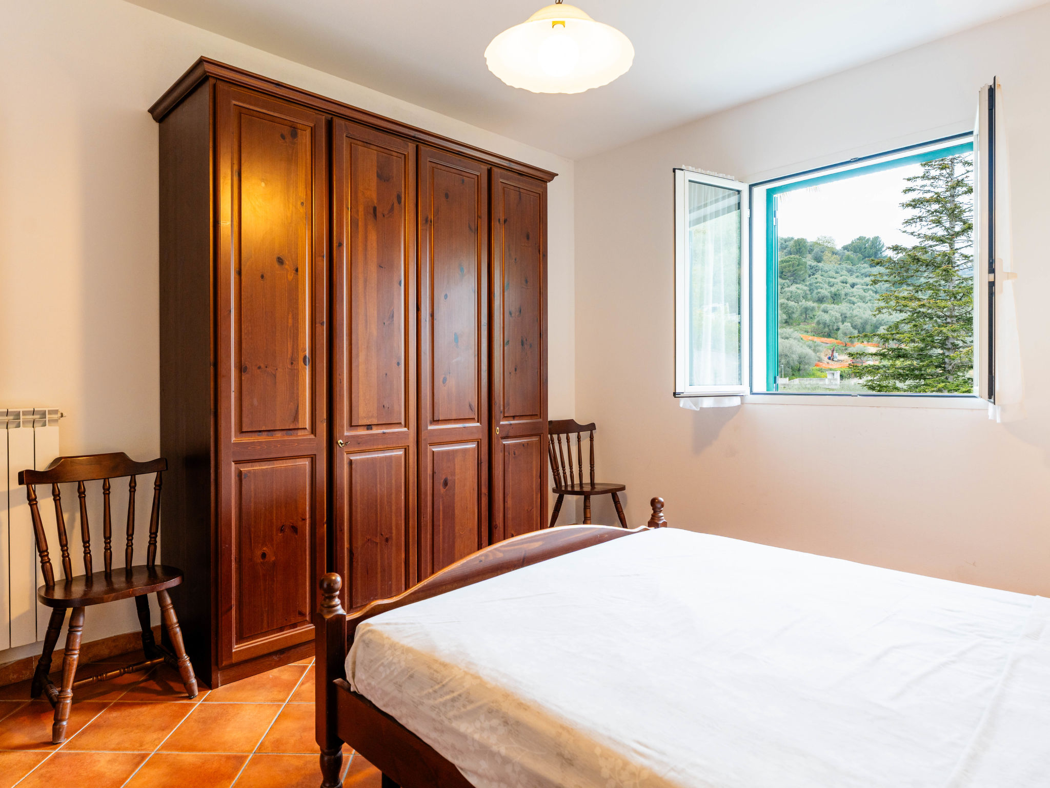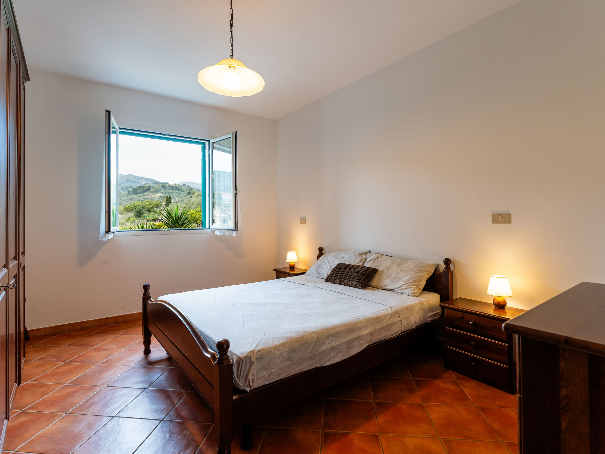 Agriturismo "La Colombera", umgeben von Bäumen und Feldern. 7 Wohnungen in der Residenz. Im Weiler Varcavello, 1 km vom Zentrum von Diano Castello, 2 km vom Zentrum von Diano Marina, 7 km vom Zentrum von Imperia, sonnige, erhöhte Lage am Hang, 2.5 km vom Meer, an einer Strasse. Zur Mitbenutzung: naturbelassenes Grundstück 1'000 m2 mit Pflanzen, Hof, Schwimmbad eingezäunt (12 x 5 m, 110 cm tief, saisonale Verfügbarkeit: 01.Apr.-31.Okt.). Aussendusche, Terrasse, Gartenmöbel, Grill, Poolpflege durch den Besitzer/Gärtner. Im Hause: Fahrradverleih. Zur Verfügung: Fahrräder (12) (extra). Parkplatz (überdacht, beschränkte Anzahl) auf dem Grundstück. Einkaufsgeschäft 900 m, Supermarkt 3 km, Sandstrand 2.5 km, Hallenbad 10 km. Jacht-Hafen 2.5 km. Jugendgruppen nur auf Anfrage. Ab Hof Verkauf von bäuerlichen Produkten. Bitte beachten: Der Besitzer wohnt auf dem gleichen Grundstück. Eigentümer hat einen Hund. Tiere in der Umgebung. In diesem Haus sind weitere Ferienwohnungen mietbar.