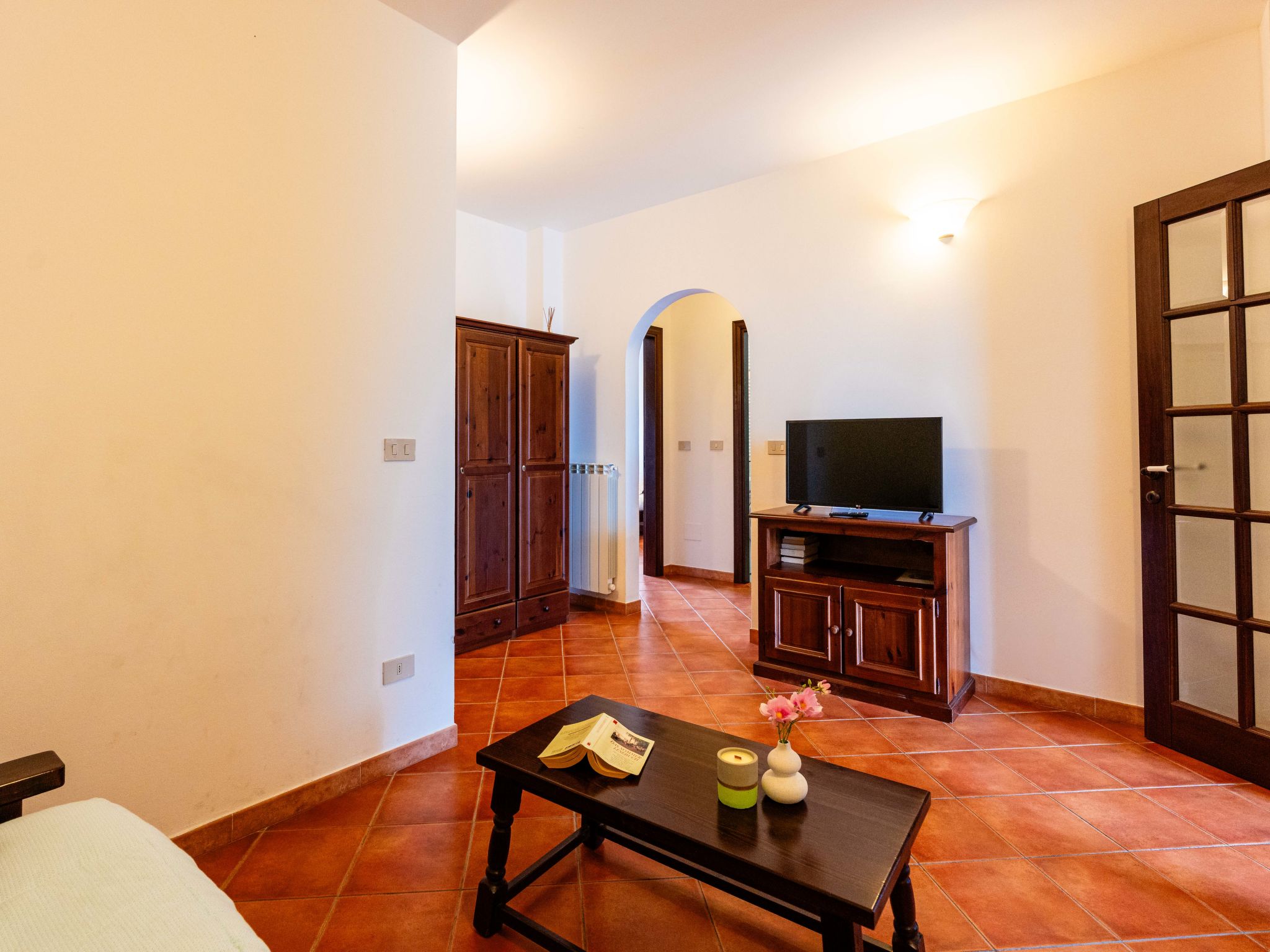 "La Colombera B", 2-Zimmer-Wohnung 60 m2, im Erdgeschoss. Rustikal eingerichtet: Wohn-/Schlafzimmer mit 1 Doppeldiwanbett, Esstisch und Sat-TV. 1 Zimmer mit 1 franz. Bett (160 cm). Wohnküche (Backofen, 4 Flammen, Toaster, Wasserkocher, Tiefkühler, elektrische Kaffeemaschine) mit kleinem Esstisch. Ausgang zum Balkon. Dusche/WC. G-Heizung. Gartensitzplatz. Zur Verfügung: Waschmaschine, Kinderhochstuhl, Babybett. Internet (Wireless LAN, gratis). Bitte beachten: 1 Haustier/Hund erlaubt. Eigener Eingang. CITR: 008026-AGR-0002