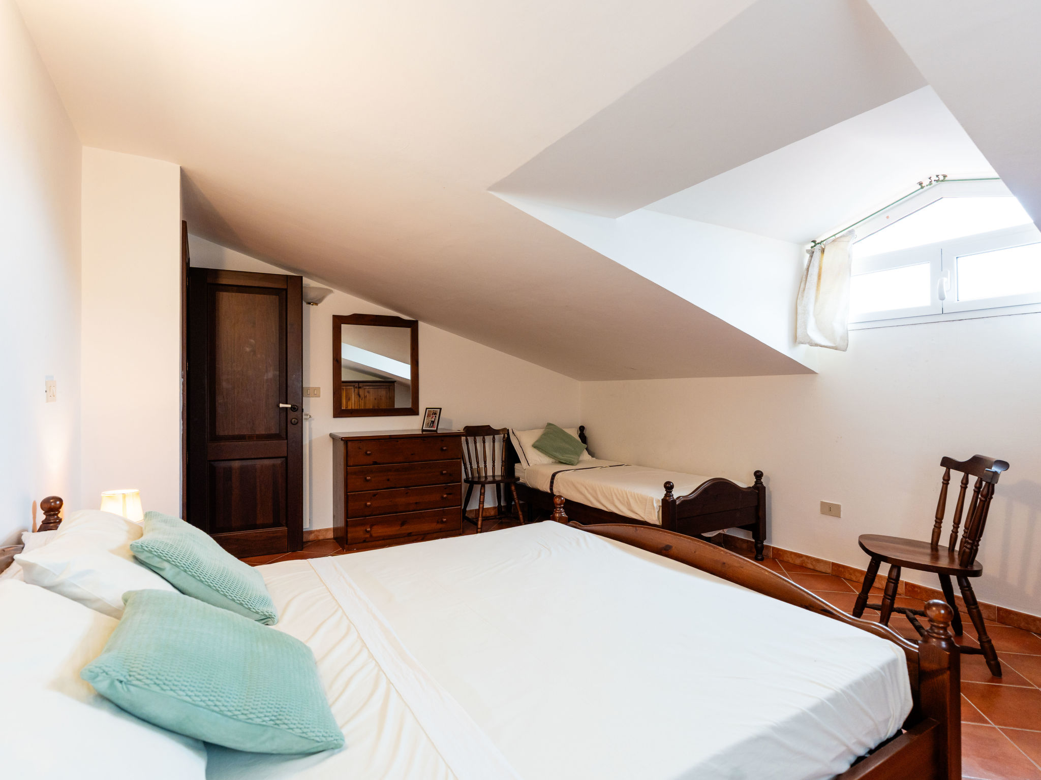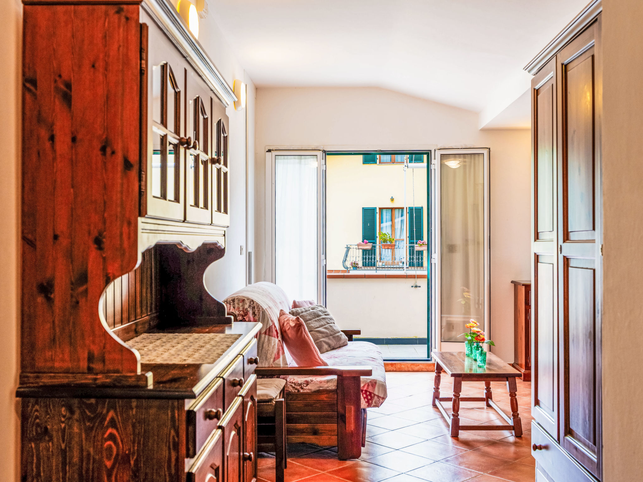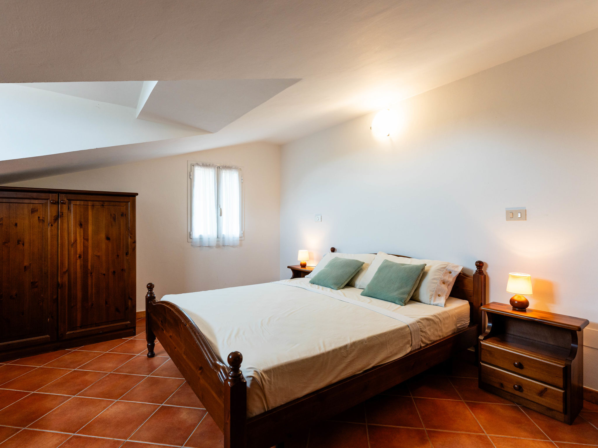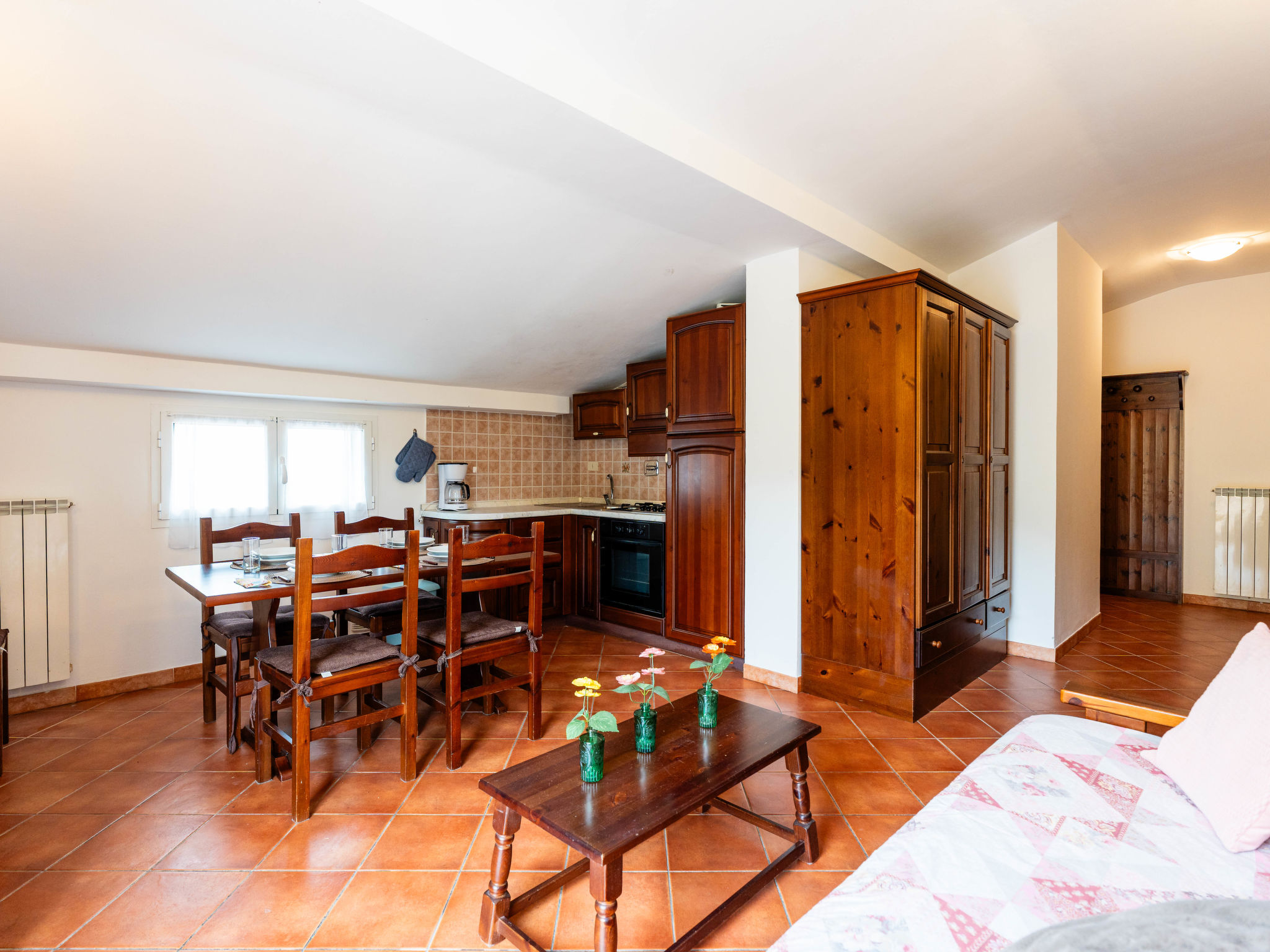 "La Colombera F", 2-Zimmer-Wohnung 50 m2 im 2. Stock. Rustikal eingerichtet: abgeschrägtes Wohn-/Schlafzimmer mit 1 Doppeldiwanbett, Esstisch und Sat-TV. Ausgang zum Balkon. 1 Zimmer mit 1 Bett (80 cm), 1 franz. Bett (160 cm). Offene Küche (Backofen, 4 Flammen, Toaster, Wasserkocher, Tiefkühler, elektrische Kaffeemaschine). Dusche/WC. G-Heizung. Balkon. Balkonmöbel. Zur Verfügung: Waschmaschine, Babybett. Internet (Wireless LAN, gratis). 1 Haustier/Hund erlaubt. CITR: 008026-AGR-0002